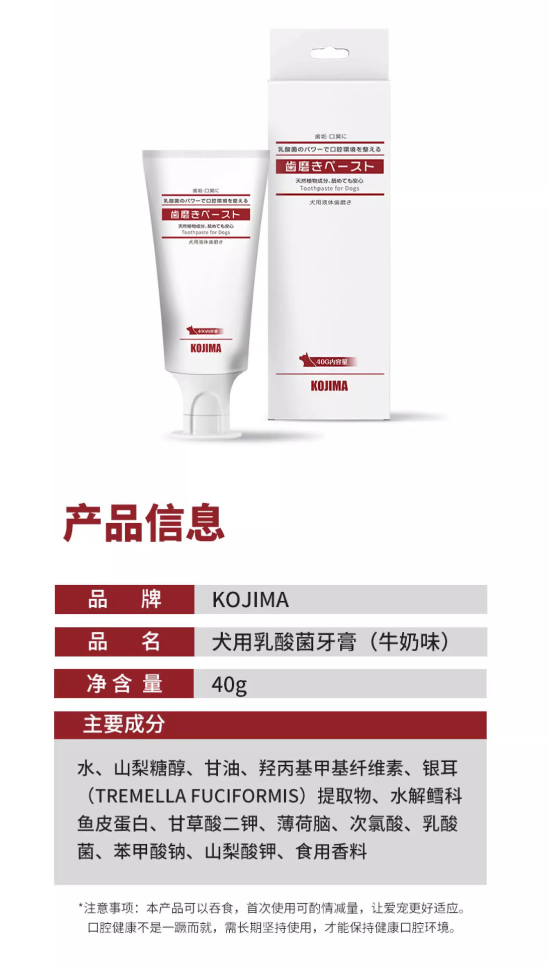 【品名】:KOJIMA宠物360°牙刷/猫用乳酸菌牙膏40g/ 狗用乳酸菌牙膏40g/犬用牙刷/宠物洁牙手指湿巾36只/宠物洁牙笔+美牙笔套装/ 宠物牙结石刮刀