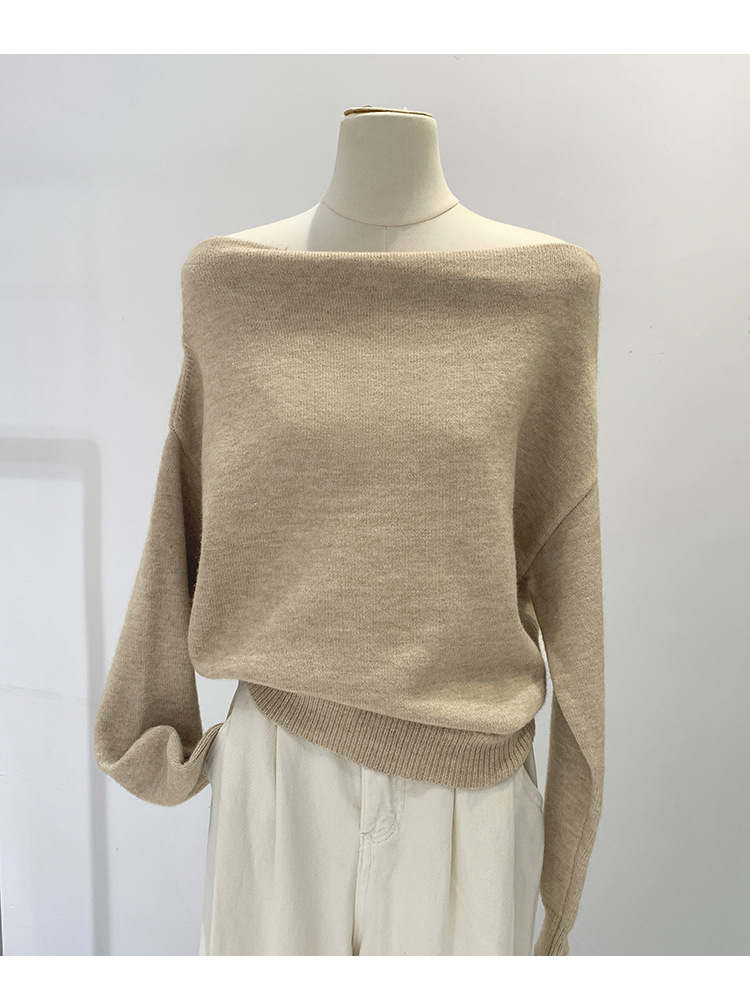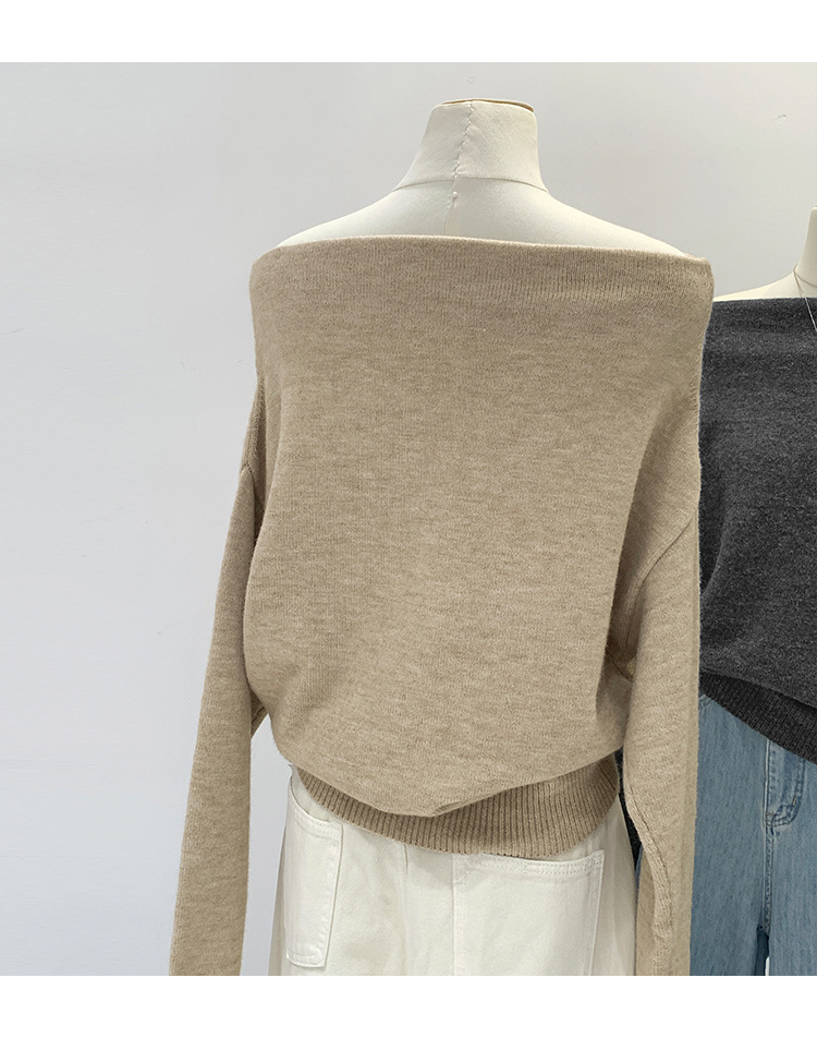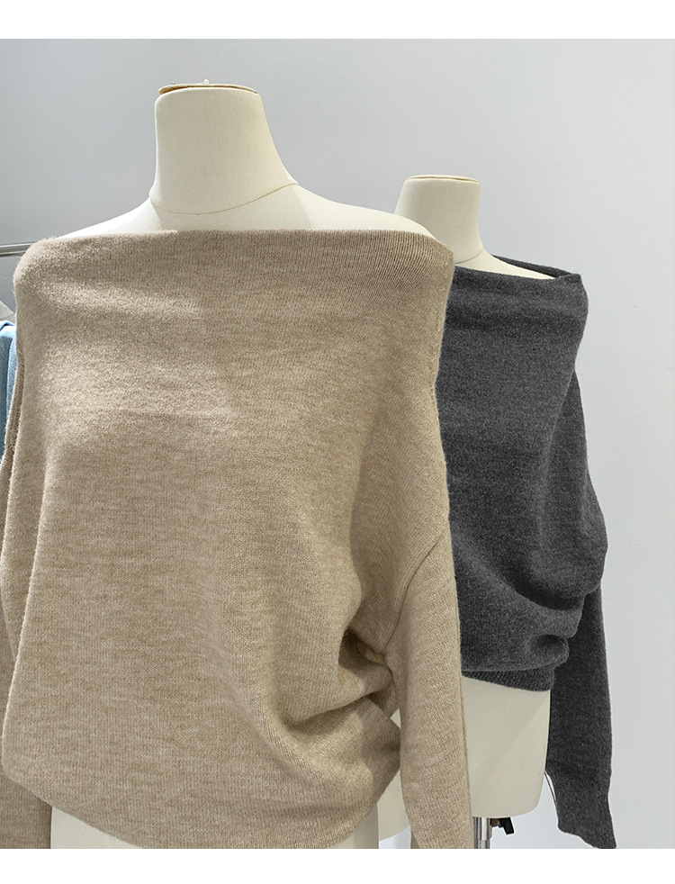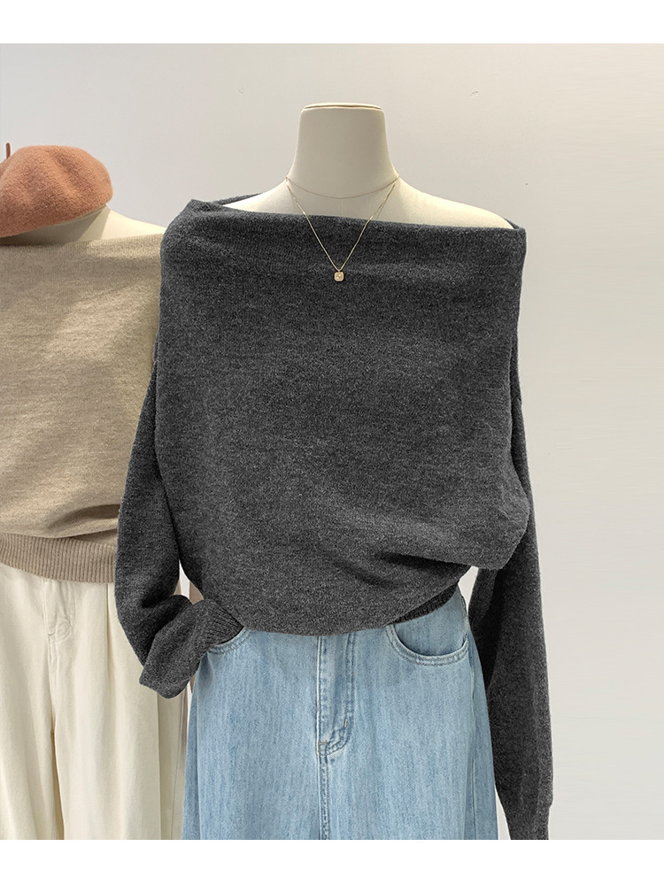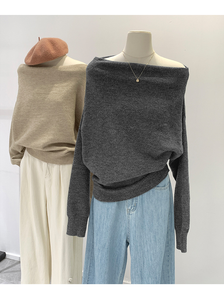 セーターデザインニッチワンラインカラーオフショルダールーズセーターレディース初秋新作レイジーフレグランストップ