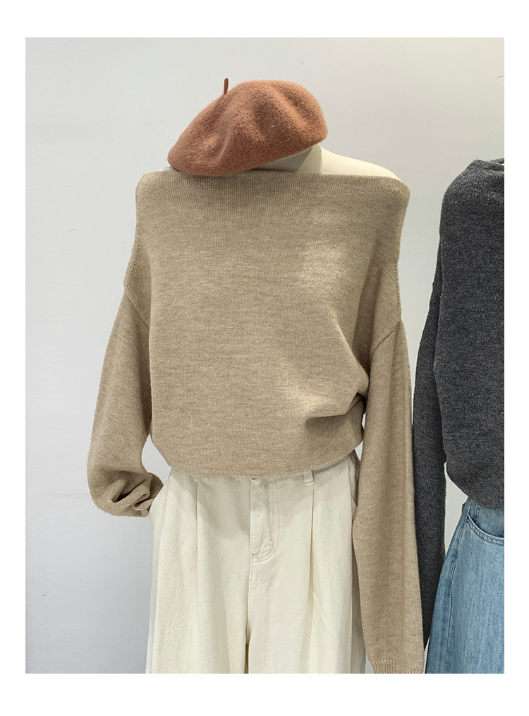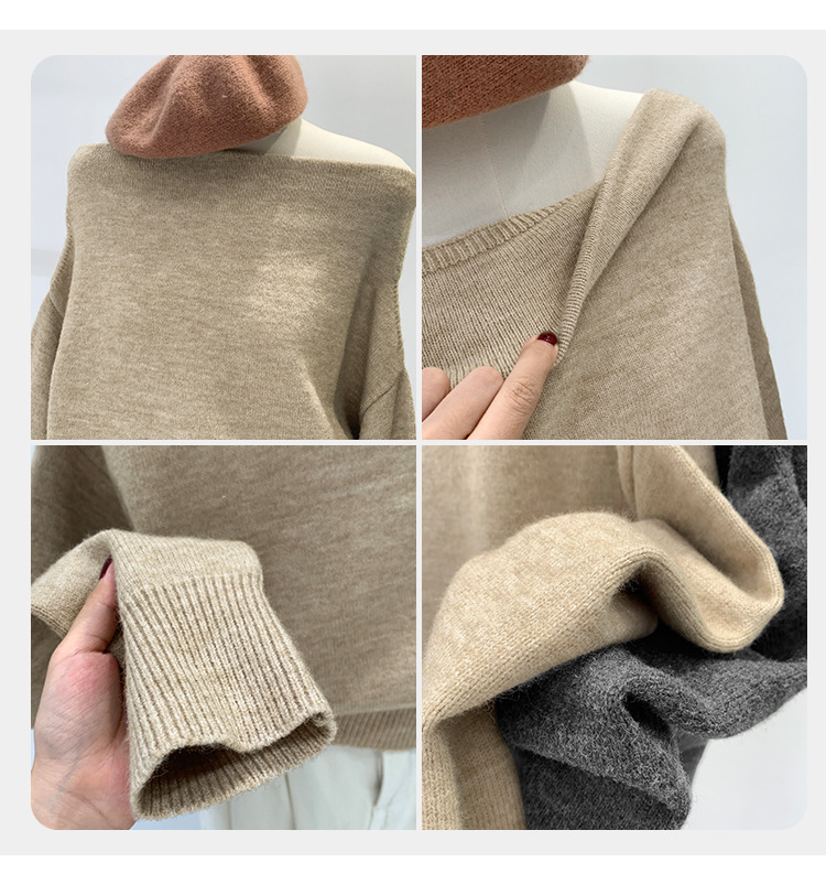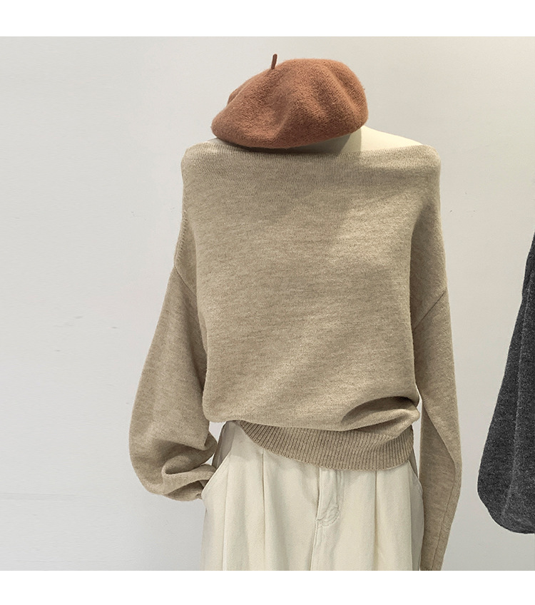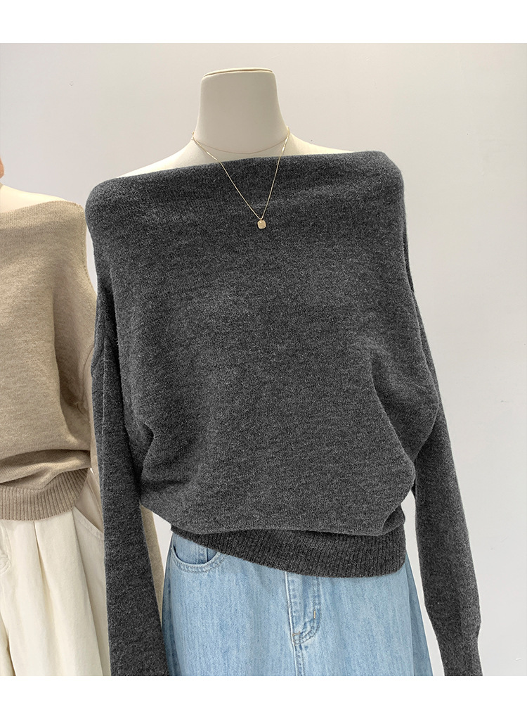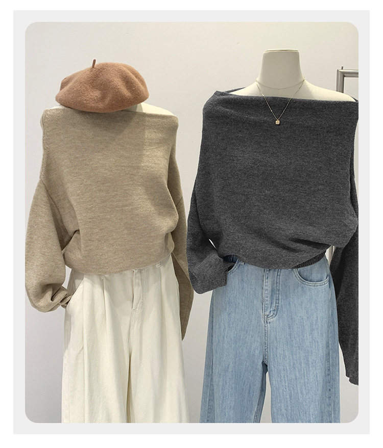 セーターデザインニッチワンラインカラーオフショルダールーズセーターレディース初秋新作レイジーフレグランストップ