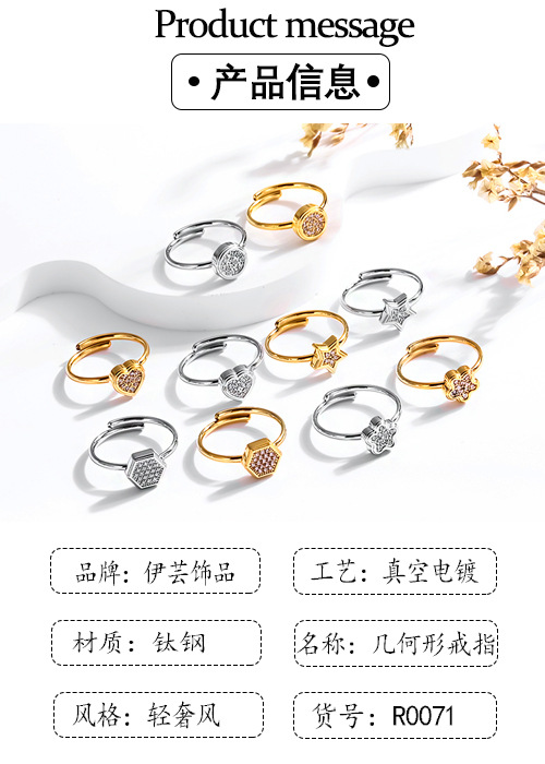 越境貿易新商品 ステンレスリング 丸型 六角形リング レディース ライトラグジュアリー 幾何学リング シンプル 高級