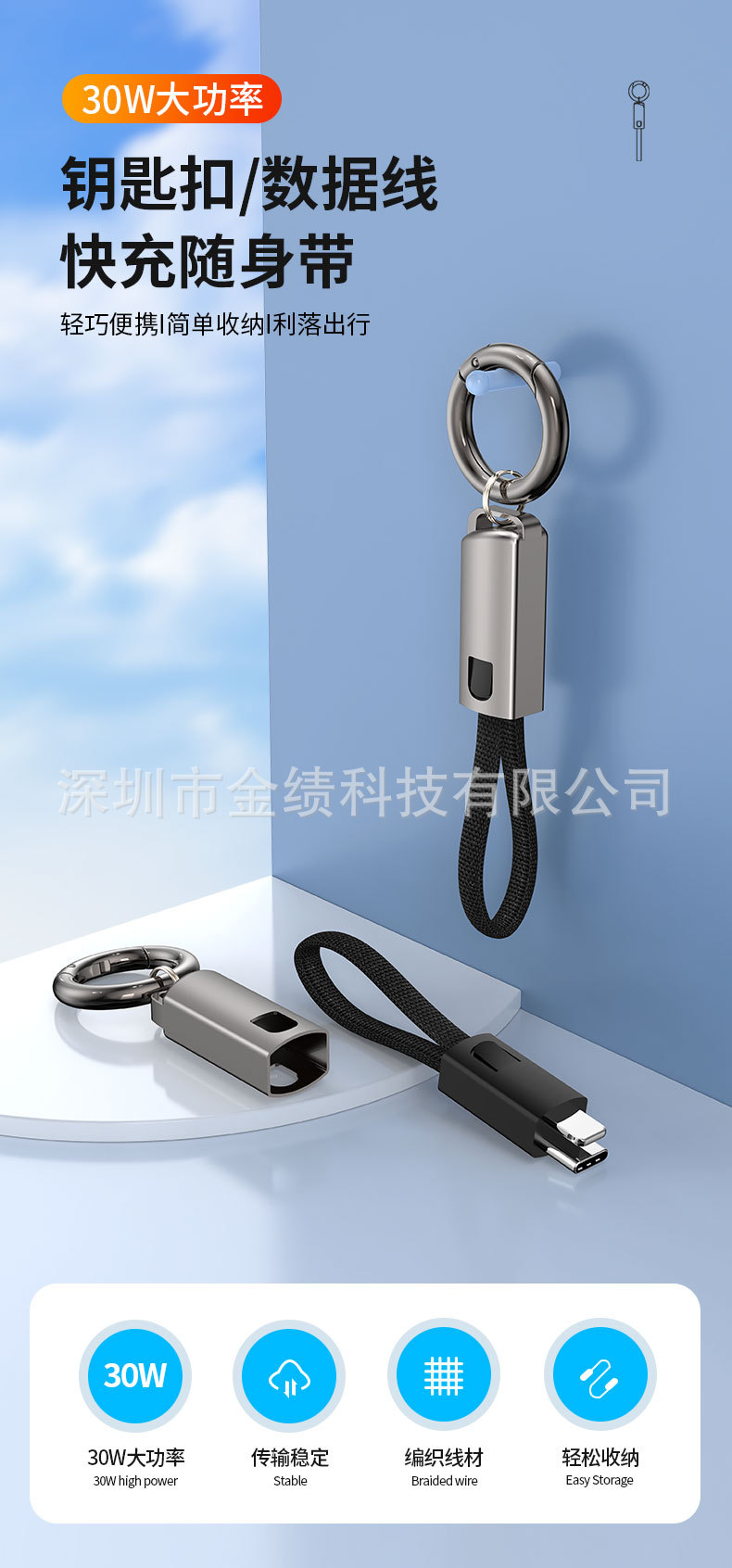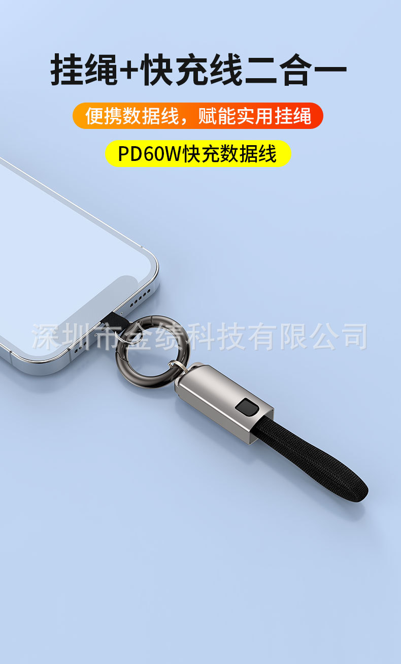 キーホルダーデータ線亜鉛合金PD60W急速充電はアップルiphone華為携帯ストラップ急速充電線を適用する