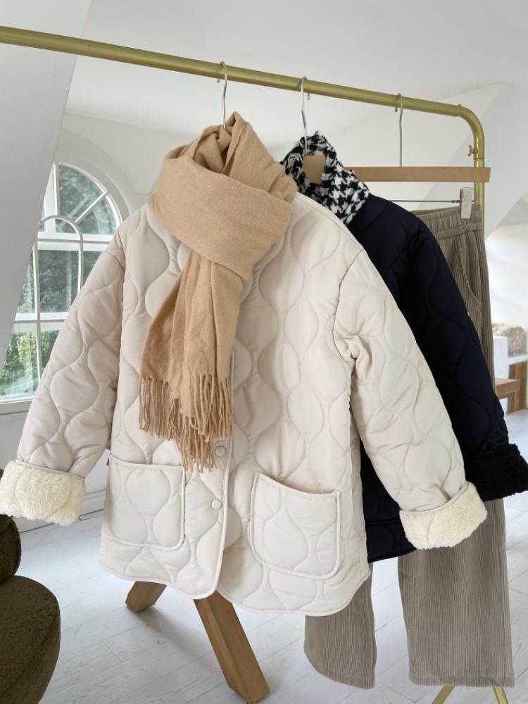 襟のないベルベットは薄っぺらなファッションをつなぎ合わせている冬の韓国版のゆるい小香風菱格保温綿服綿服