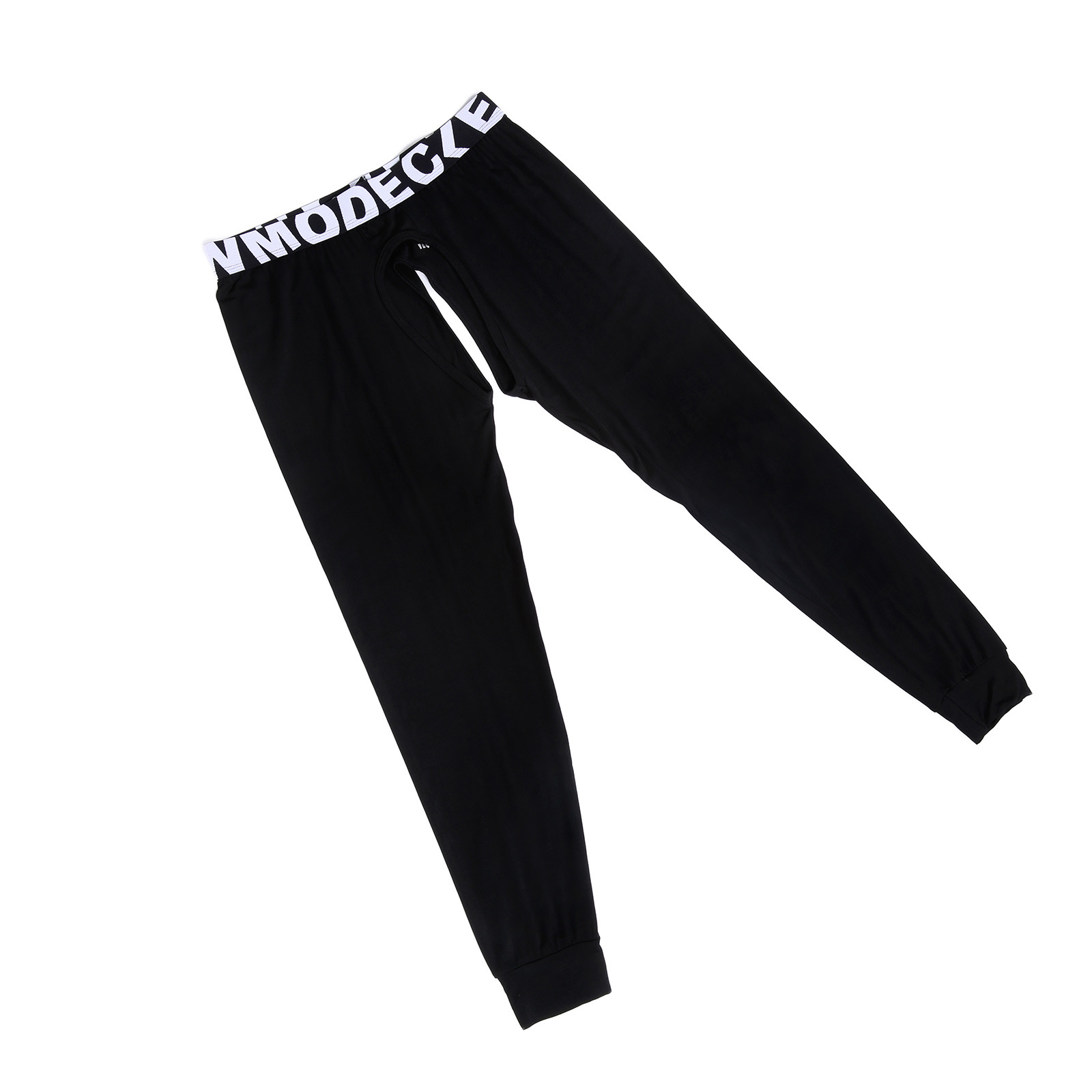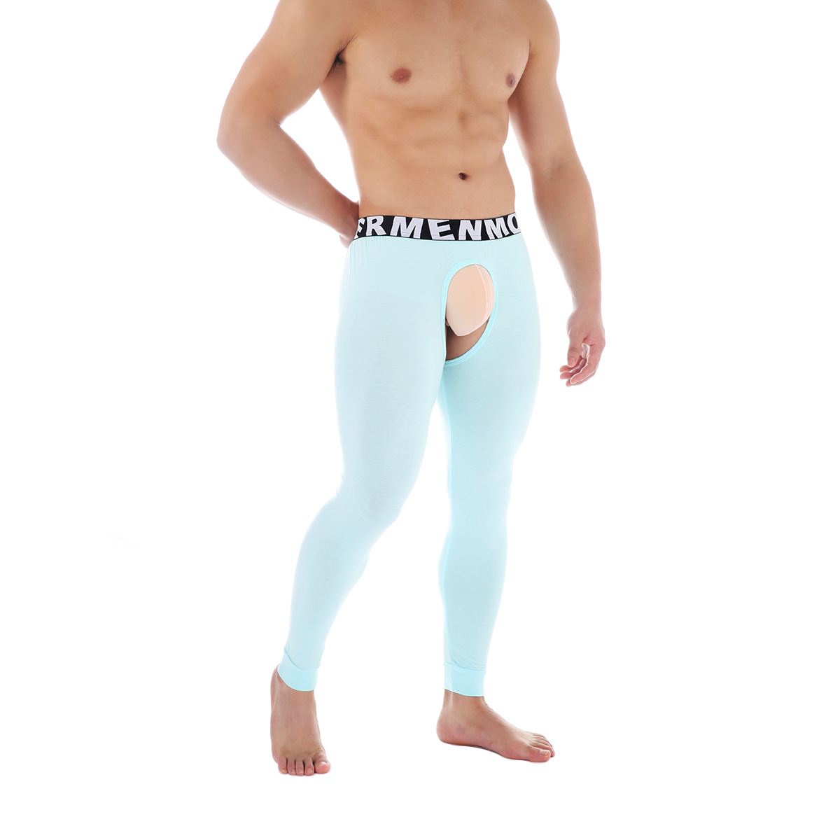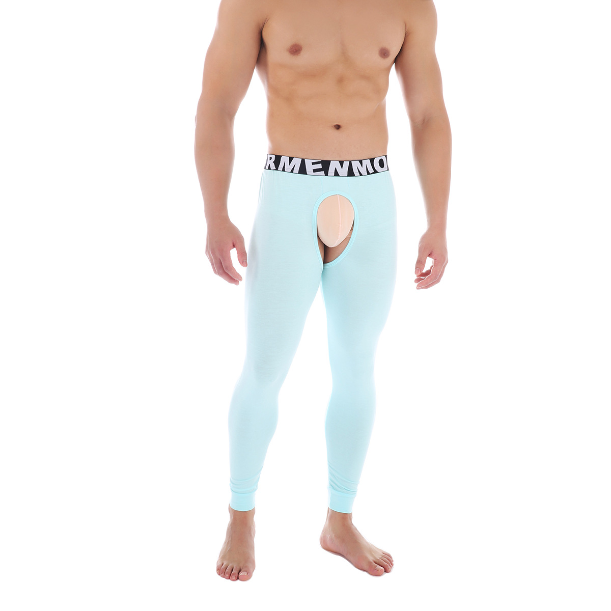 男士莫代尔修身保暖内衣性感开档透气免脱打底秋裤情趣睡裤