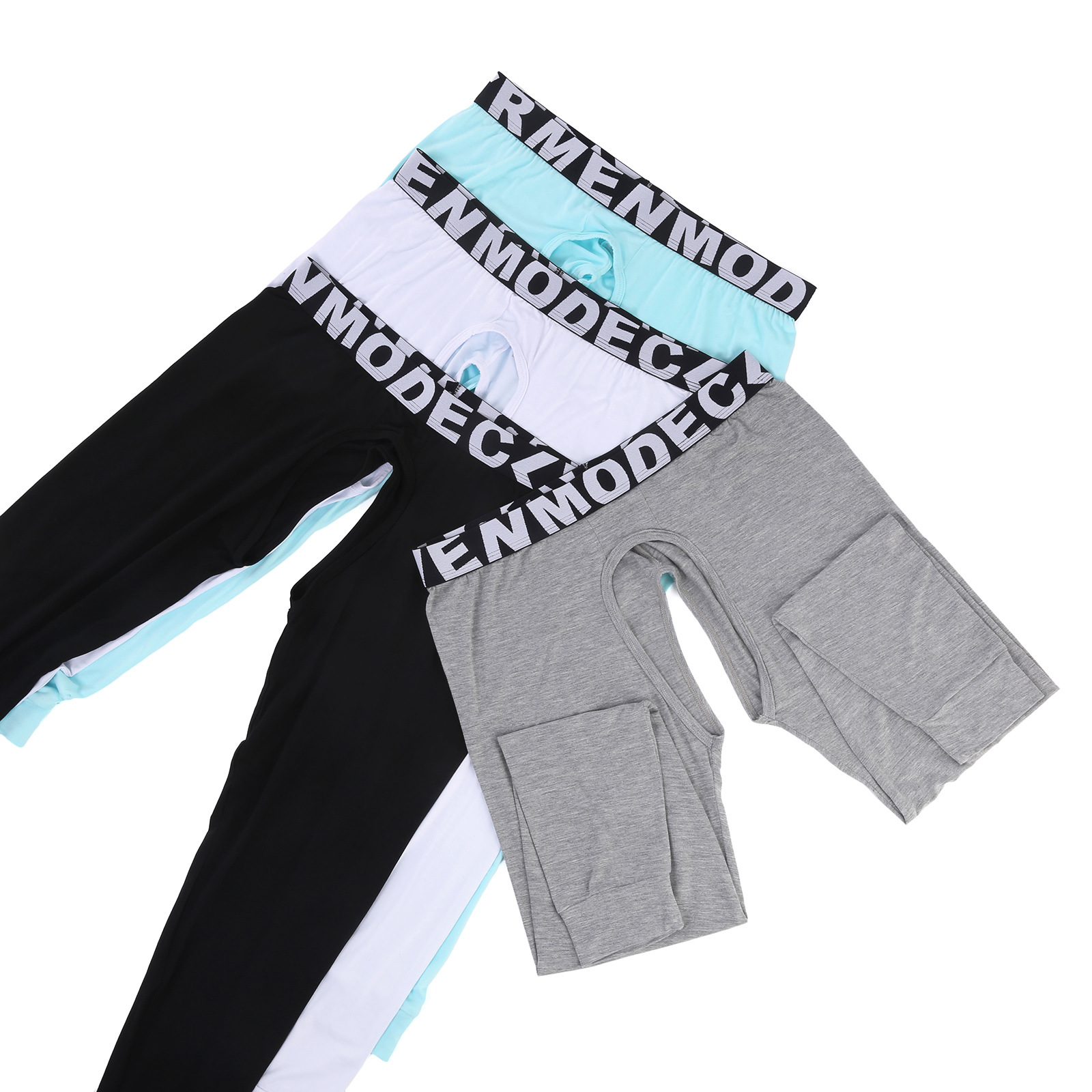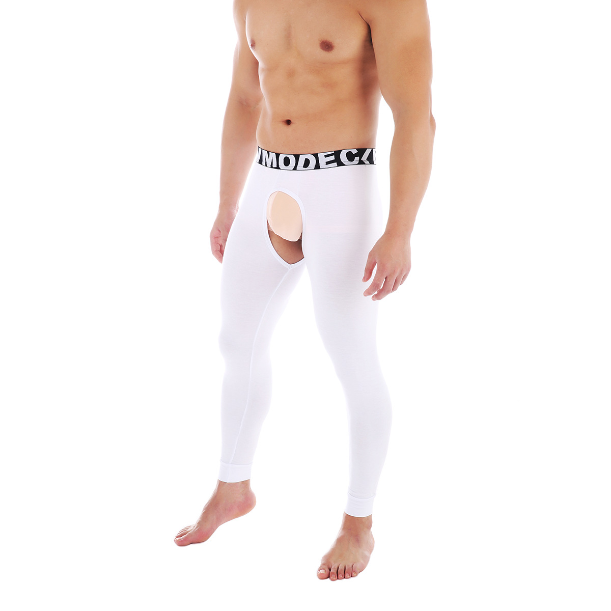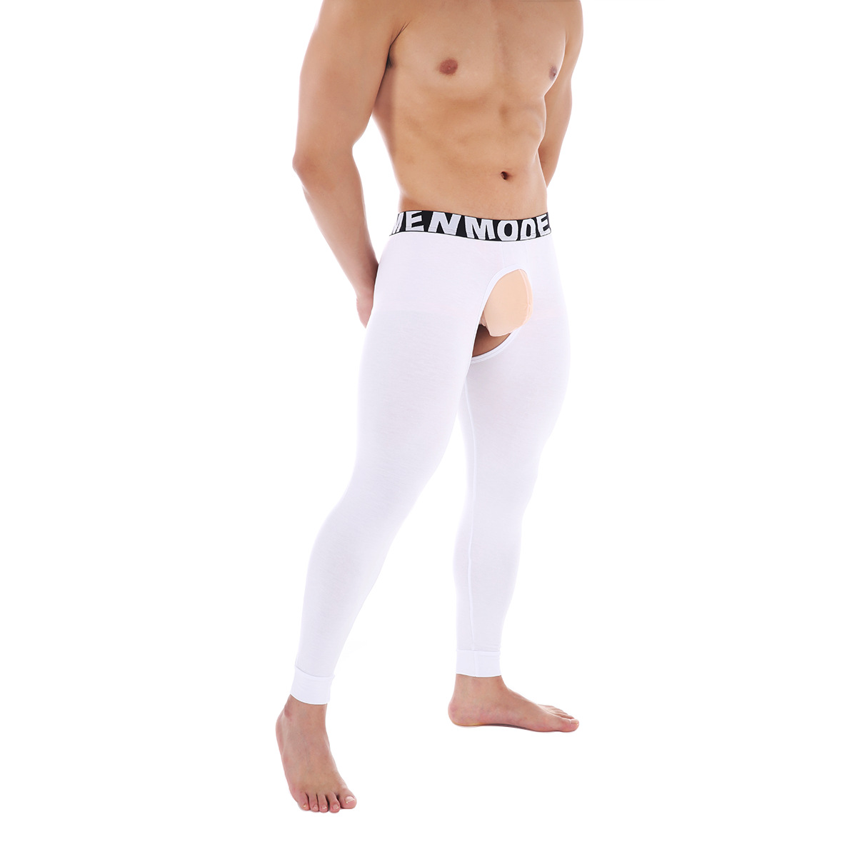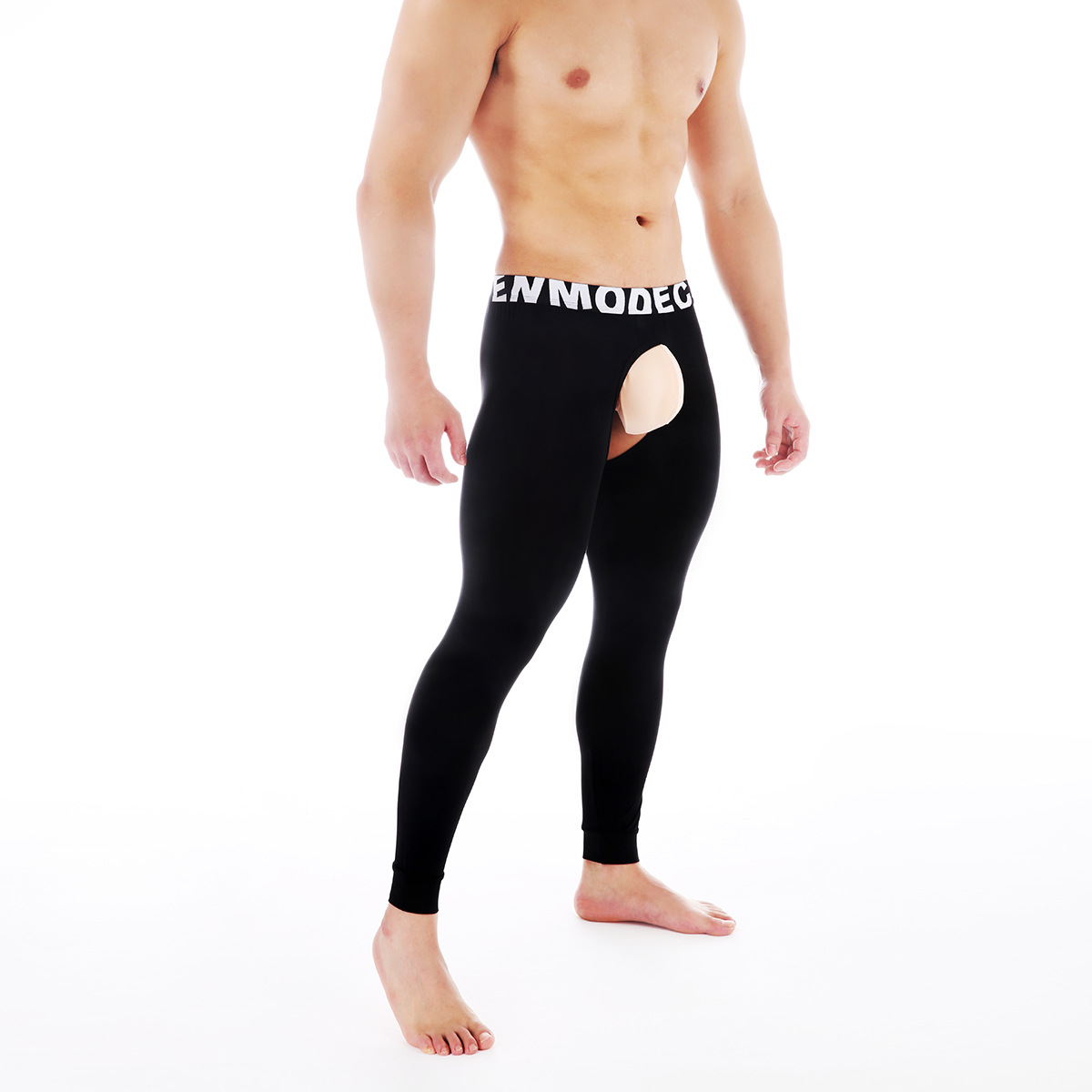 男士莫代尔修身保暖内衣性感开档透气免脱打底秋裤情趣睡裤