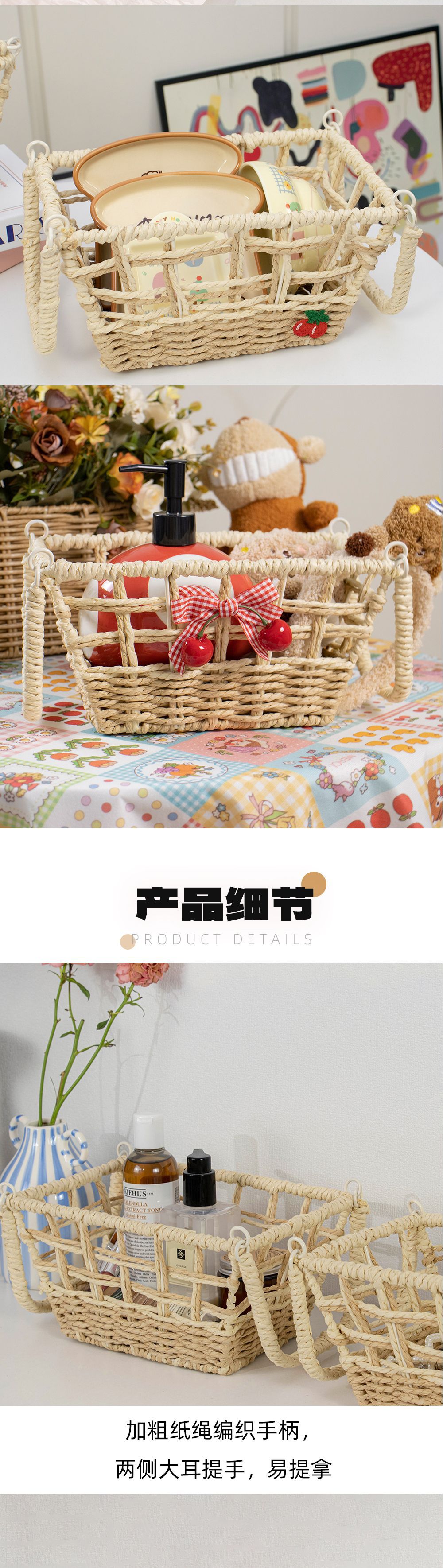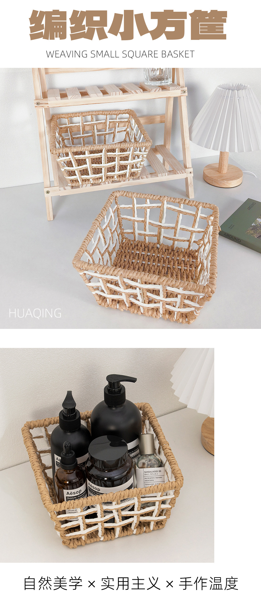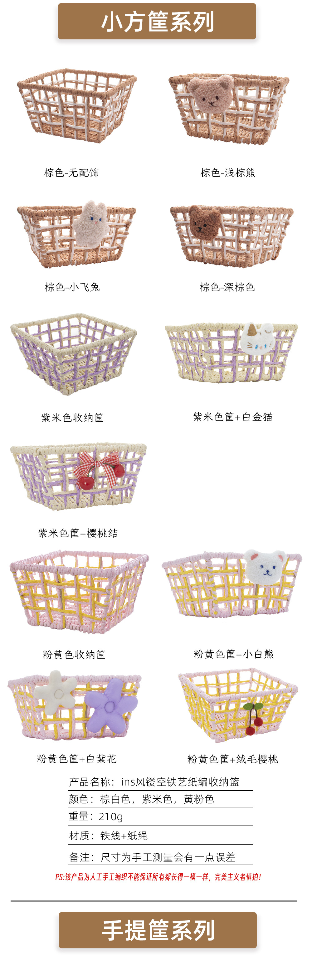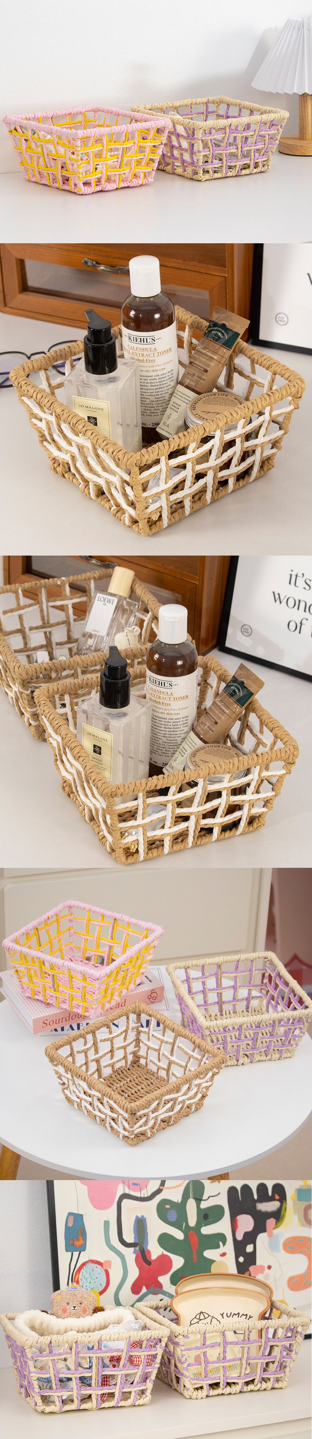 Ins風手作り紙ひも編みかご多機能間食雑物整理かご透かし化粧品デスクトップ収納ケース