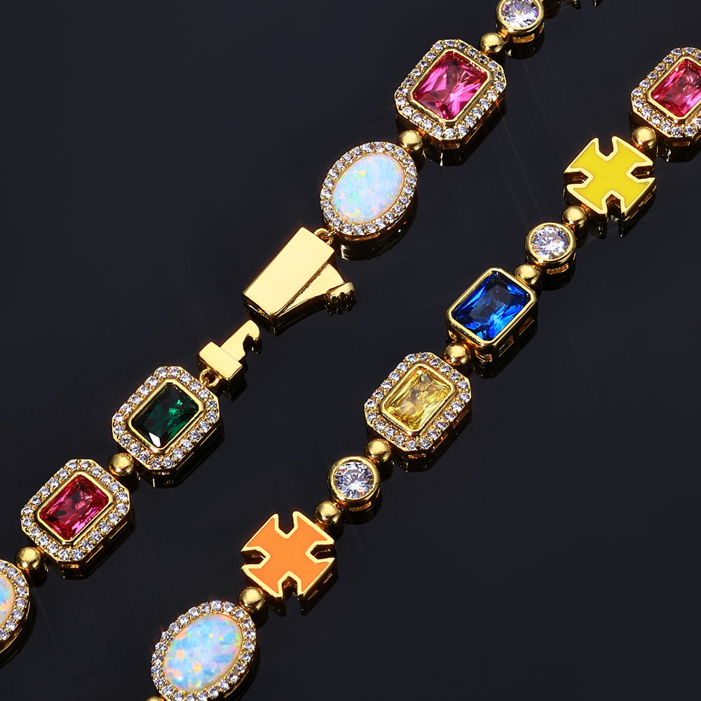 ヒップホップクロスボーダーカラフルな宝石レディースジュエリーネックレスチェーンジュエリーハイエンドジルコンメンズネックレス卸売
