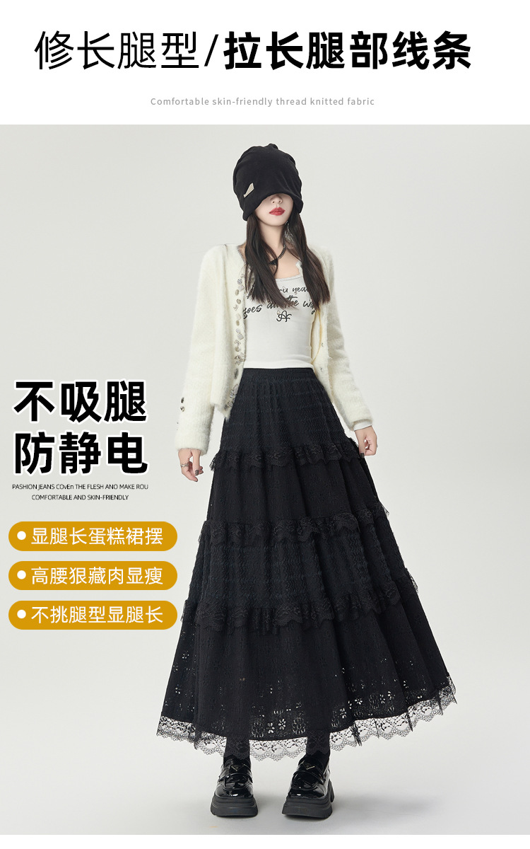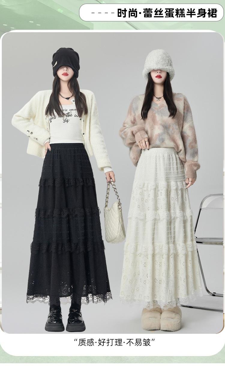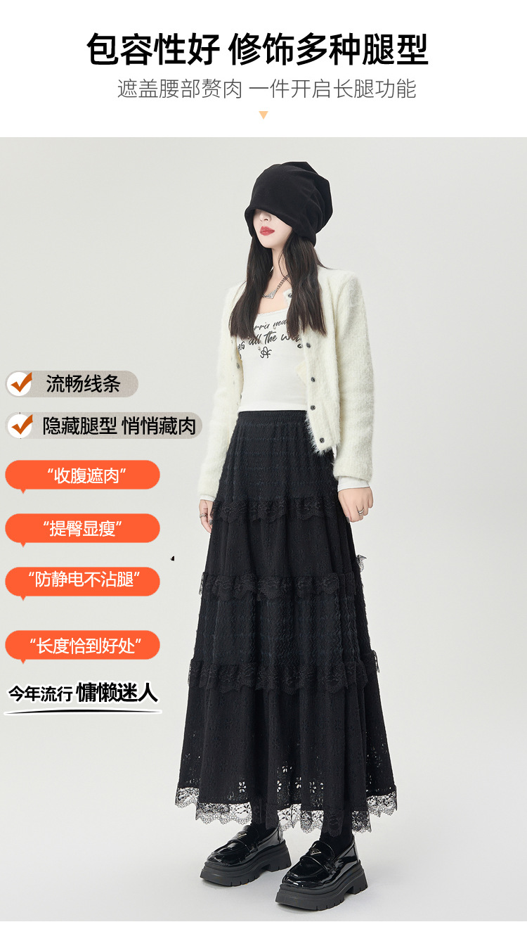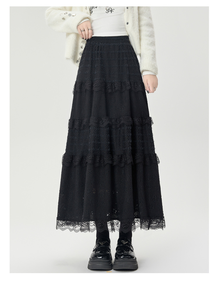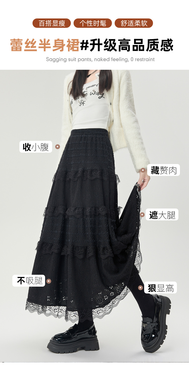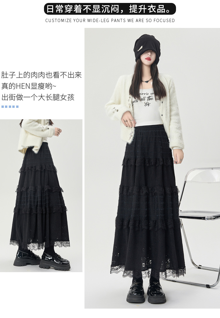甘いバレエ風半身スカート女装秋冬ケーキスカート仙女スカートレース半スカート小柄a字スカートロングスカート