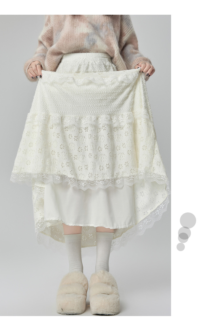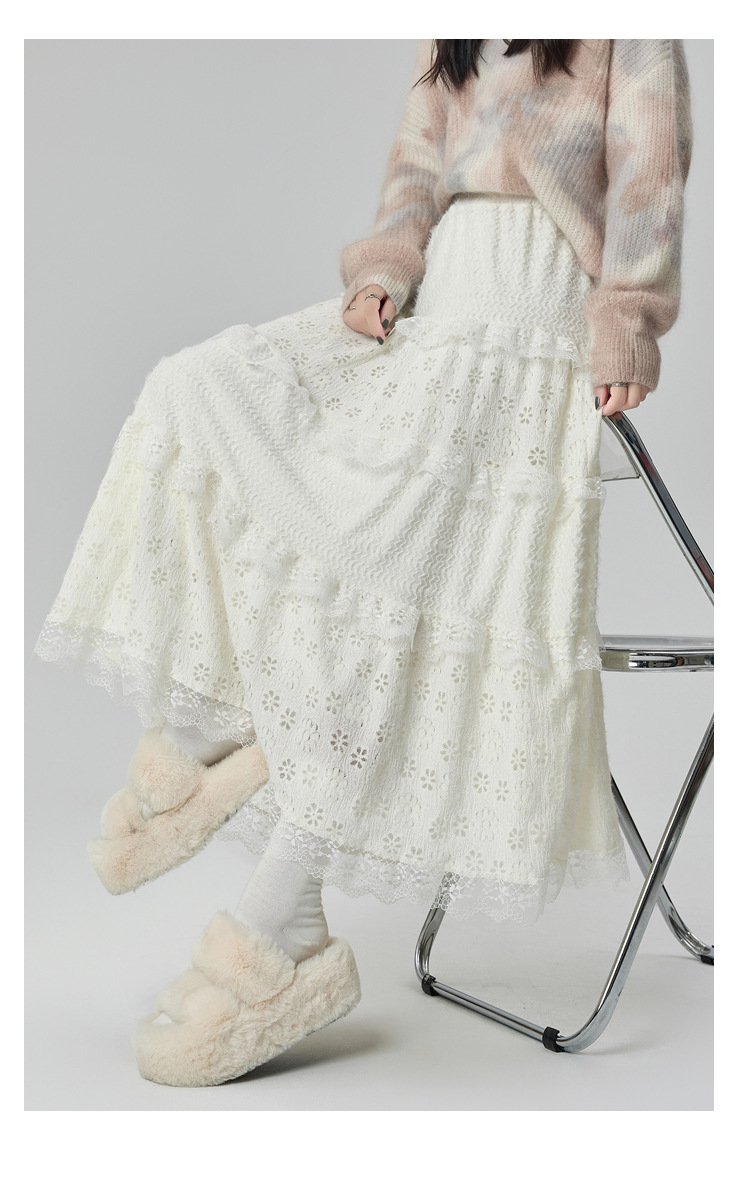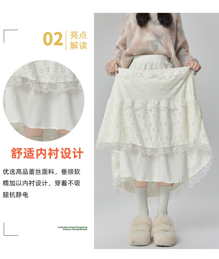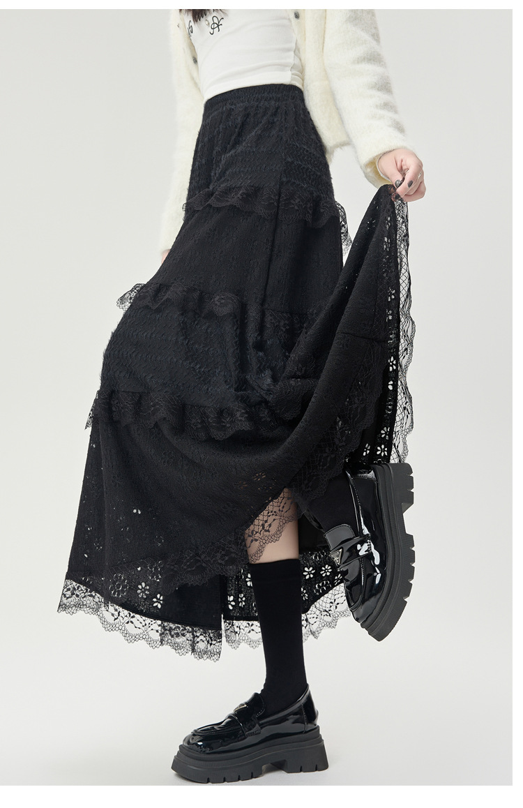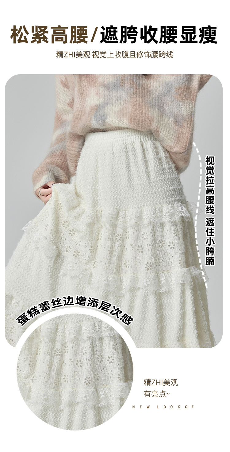 甘いバレエ風半身スカート女装秋冬ケーキスカート仙女スカートレース半スカート小柄a字スカートロングスカート