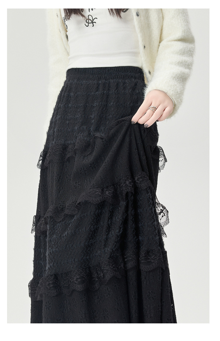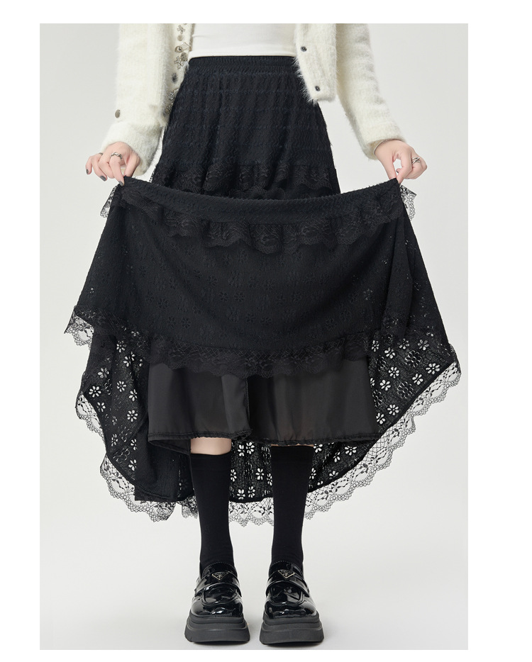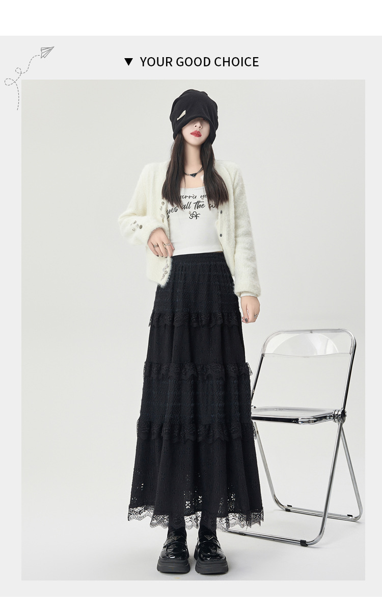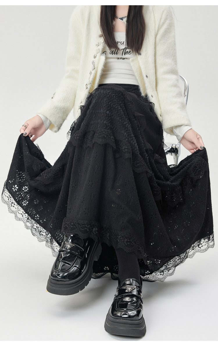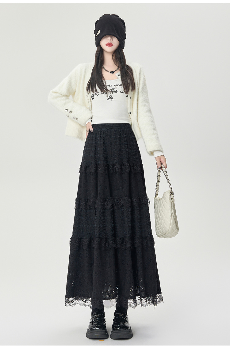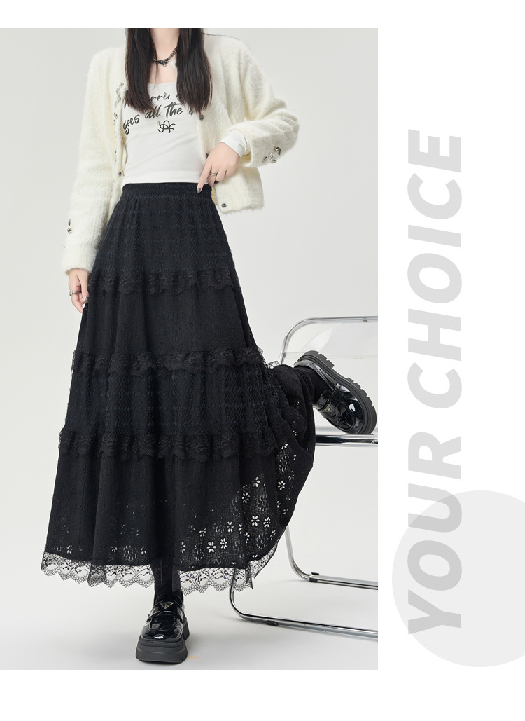 甘いバレエ風半身スカート女装秋冬ケーキスカート仙女スカートレース半スカート小柄a字スカートロングスカート