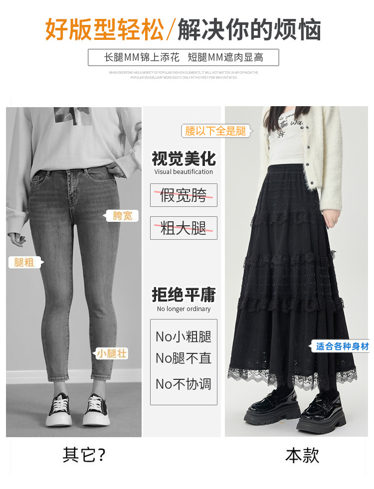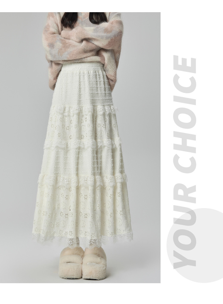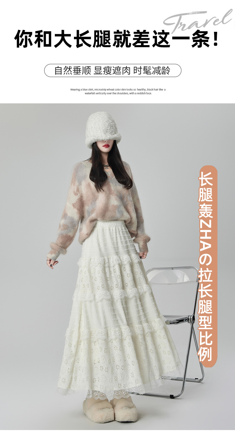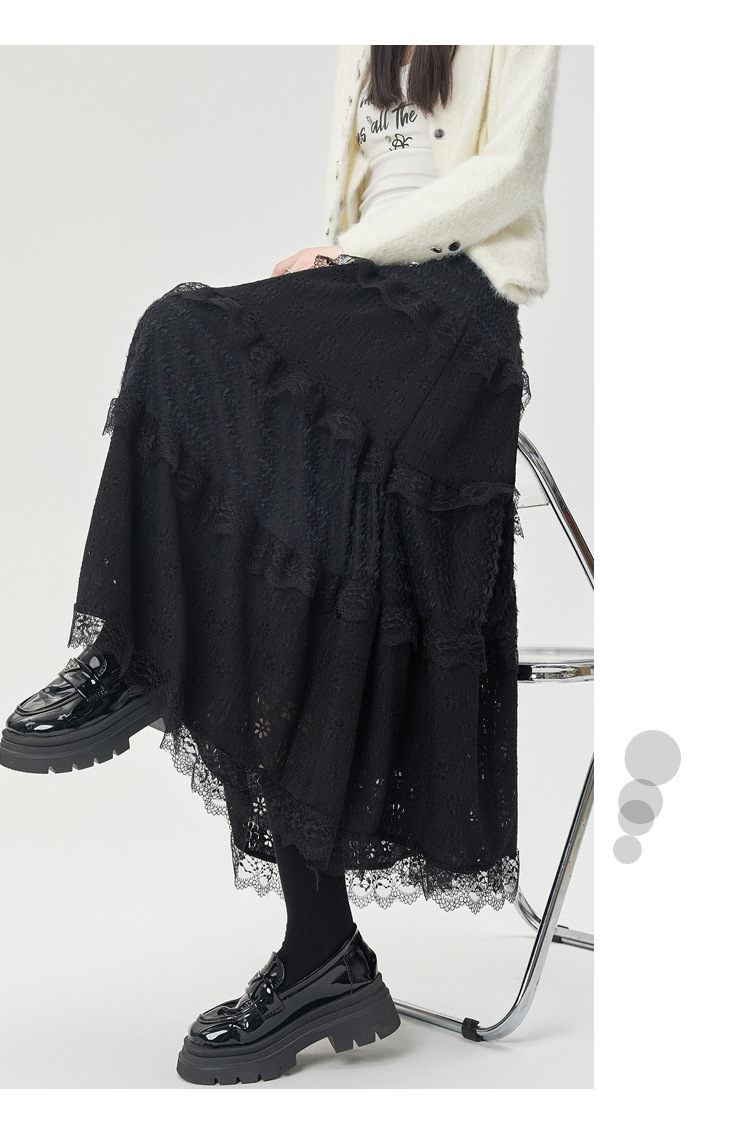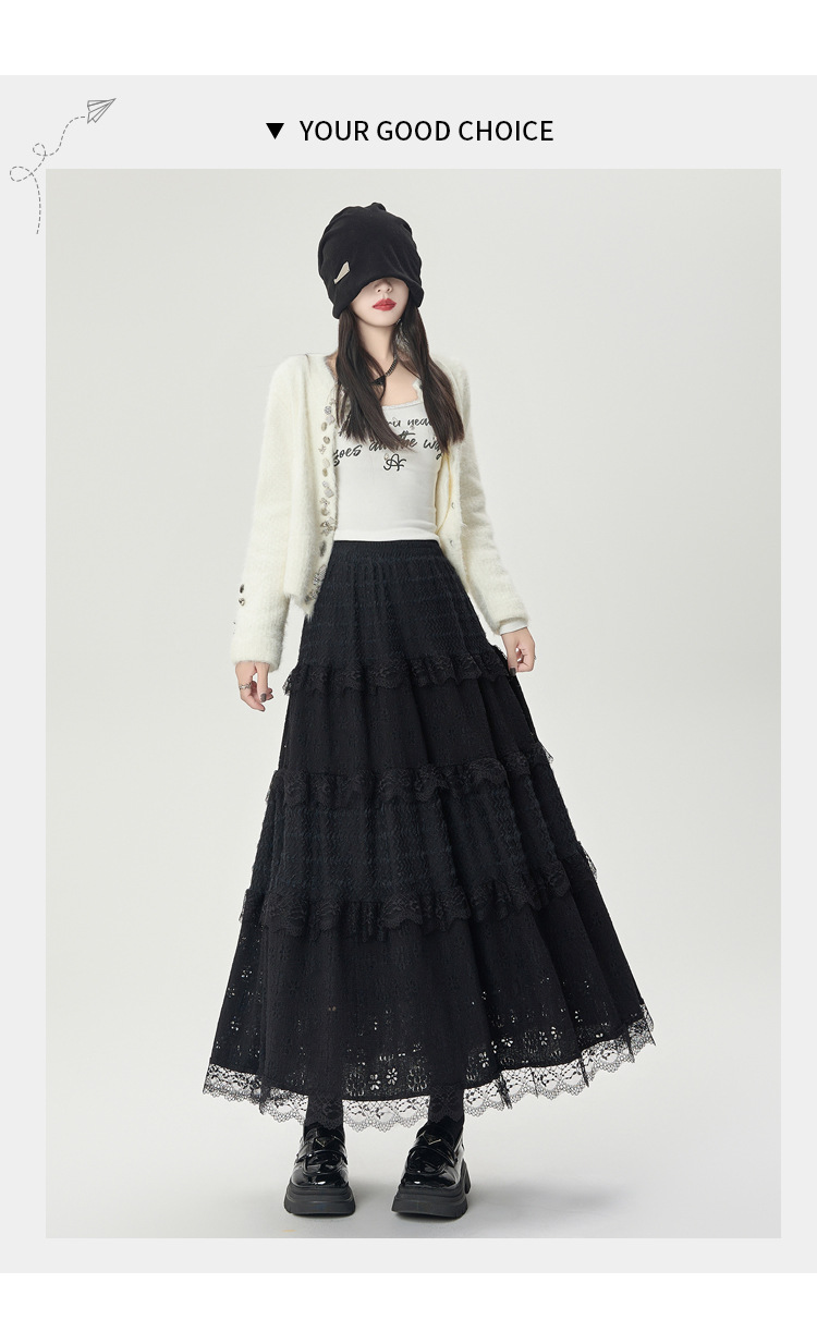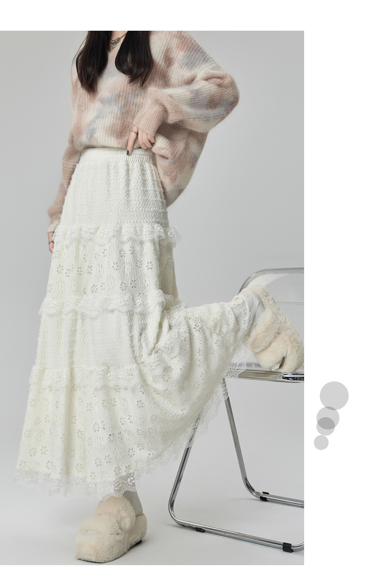 甘いバレエ風半身スカート女装秋冬ケーキスカート仙女スカートレース半スカート小柄a字スカートロングスカート
