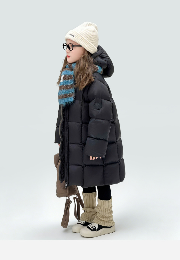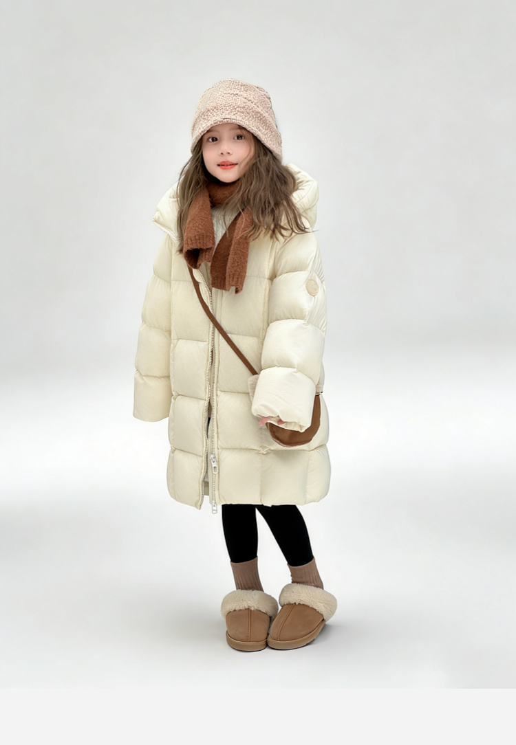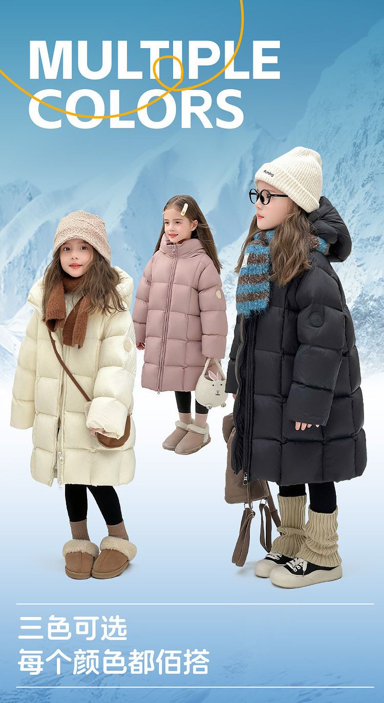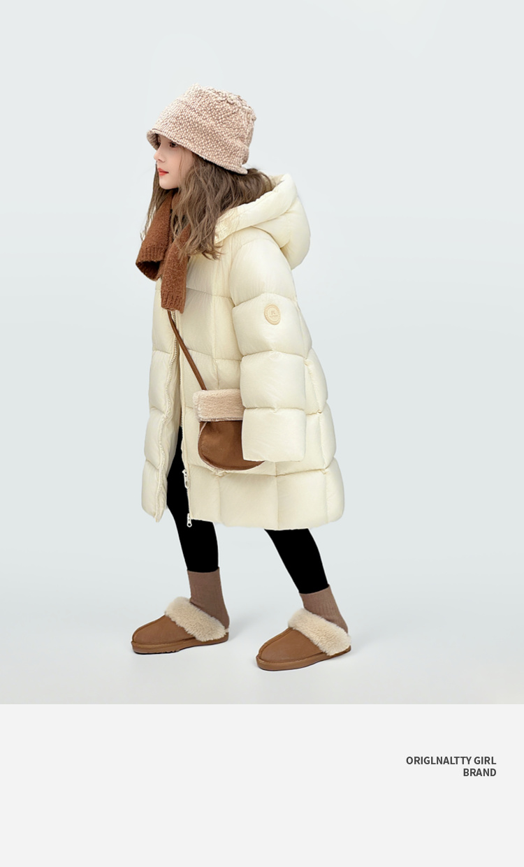 女の子のダウンジャケットの冬のタイプ2025の新型の洋気の流行の子供の秋の服の90白のアヒルの羽毛の厚い保温の上着の潮