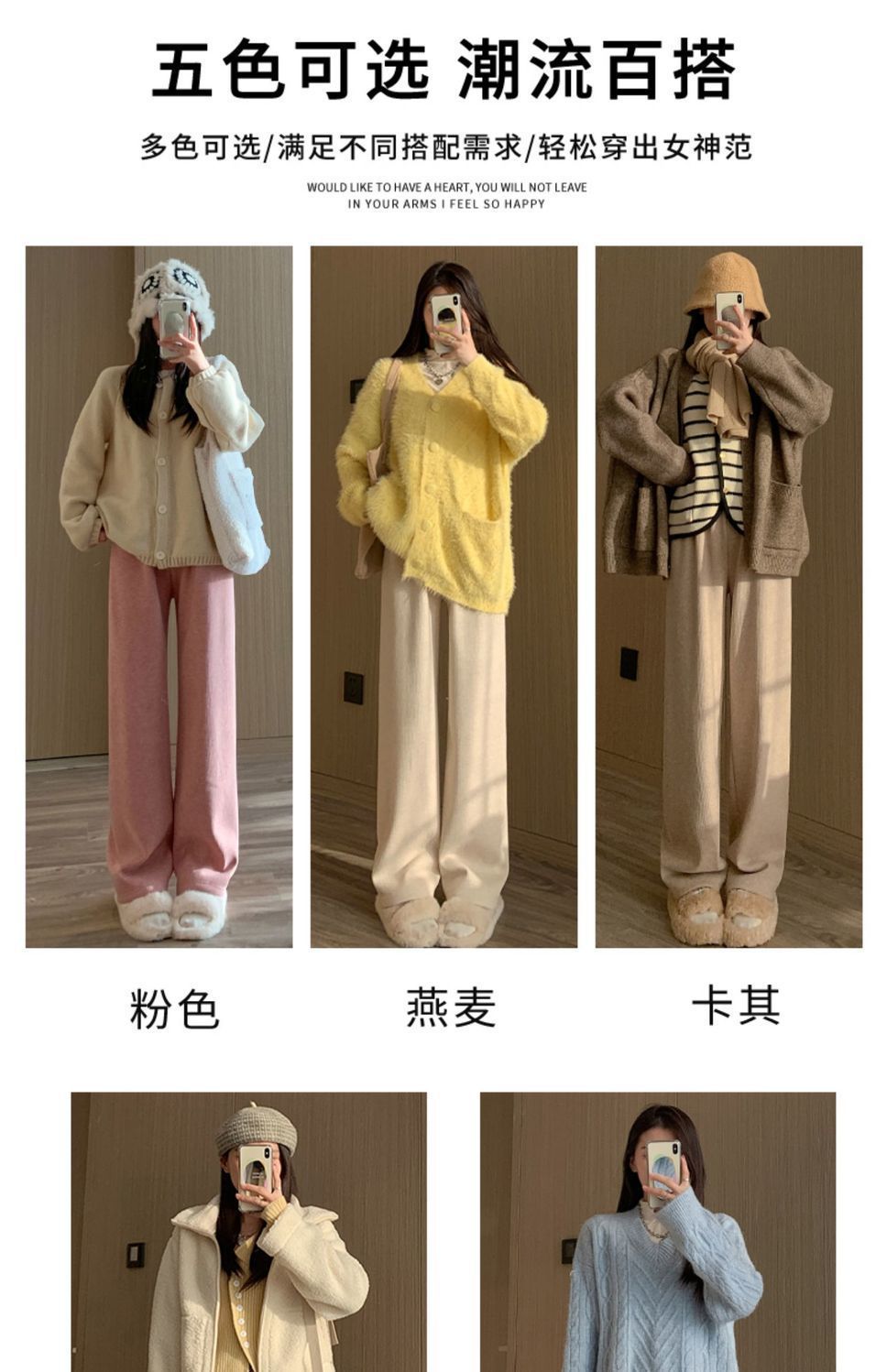 カシミヤニットのワイドパンツ女性秋冬2024年の新型ハイウエストの垂れ下がった感じがやせています。
