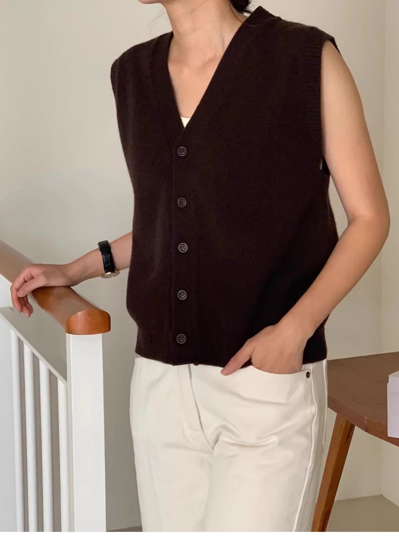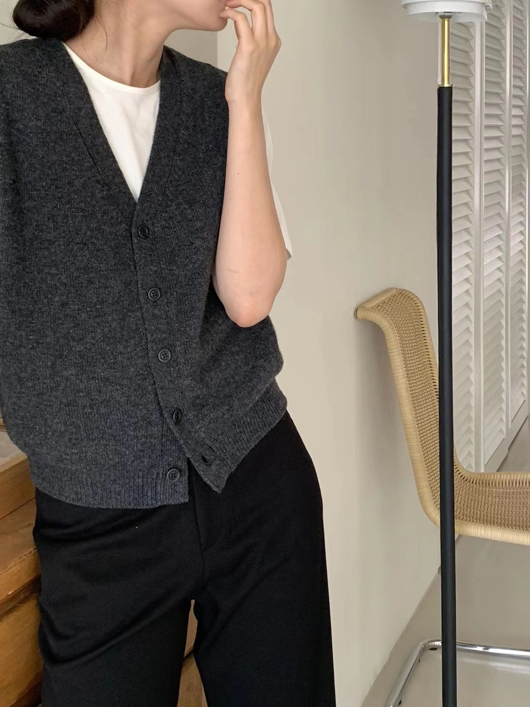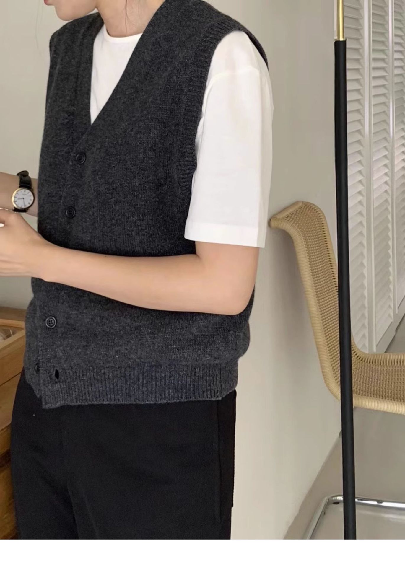 気質レイヤードウールベスト女性の秋と冬の V ネックカーディガンベストカシミヤルーズノースリーブチョッキニットセーター