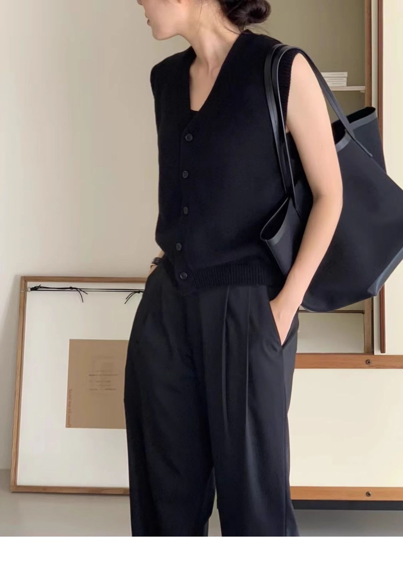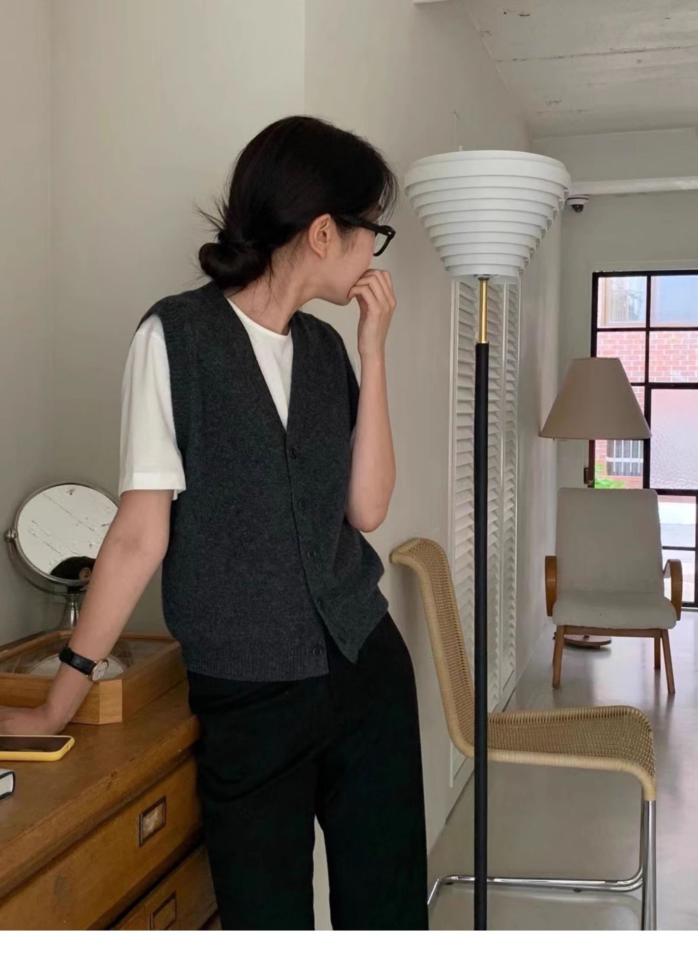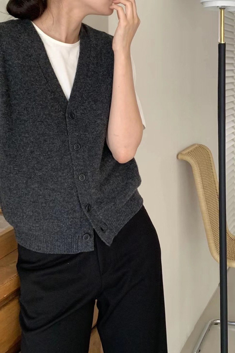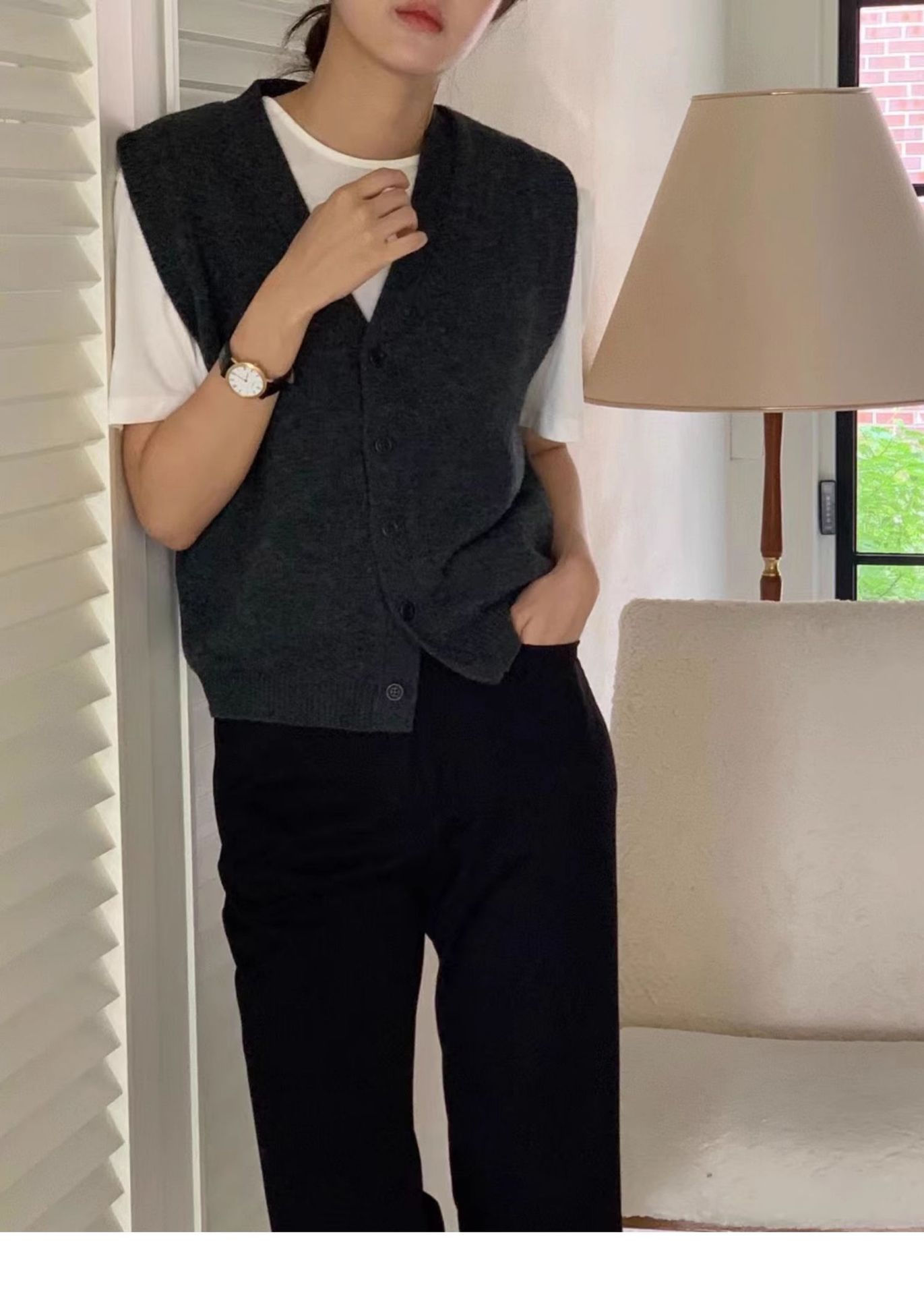 気質レイヤードウールベスト女性の秋と冬の V ネックカーディガンベストカシミヤルーズノースリーブチョッキニットセーター