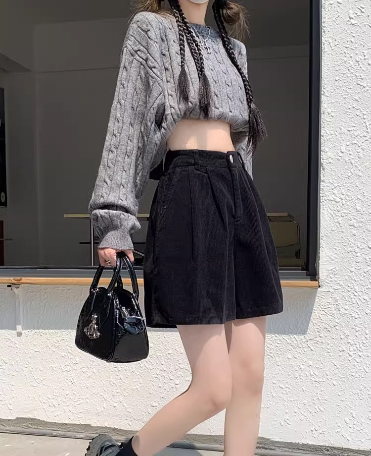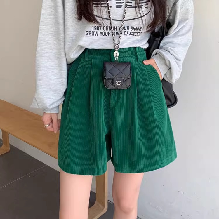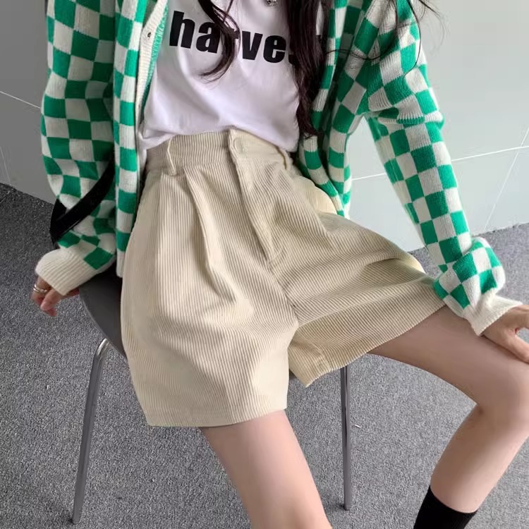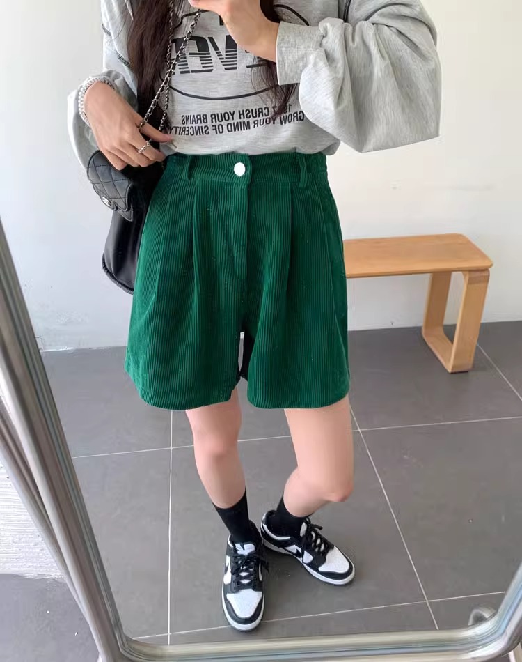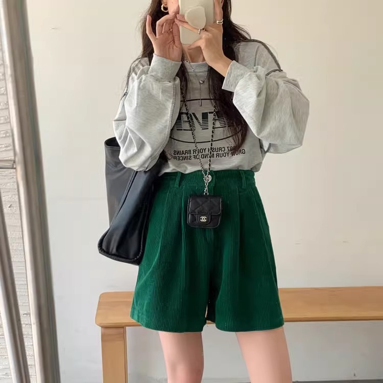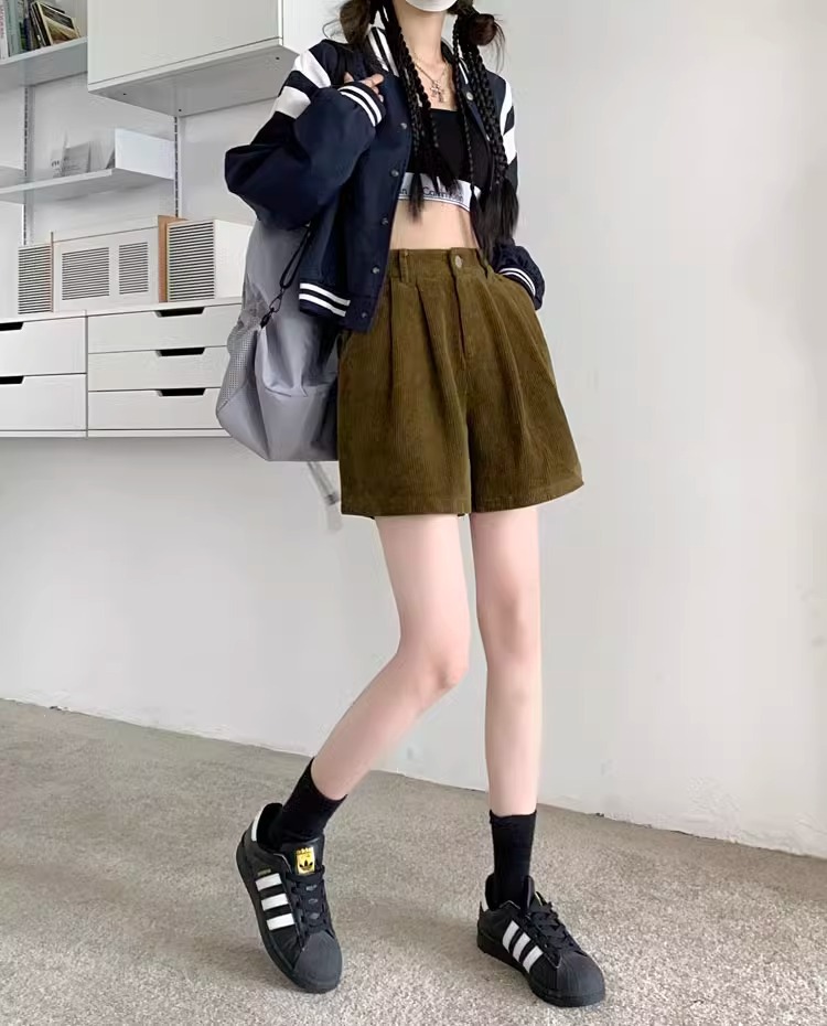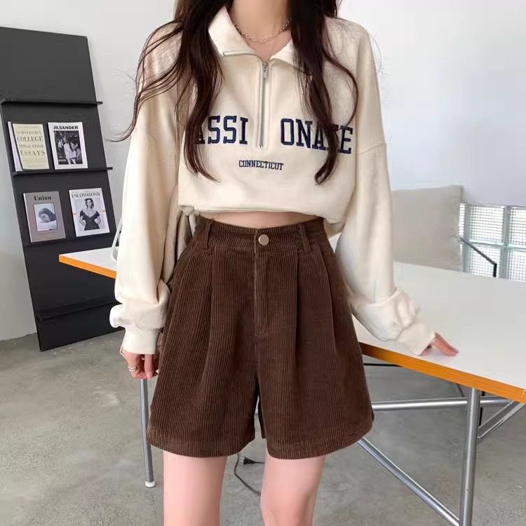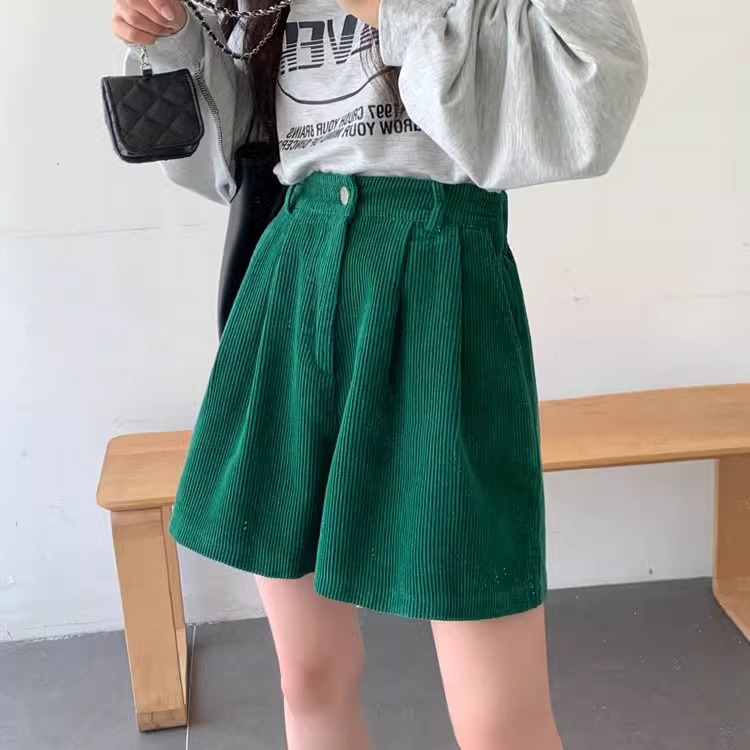 2025 新しい複合ミルクシルクコーデュロイショーツ女性の秋のハイウエスト A ラインワイドレッグパンツカジュアル 5 分パンツ