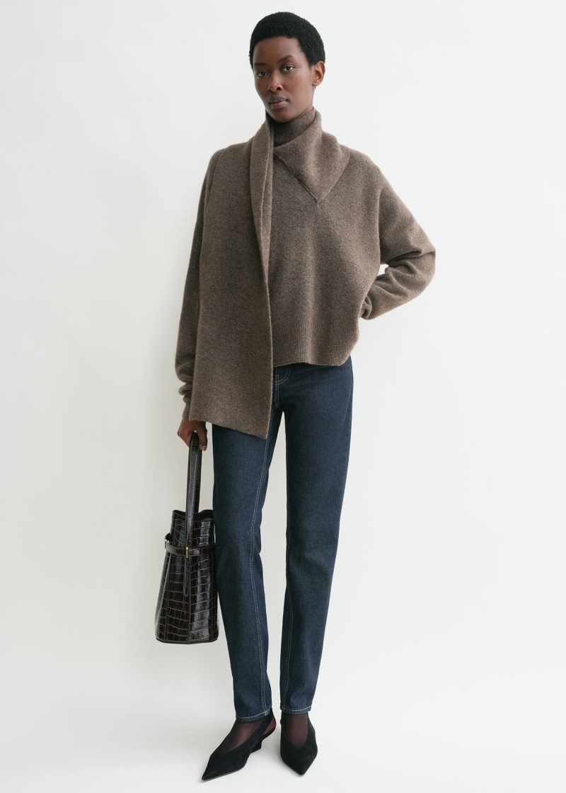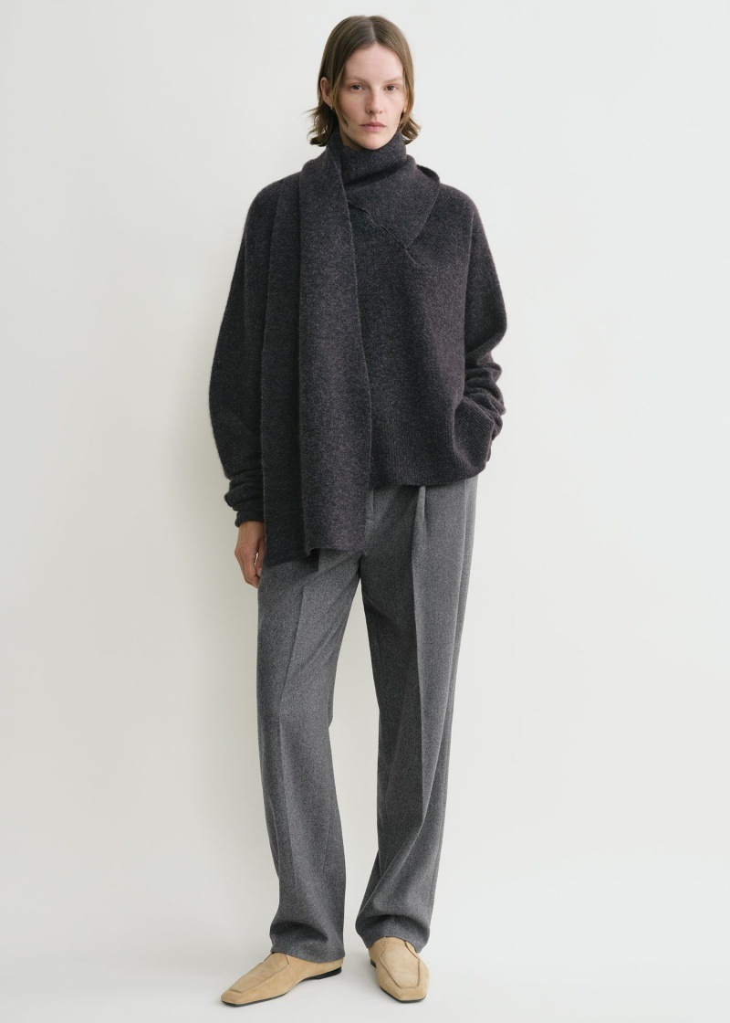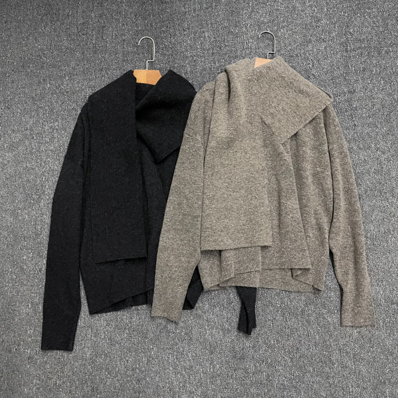 Longmei 北欧スタイル TOT スカーフ襟ルーズセーター女性のための 2025 秋と冬の新しいルーズ長袖ニットトップ