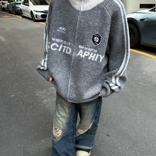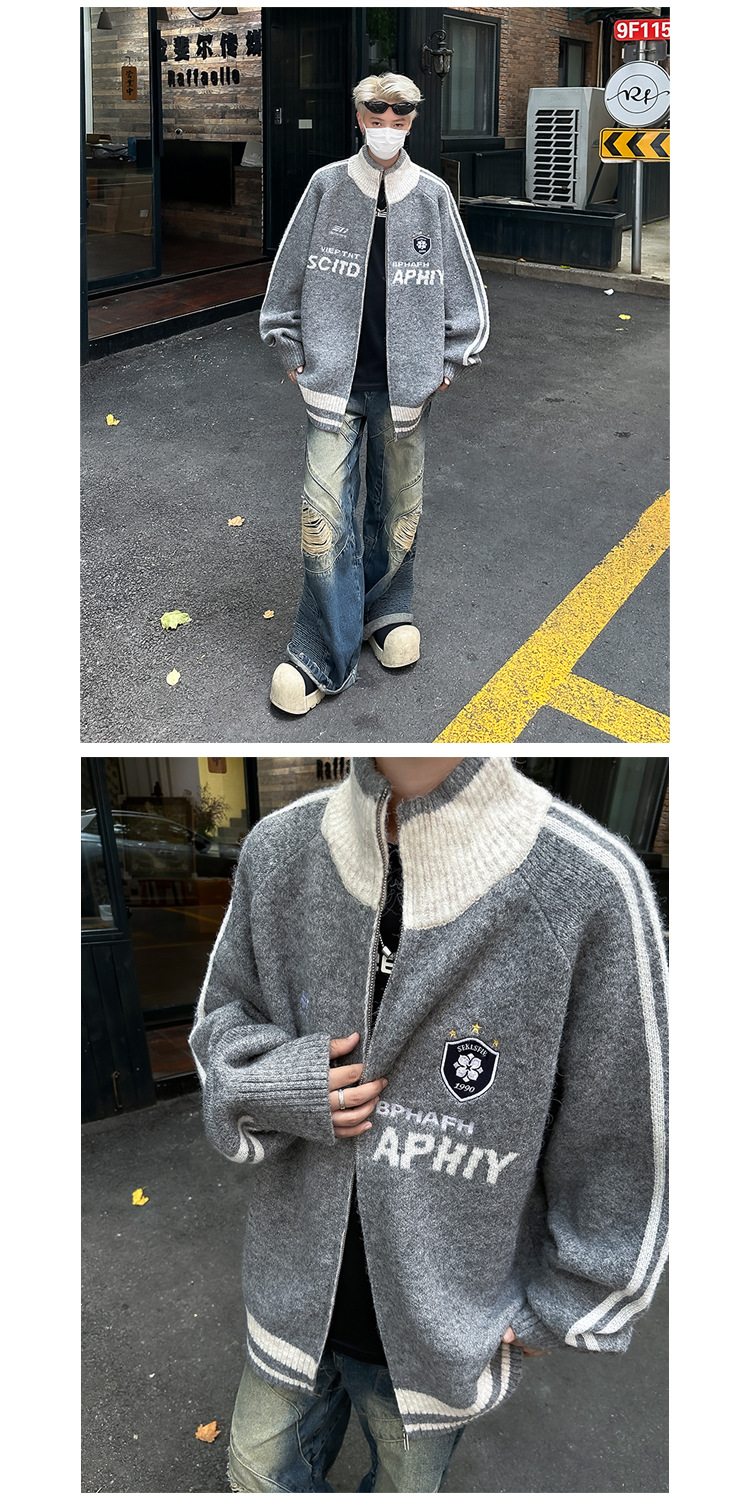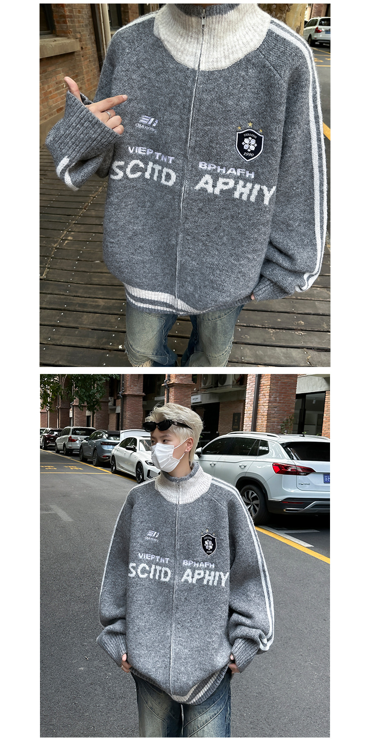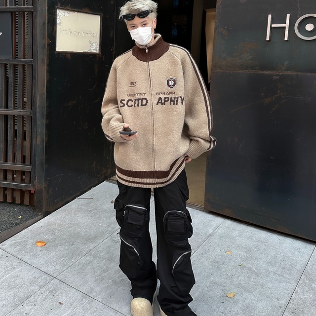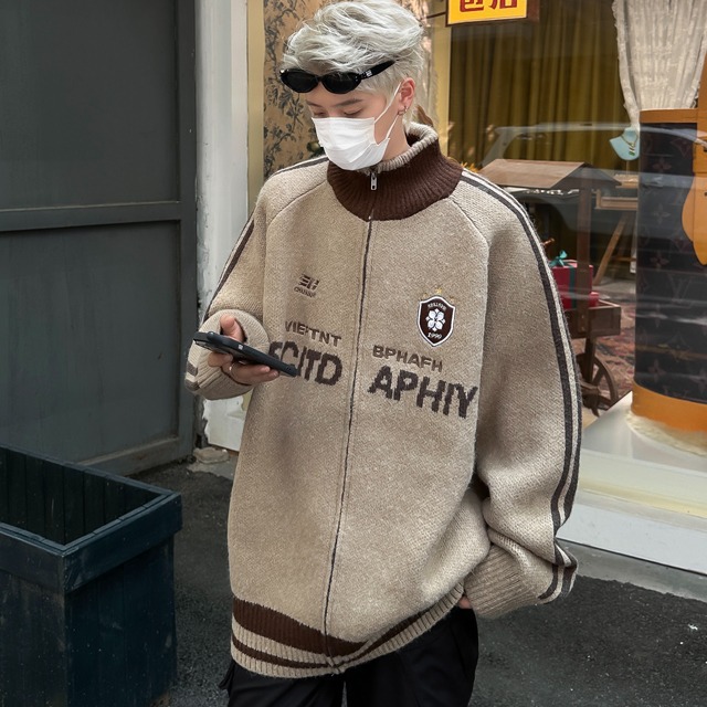 浅耀男装 | アメリカのレトロな立襟ニットの秋の高級感コート男性のゆるいカーディガンの怠惰なセーター