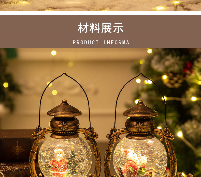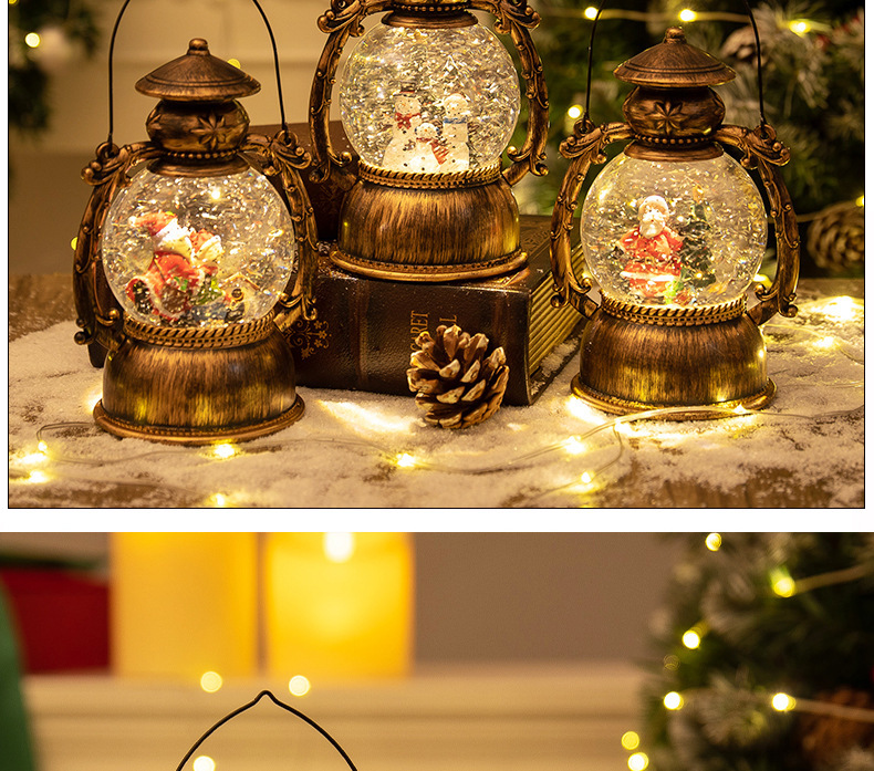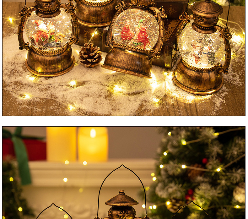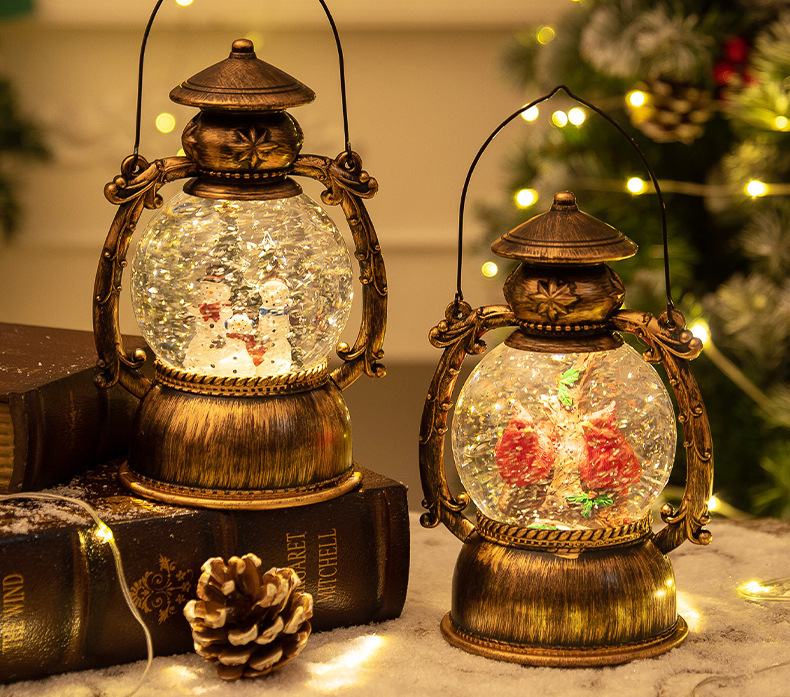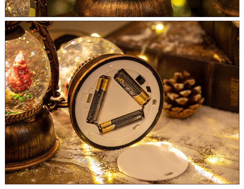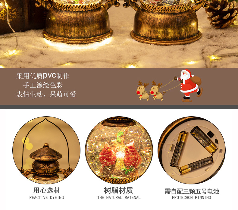 国境を越えた新しいクリスマスレトロ漫画風水入りオルゴール、クリスマス雪降るオルゴール装飾ギフトナイトライト