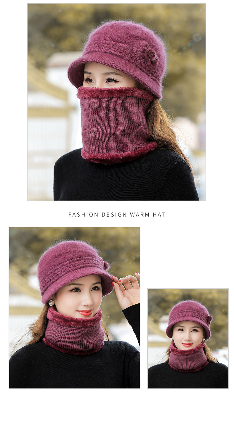中高年の帽子の女性秋冬のウサギの毛のニットの盆栽の帽子の冬の老人のお母さんの帽子のおばあさんの帽子のマフラーのスーツ