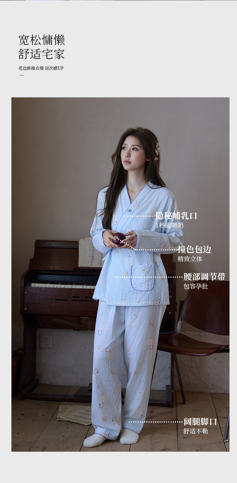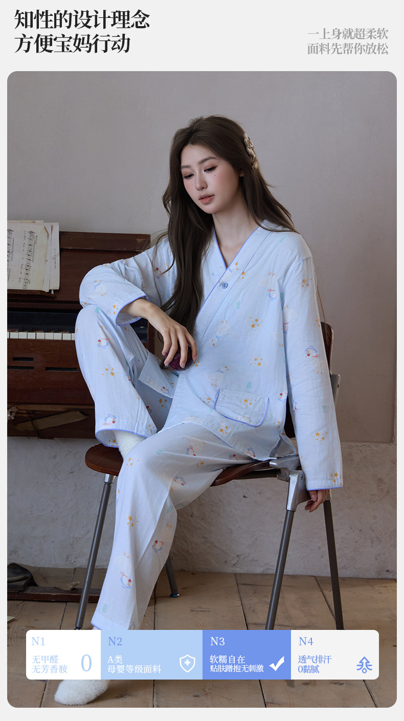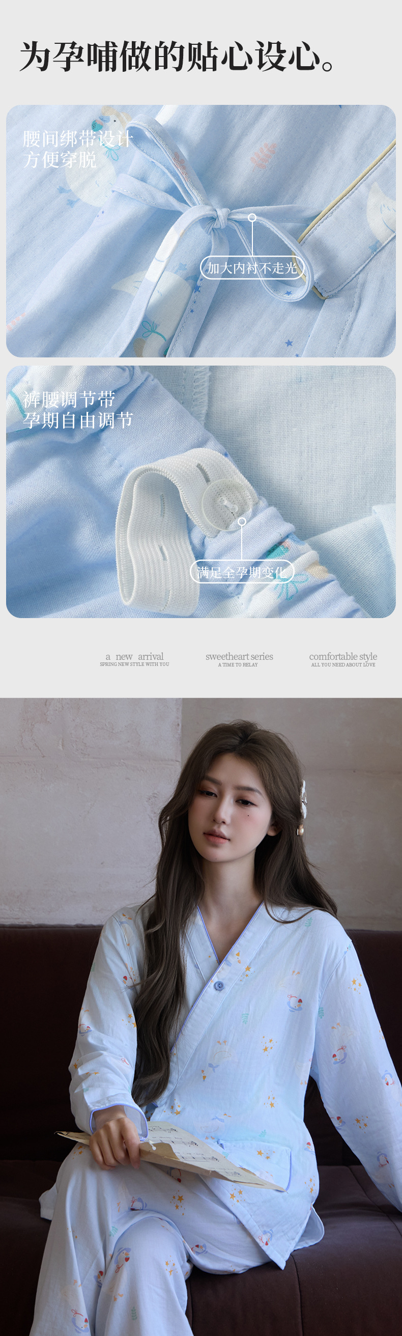 新品着物純綿二重ガーゼ月子服パジャマ春夏妊婦産後授乳調節可ホームウェア
