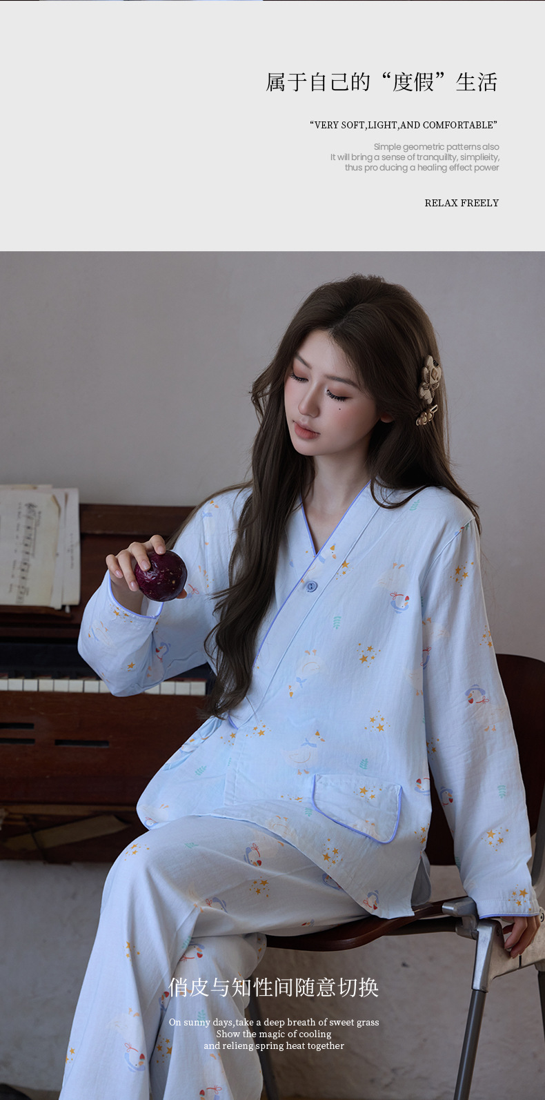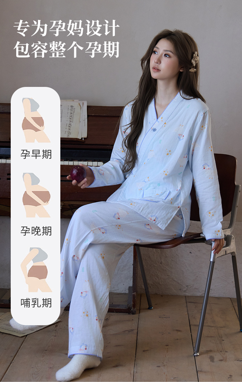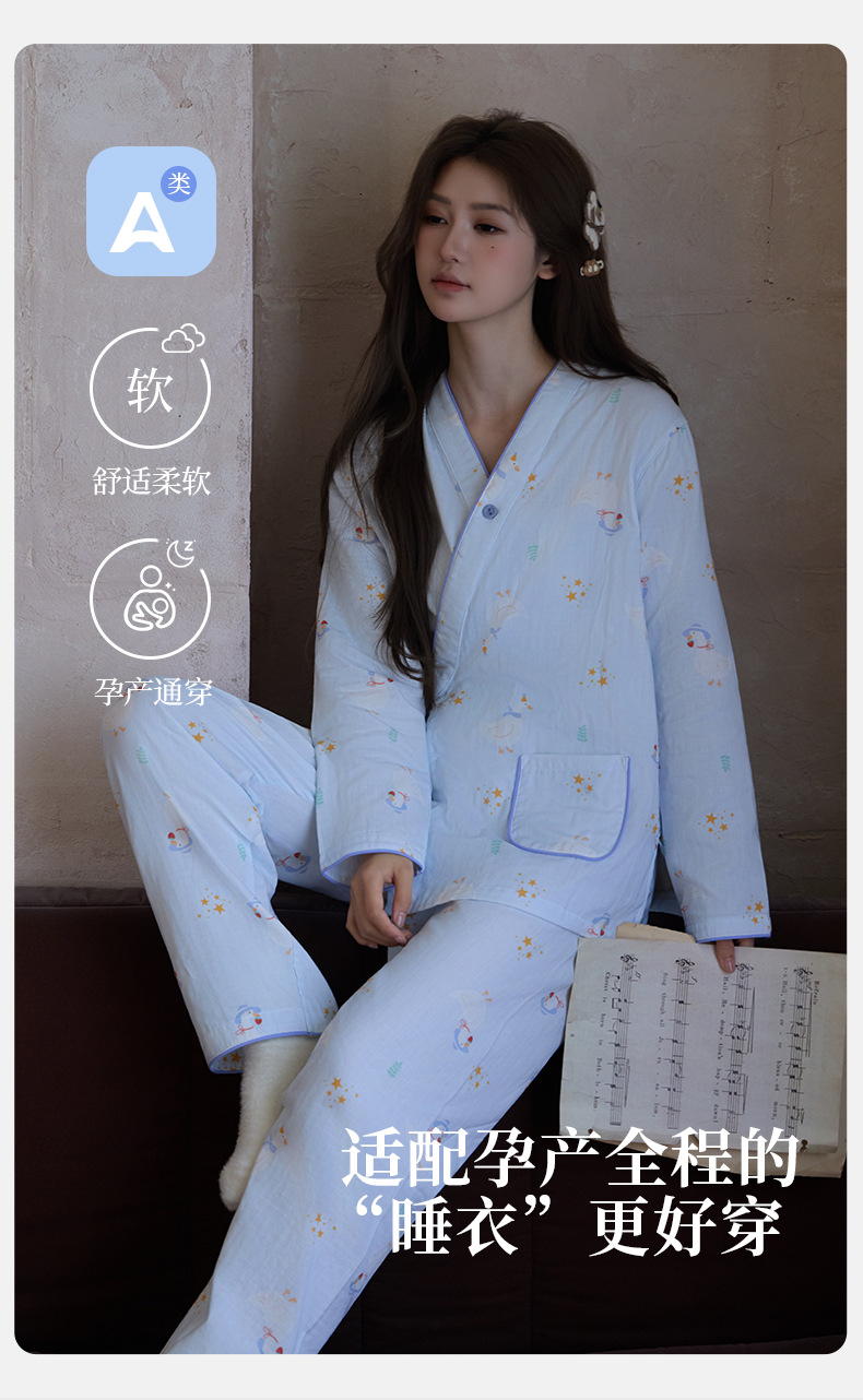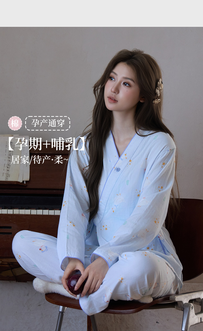 新品着物純綿二重ガーゼ月子服パジャマ春夏妊婦産後授乳調節可ホームウェア