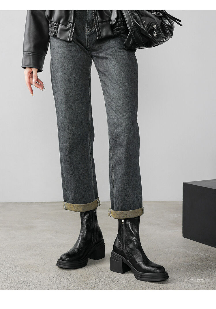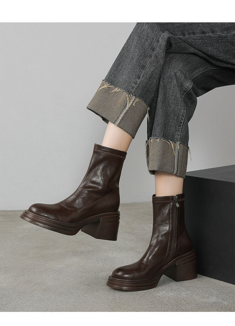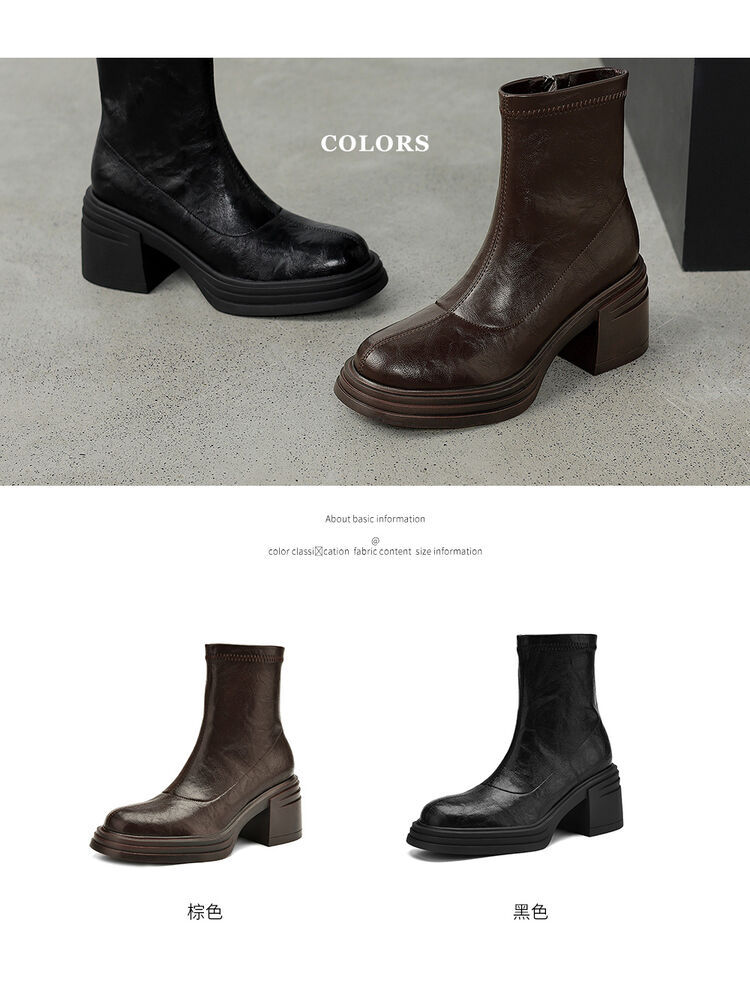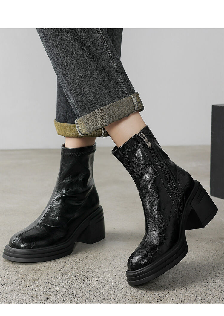 高さ6.5cmの高さと太さと弾力性のあるやせた靴2024秋の新型後ファスナーのショートブーツの柔らかい底