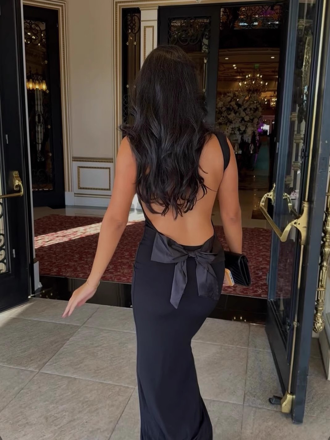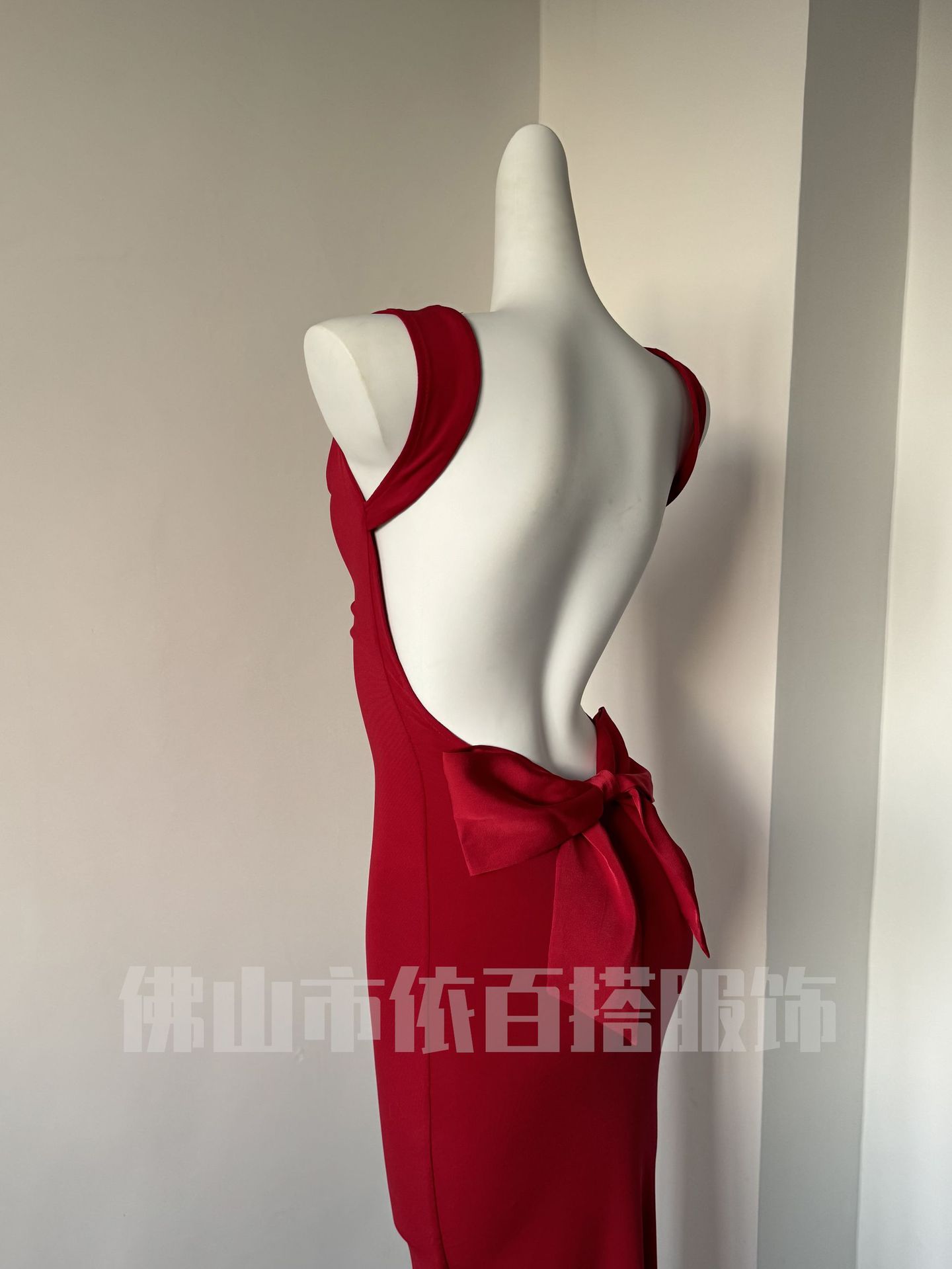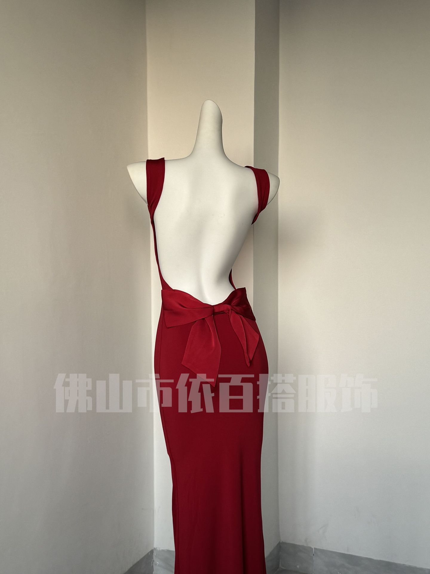 欧米のクロスボーダーのセクシーな大きい露背のワンピースのギャルの蝶結びの長いスカートの気質の小さい大衆は婦人服の独立駅を設計します。