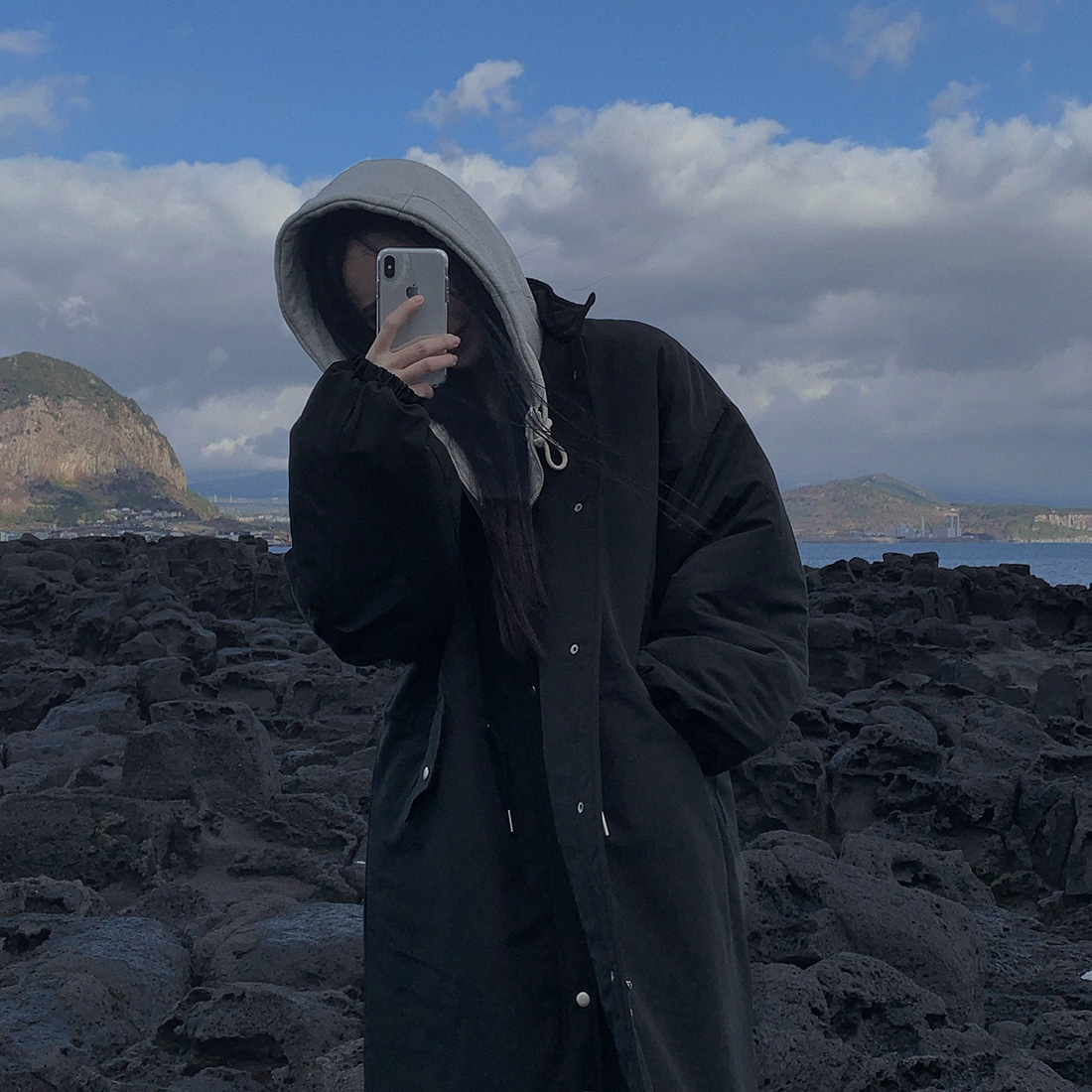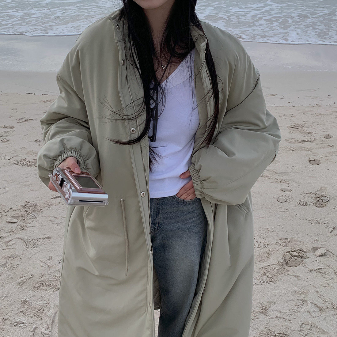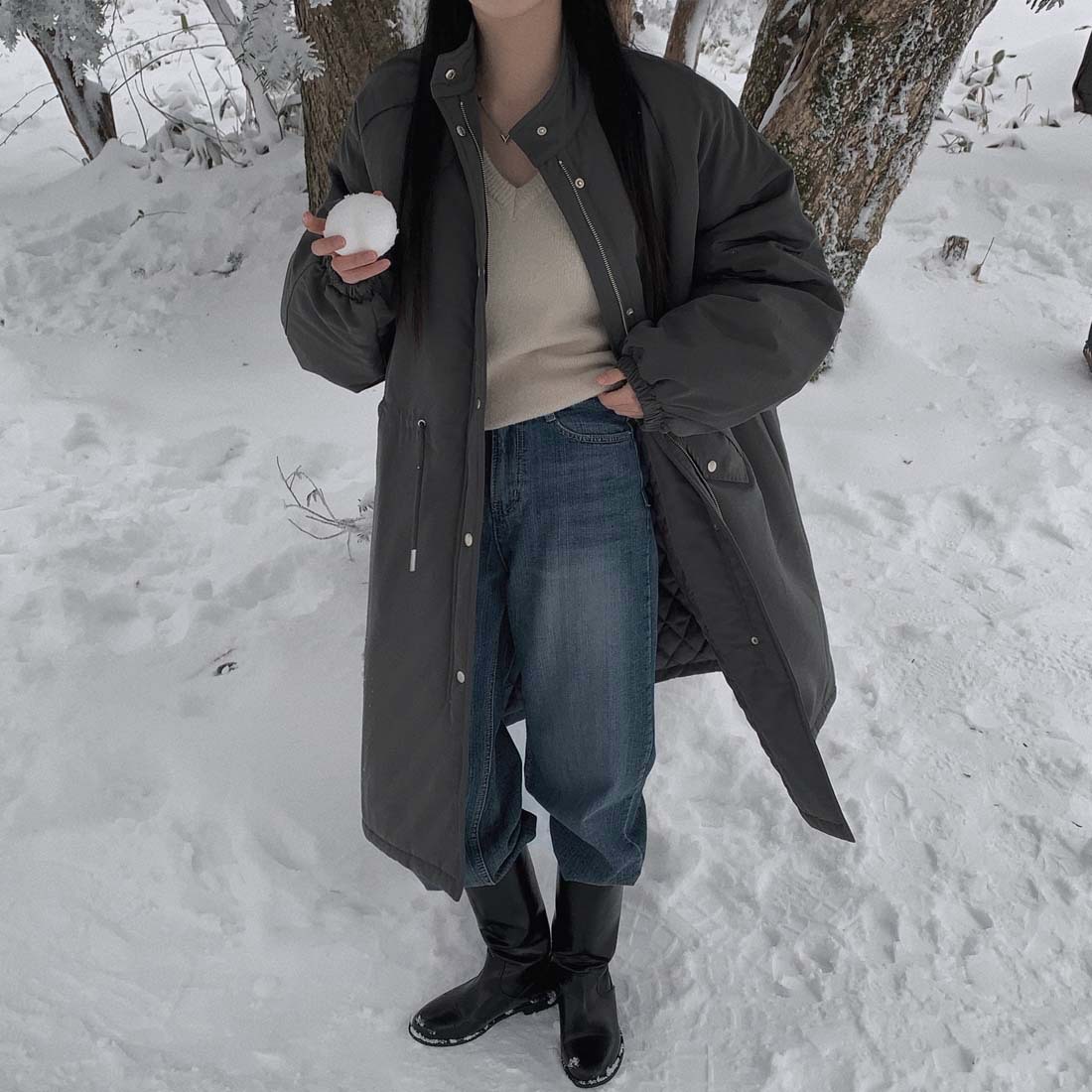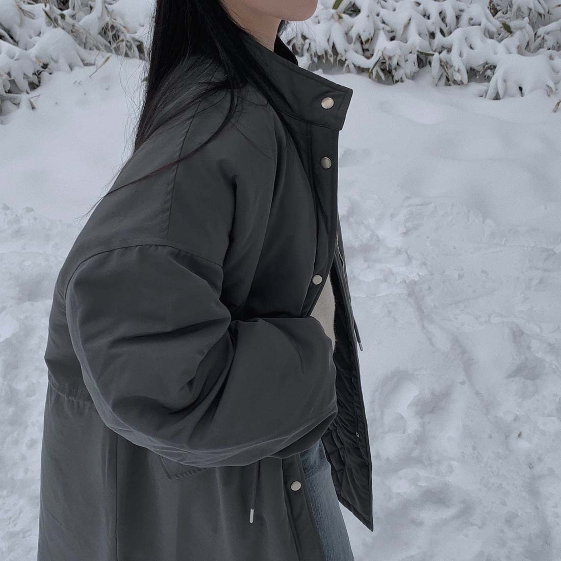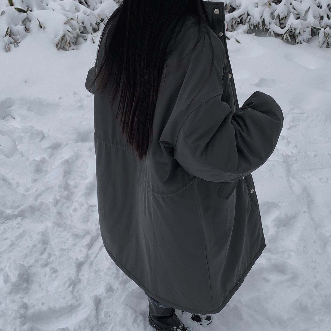 韓国のchic冬の怠惰な風の工装パーカーのゆったりした大きいものは縄の立襟の綿入れの保温の綿入れの長いコートを引き出します。