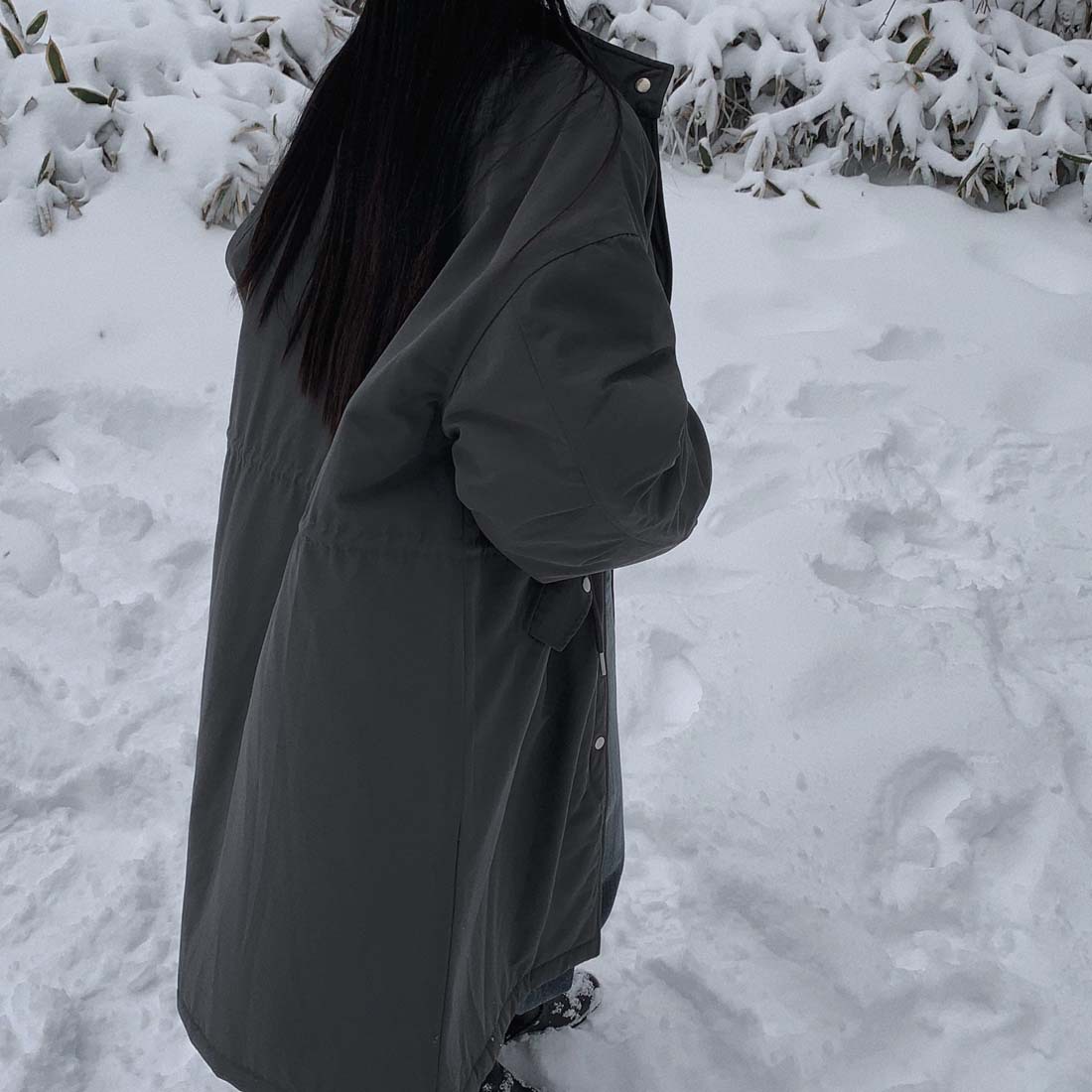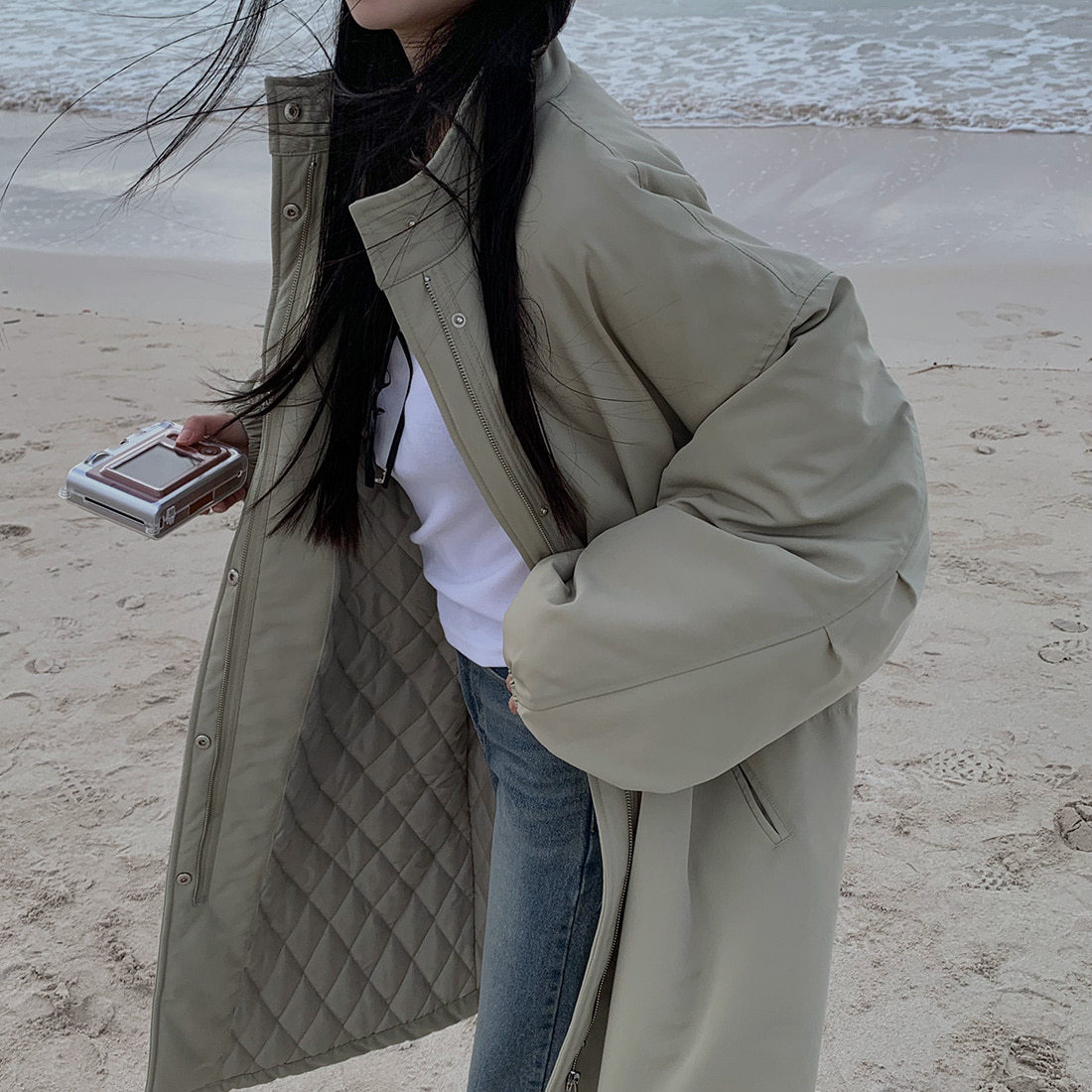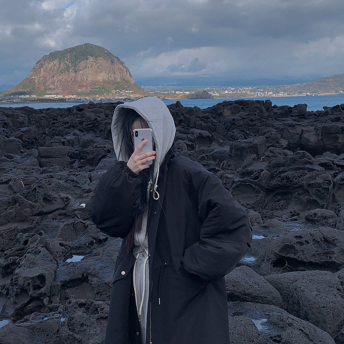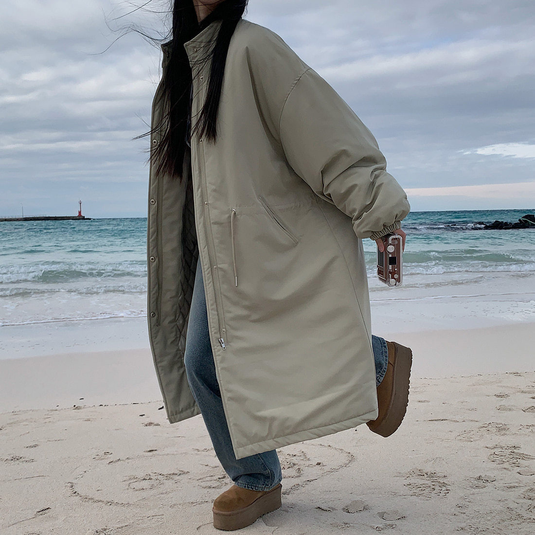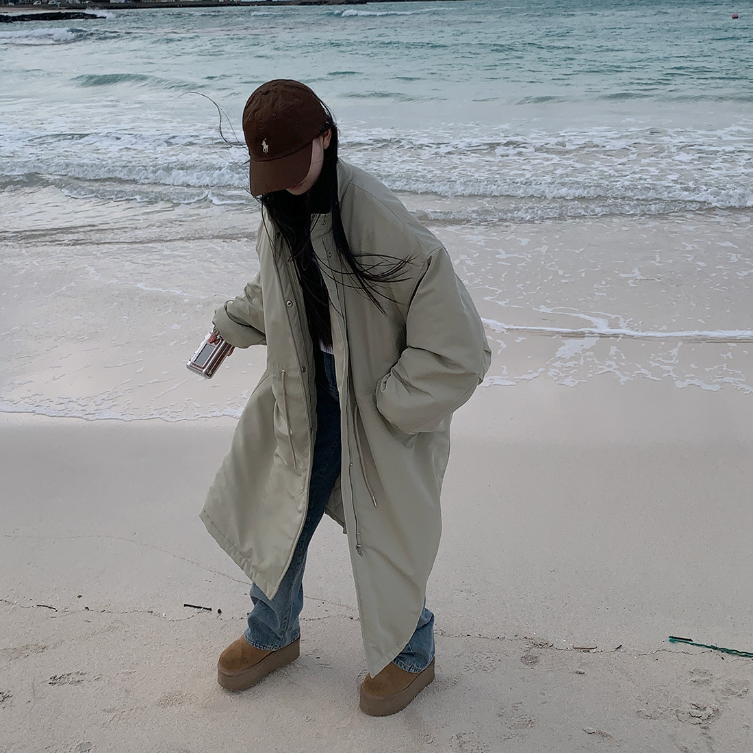 韓国のchic冬の怠惰な風の工装パーカーのゆったりした大きいものは縄の立襟の綿入れの保温の綿入れの長いコートを引き出します。