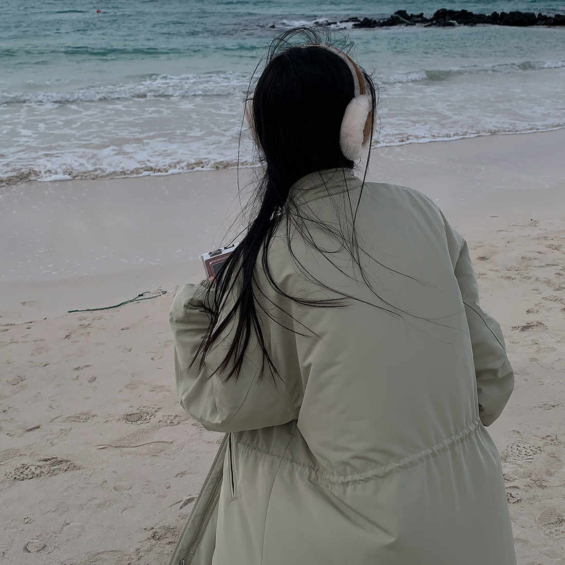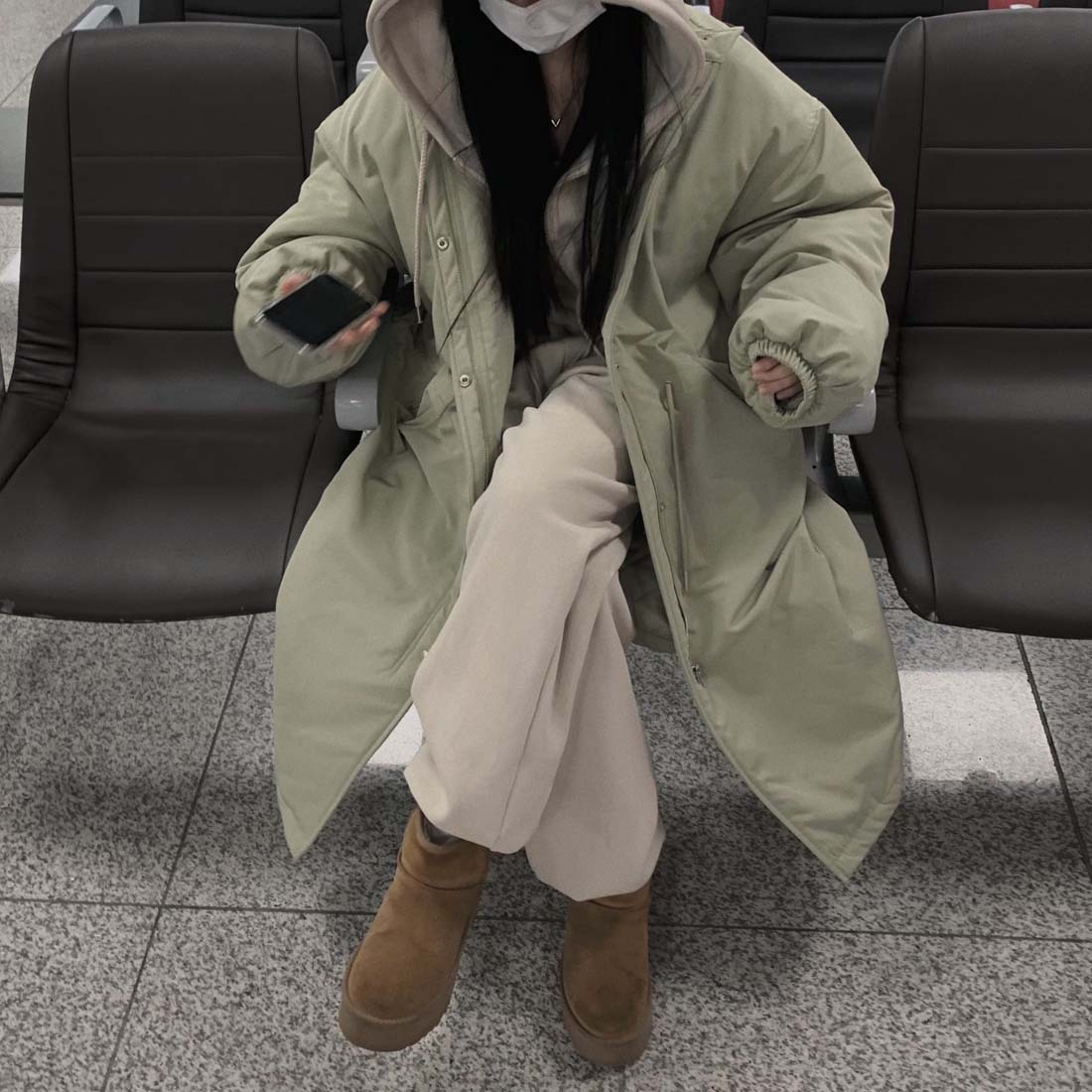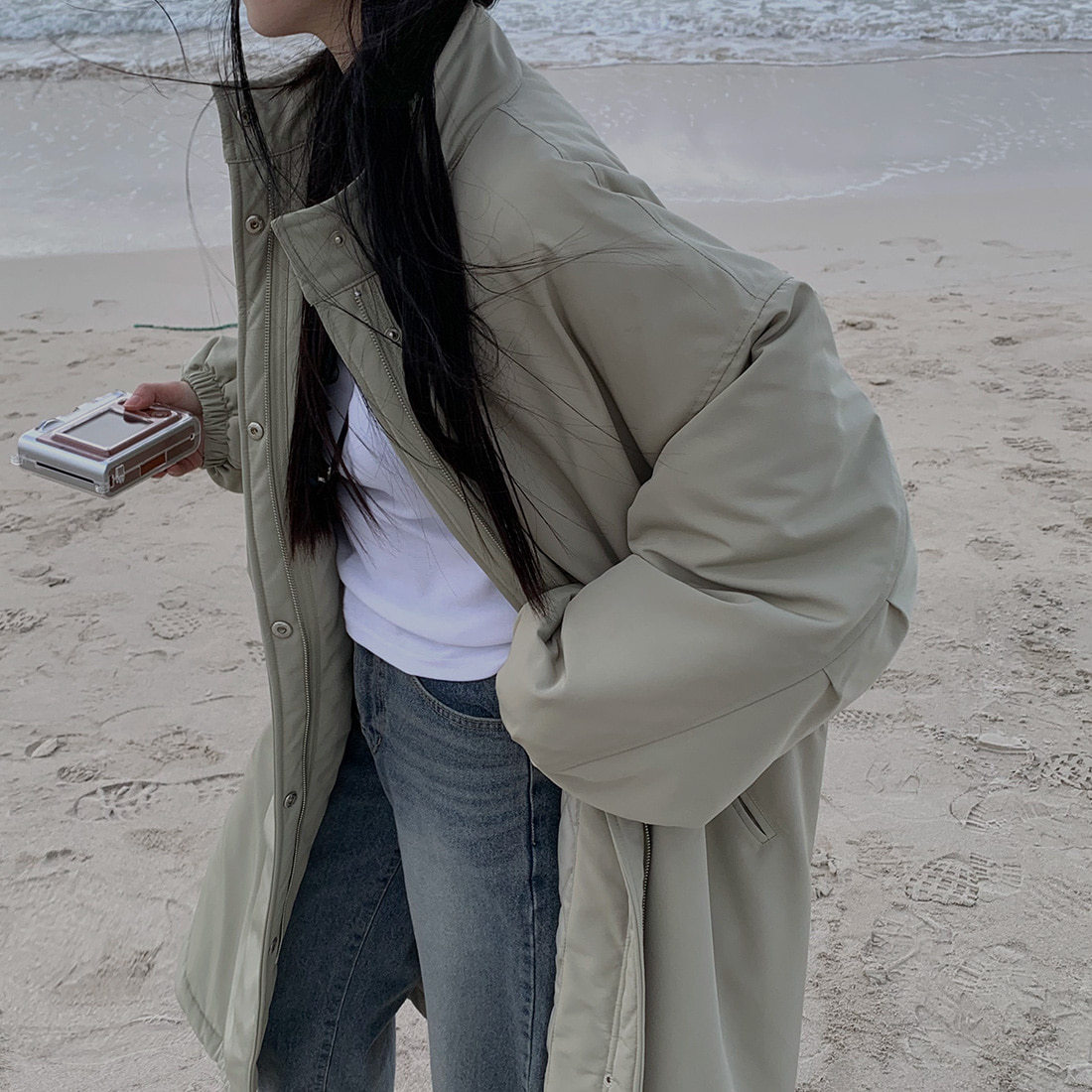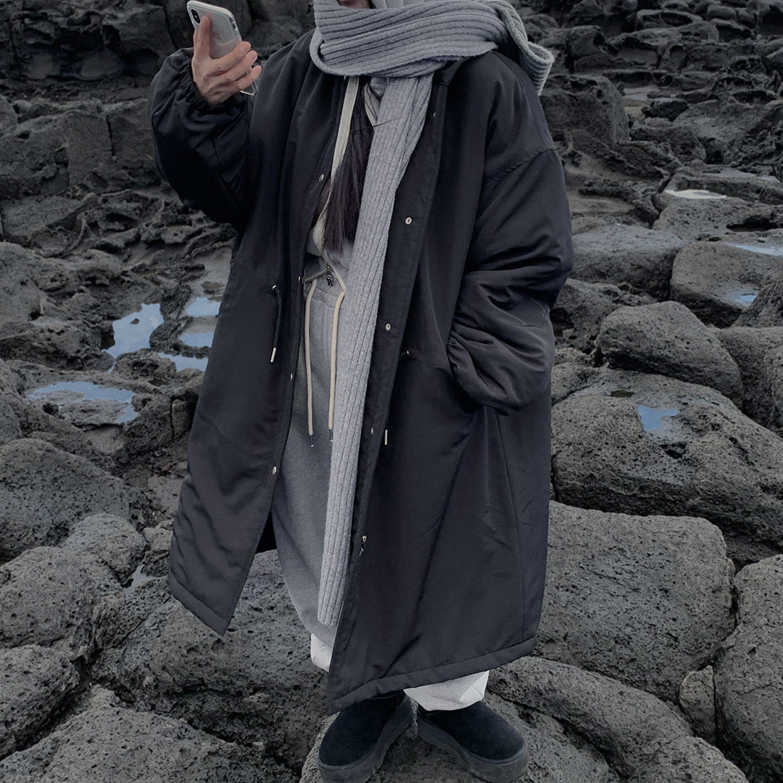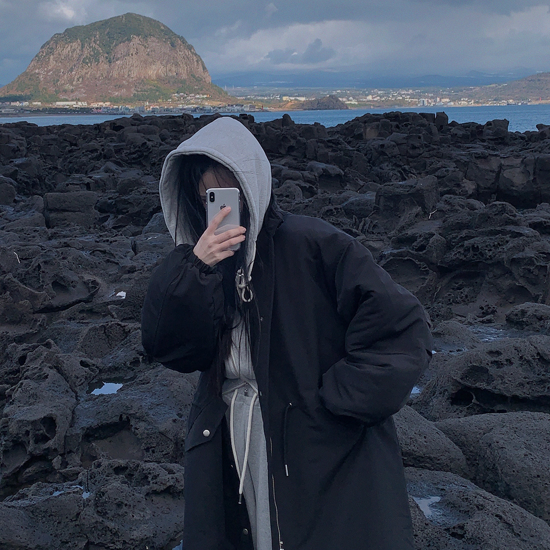 韓国のchic冬の怠惰な風の工装パーカーのゆったりした大きいものは縄の立襟の綿入れの保温の綿入れの長いコートを引き出します。