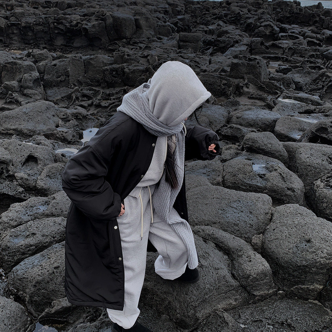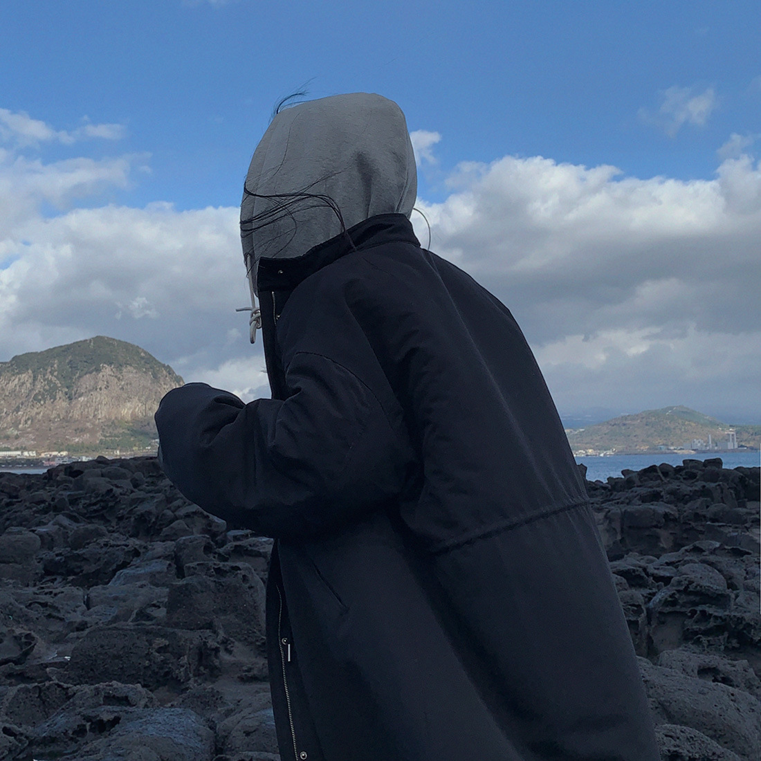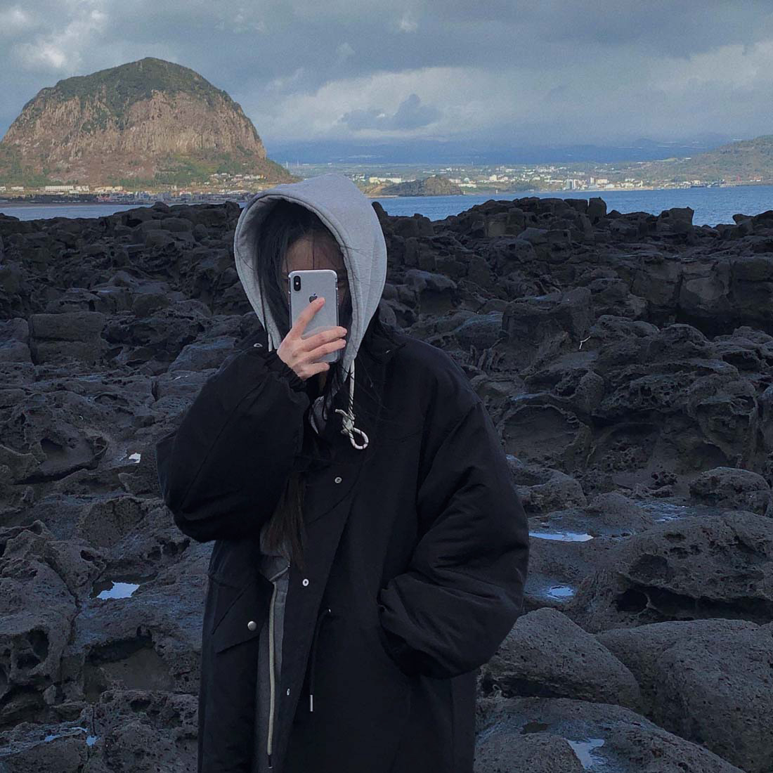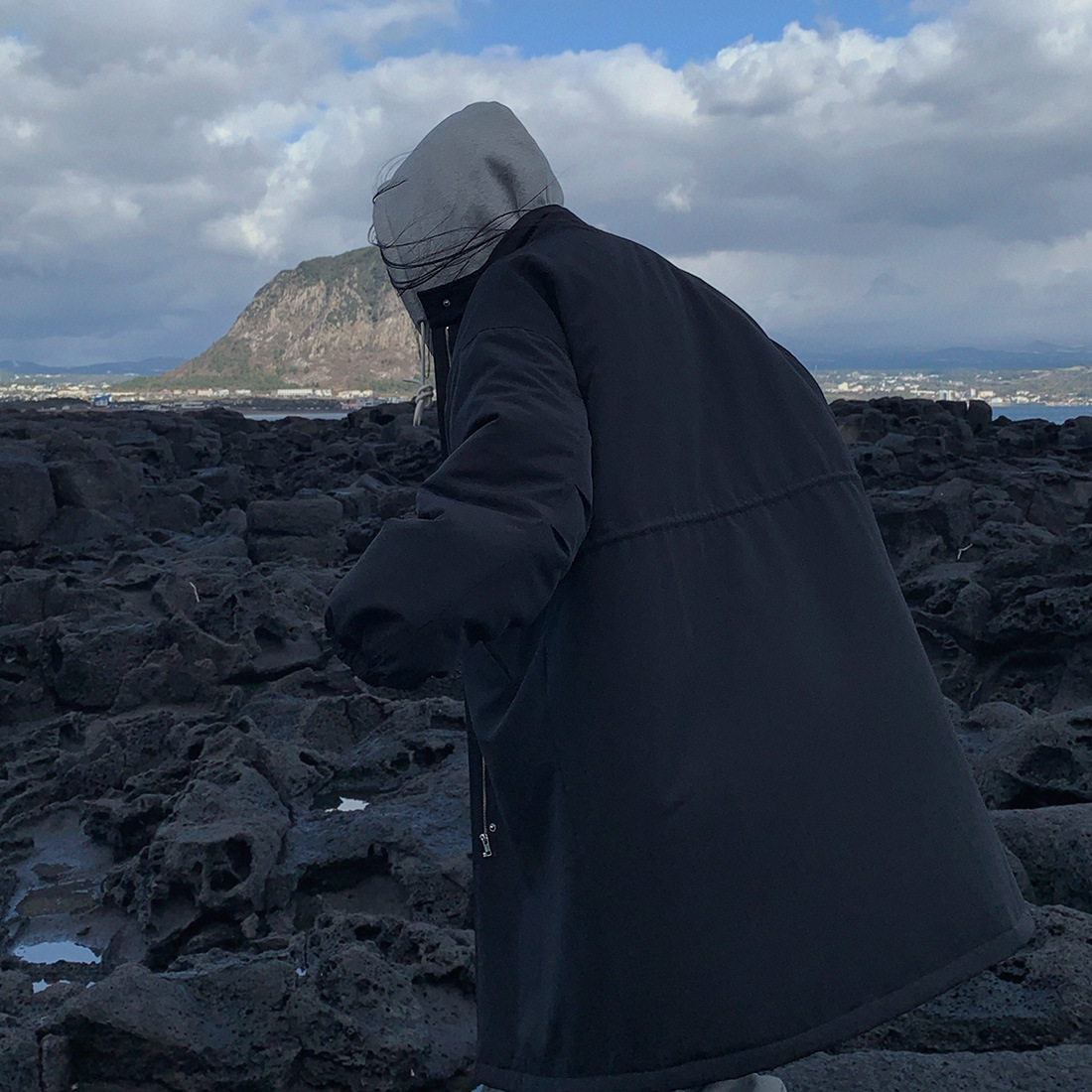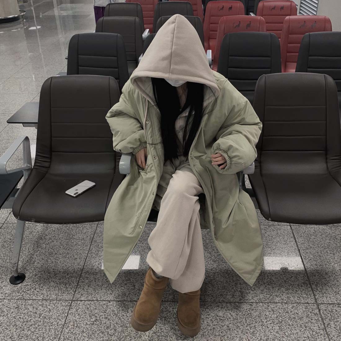 韓国のchic冬の怠惰な風の工装パーカーのゆったりした大きいものは縄の立襟の綿入れの保温の綿入れの長いコートを引き出します。