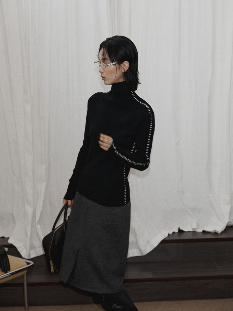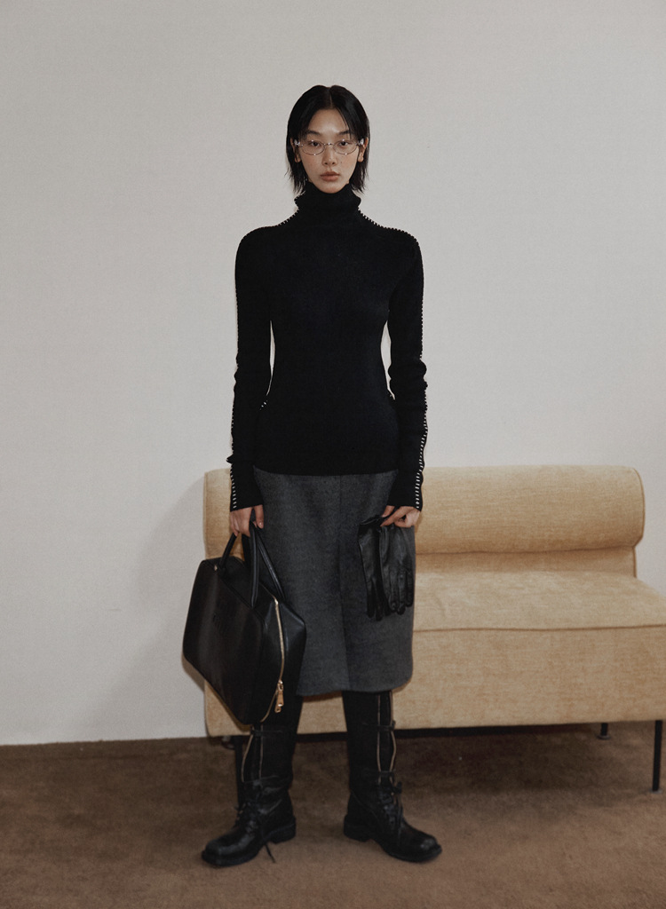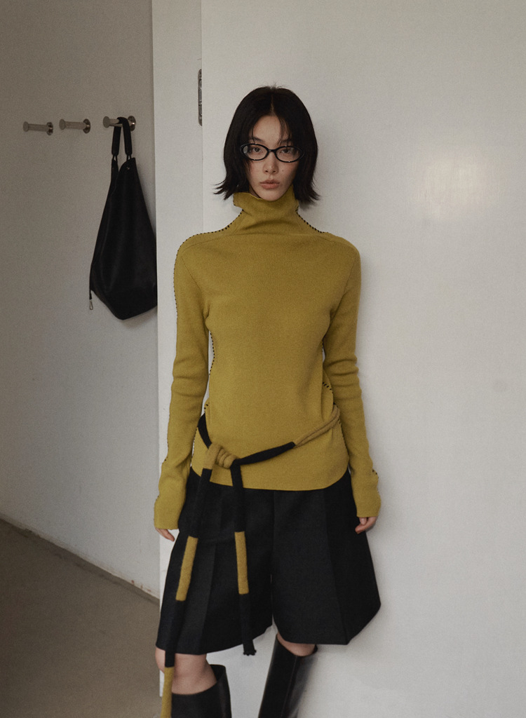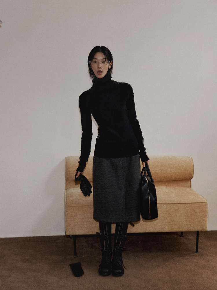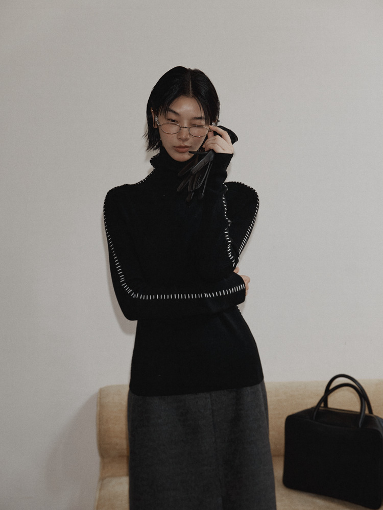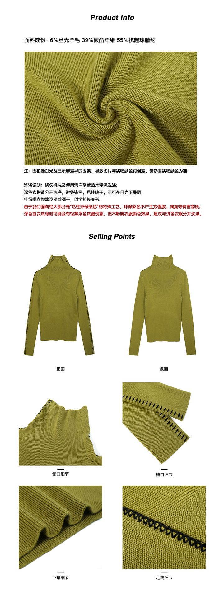 ユニティモードデザイン感手縫いタートルネックウールセーター女性の冬の色は底にニットを合わせます。