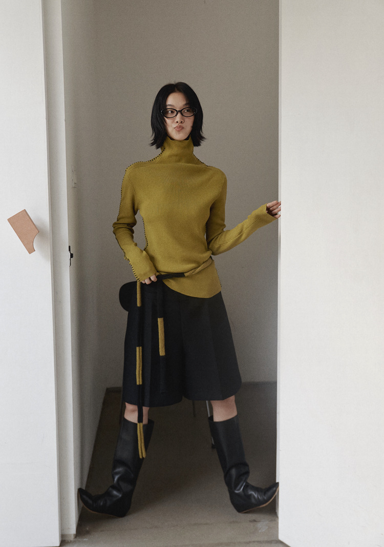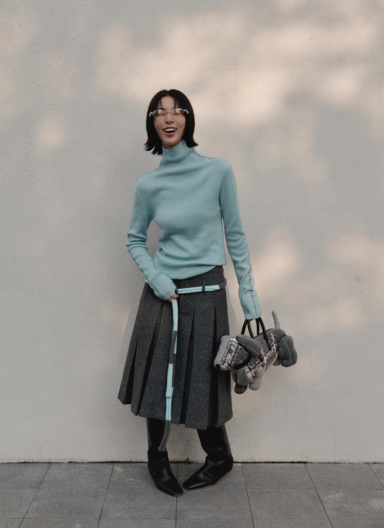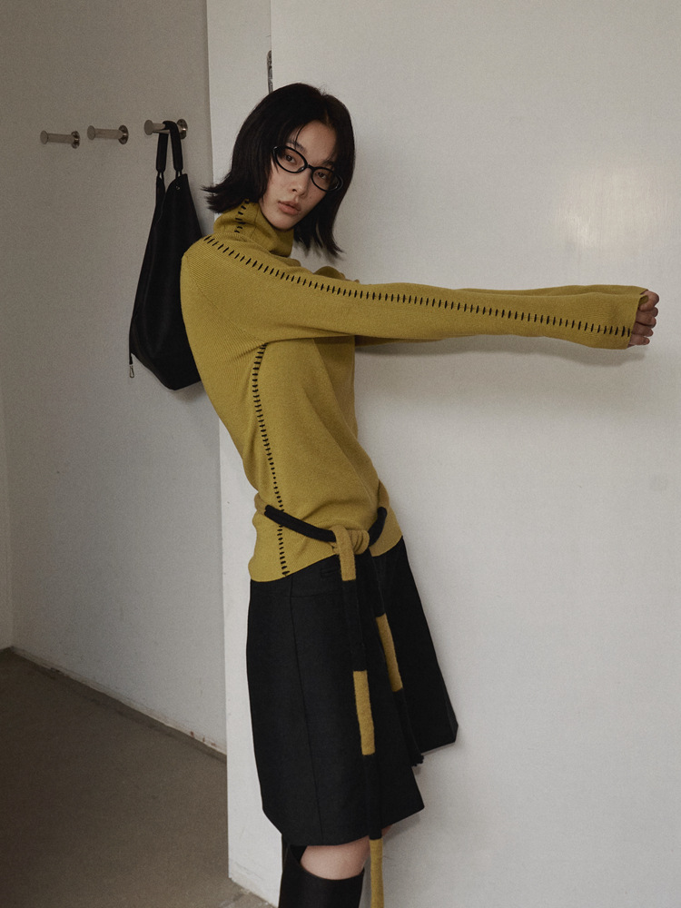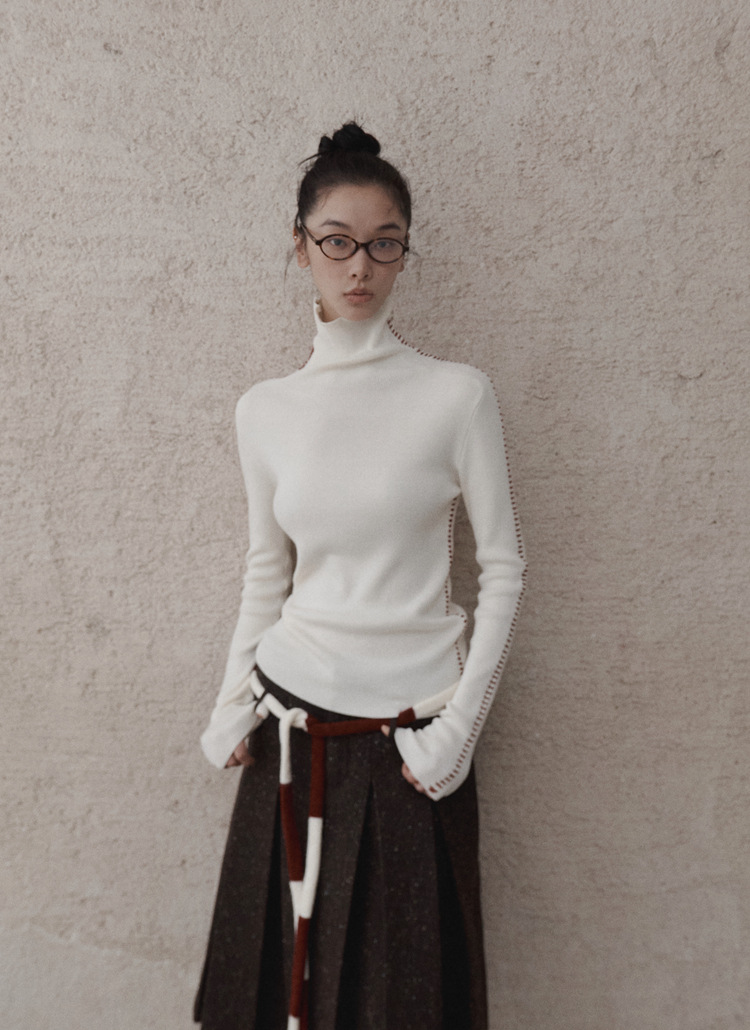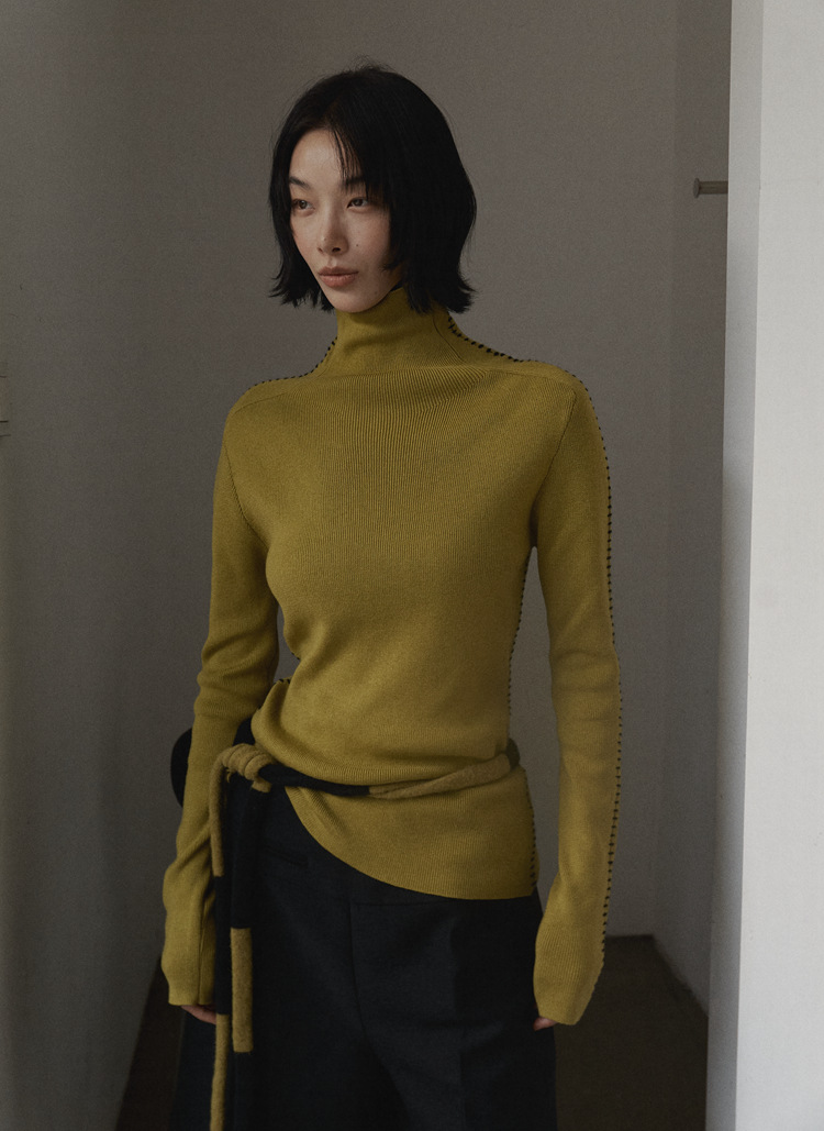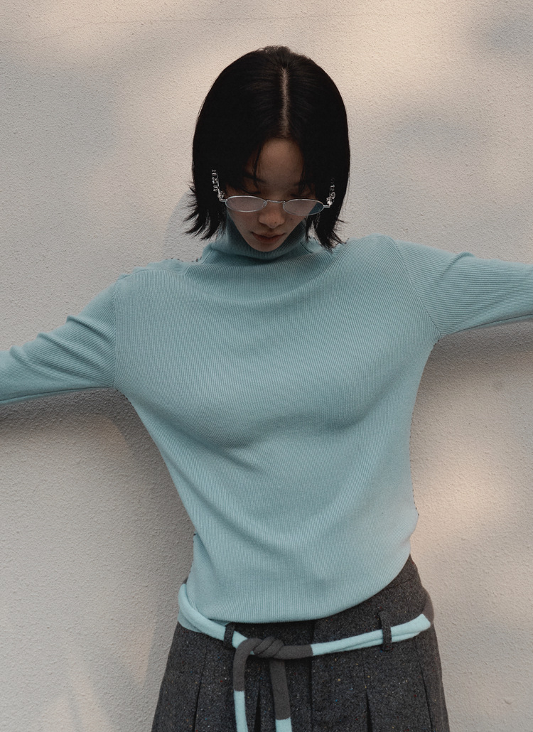 ユニティモードデザイン感手縫いタートルネックウールセーター女性の冬の色は底にニットを合わせます。