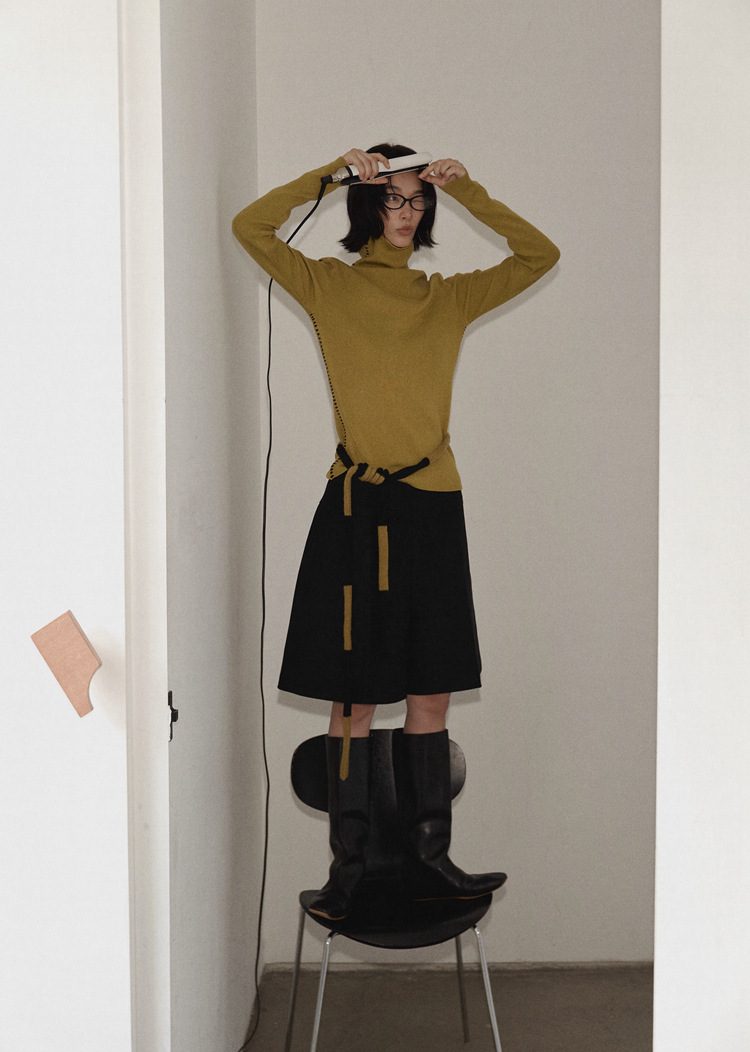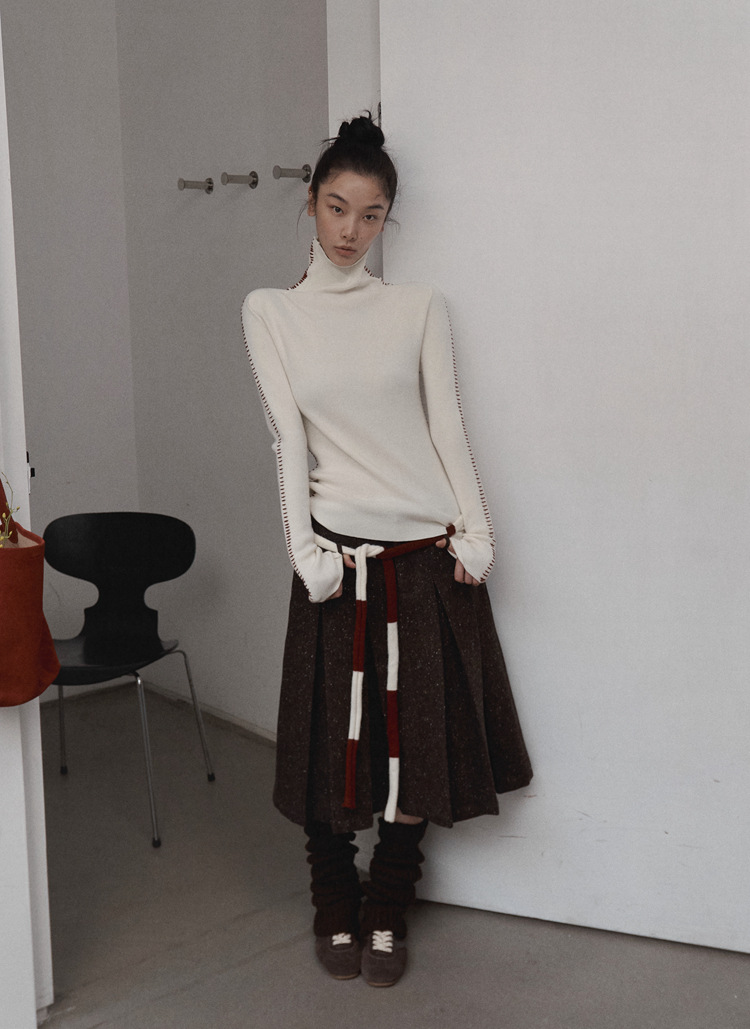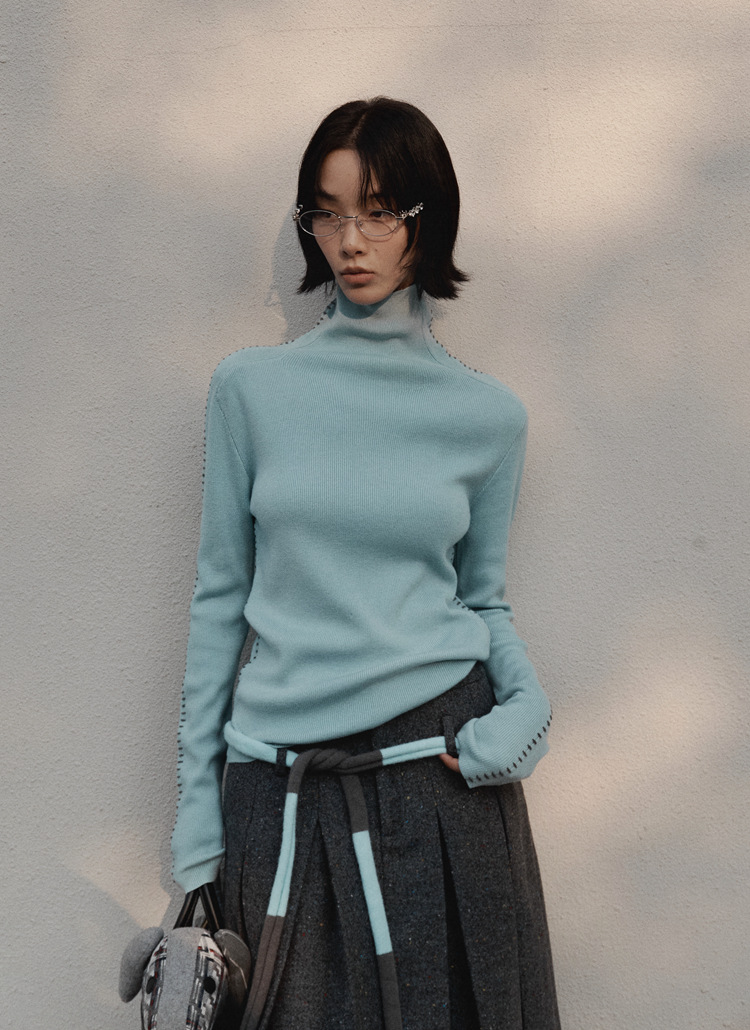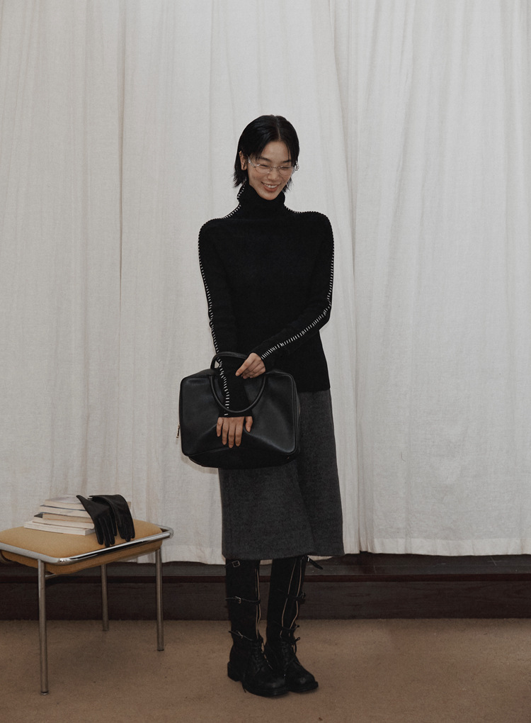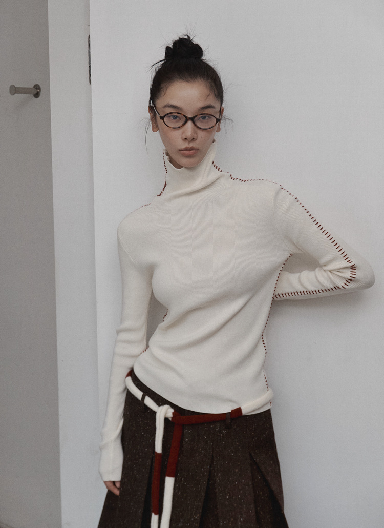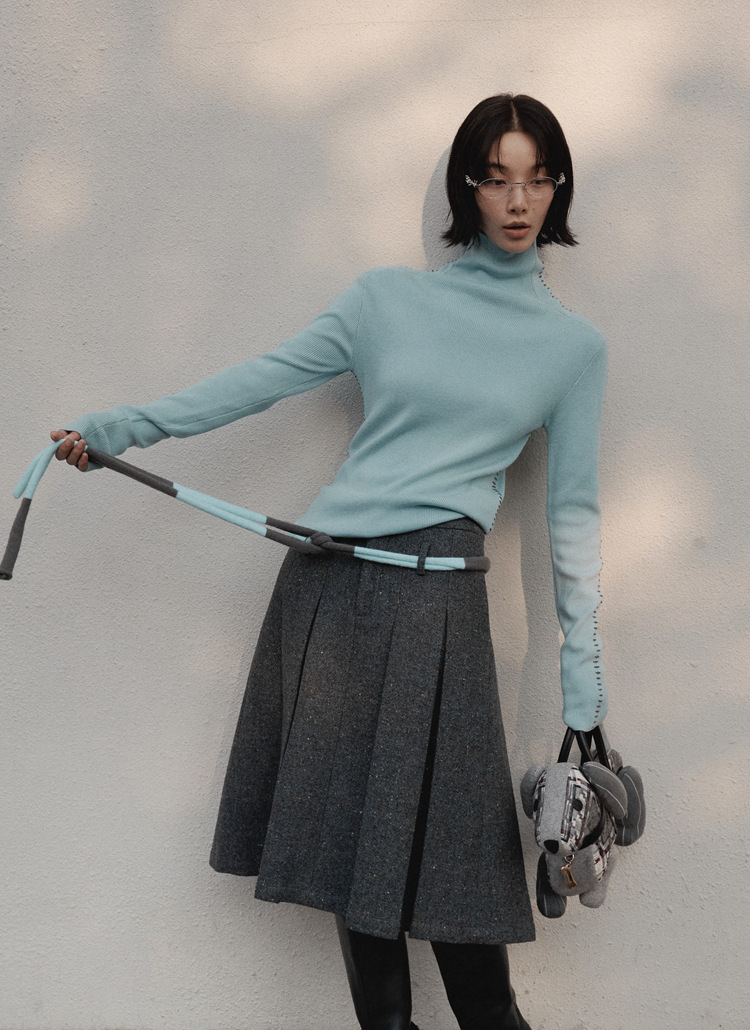 ユニティモードデザイン感手縫いタートルネックウールセーター女性の冬の色は底にニットを合わせます。