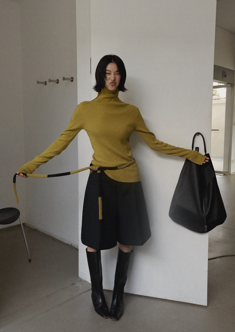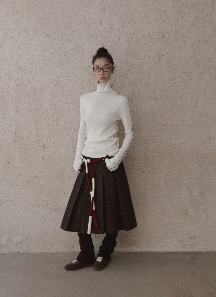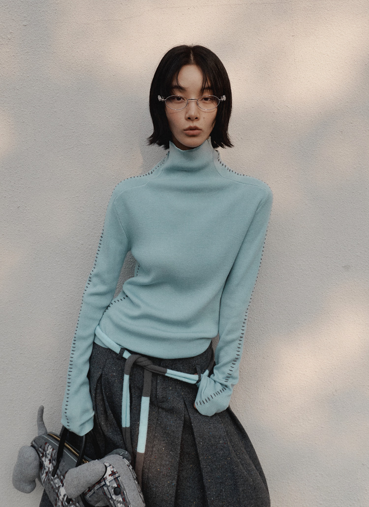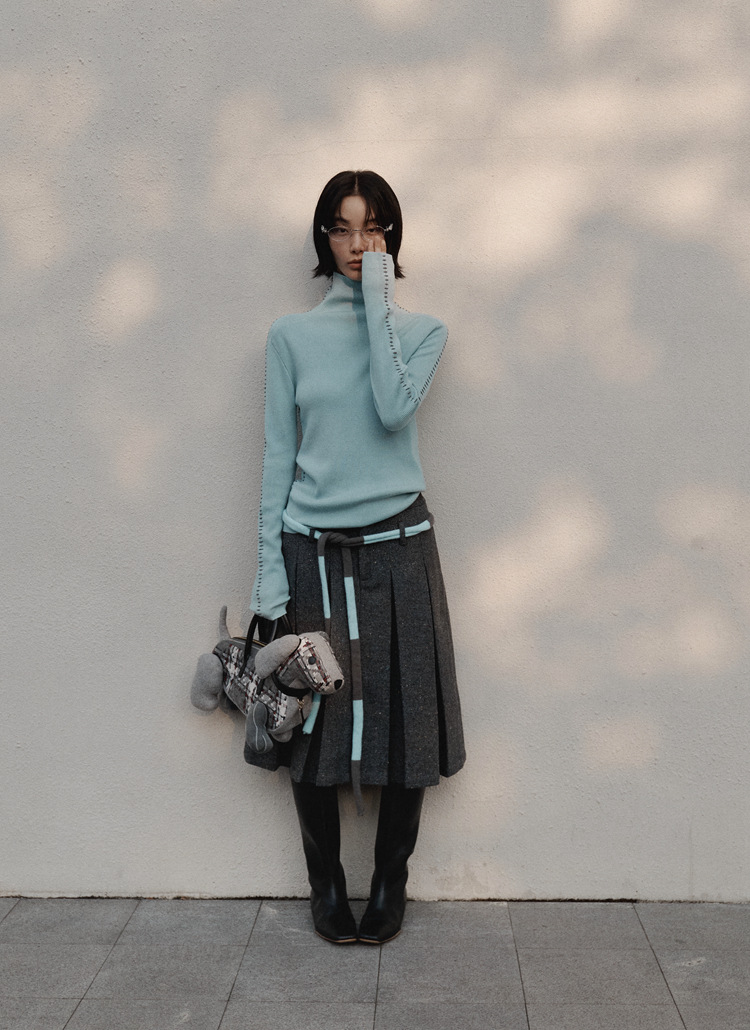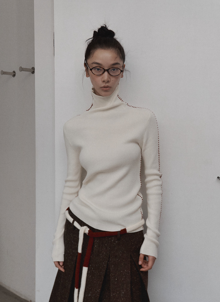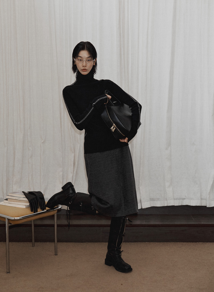 ユニティモードデザイン感手縫いタートルネックウールセーター女性の冬の色は底にニットを合わせます。