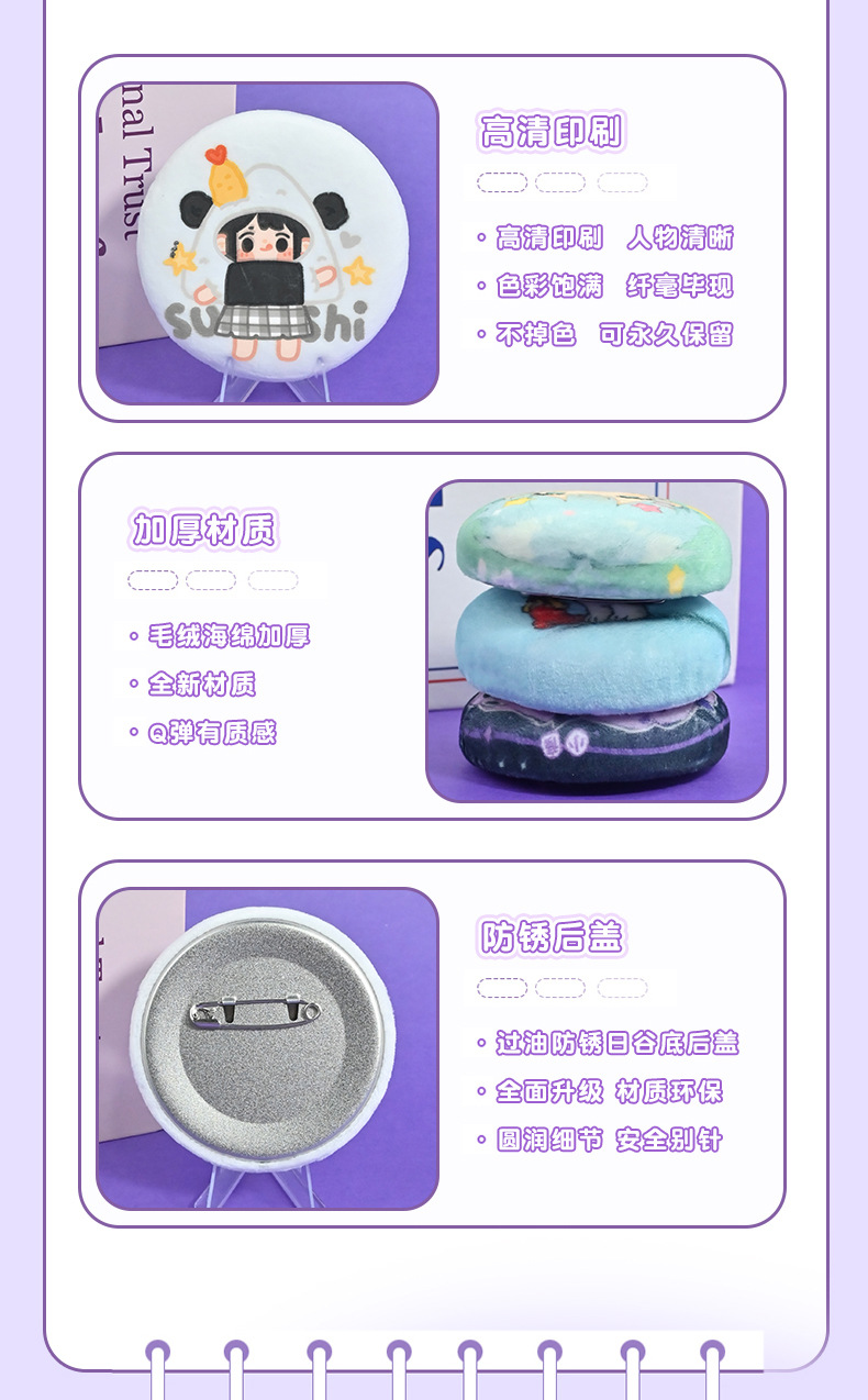 ぬいぐるみ風カスタム二次元同人スター周辺グッズ、捏ねられる二層厚めバッジ、ブリキ製バッジのオーダーメイド