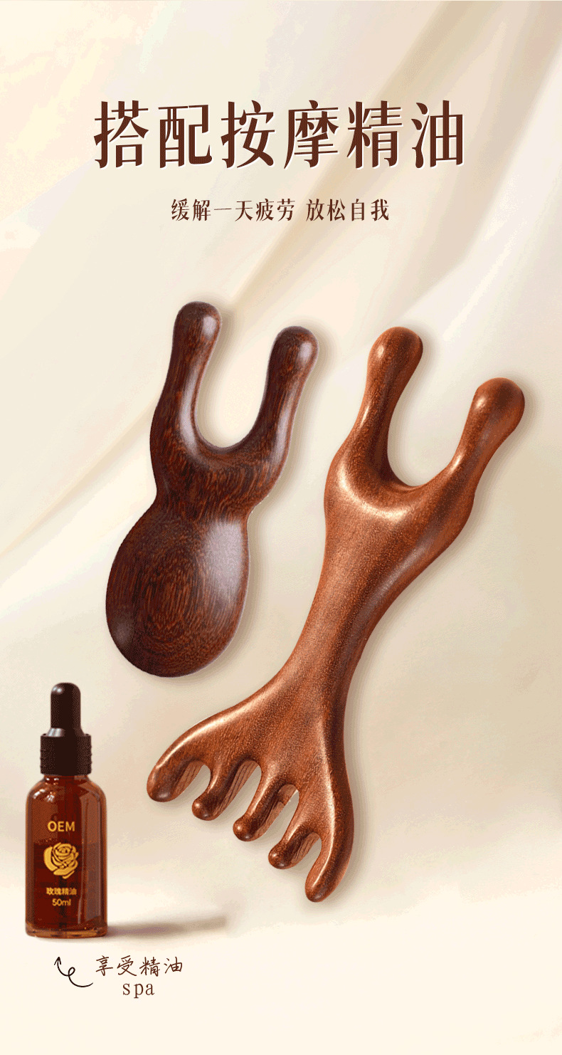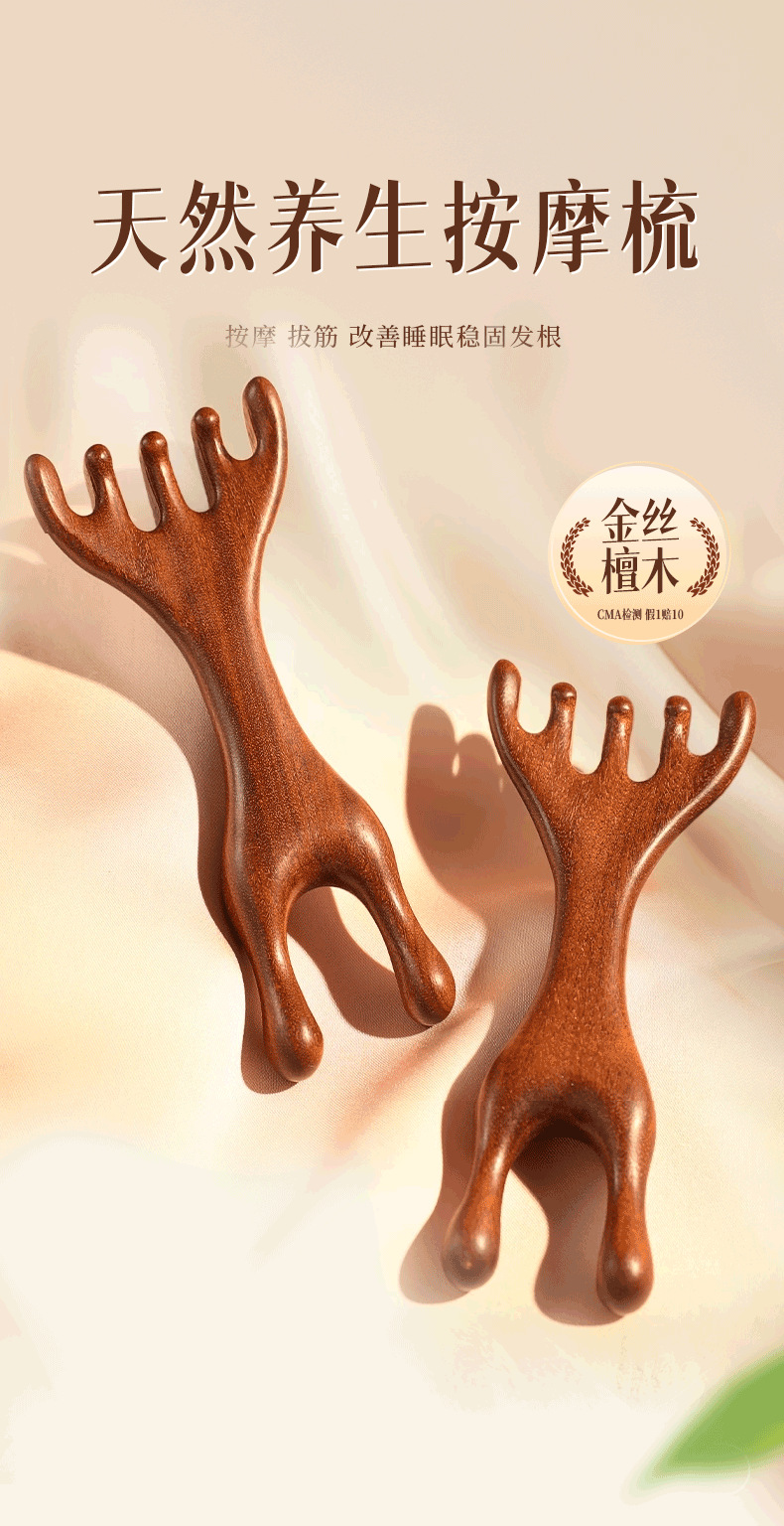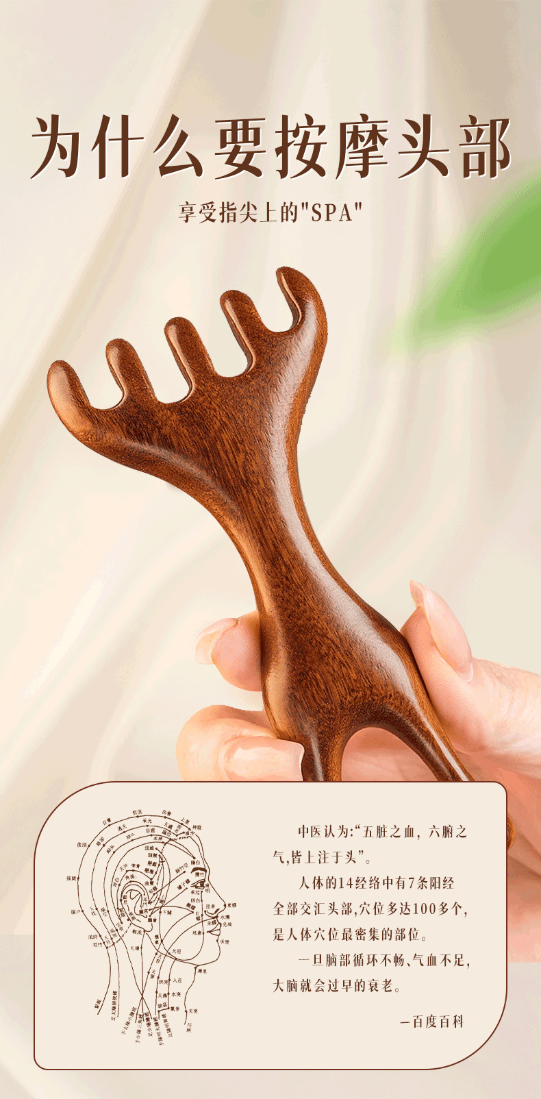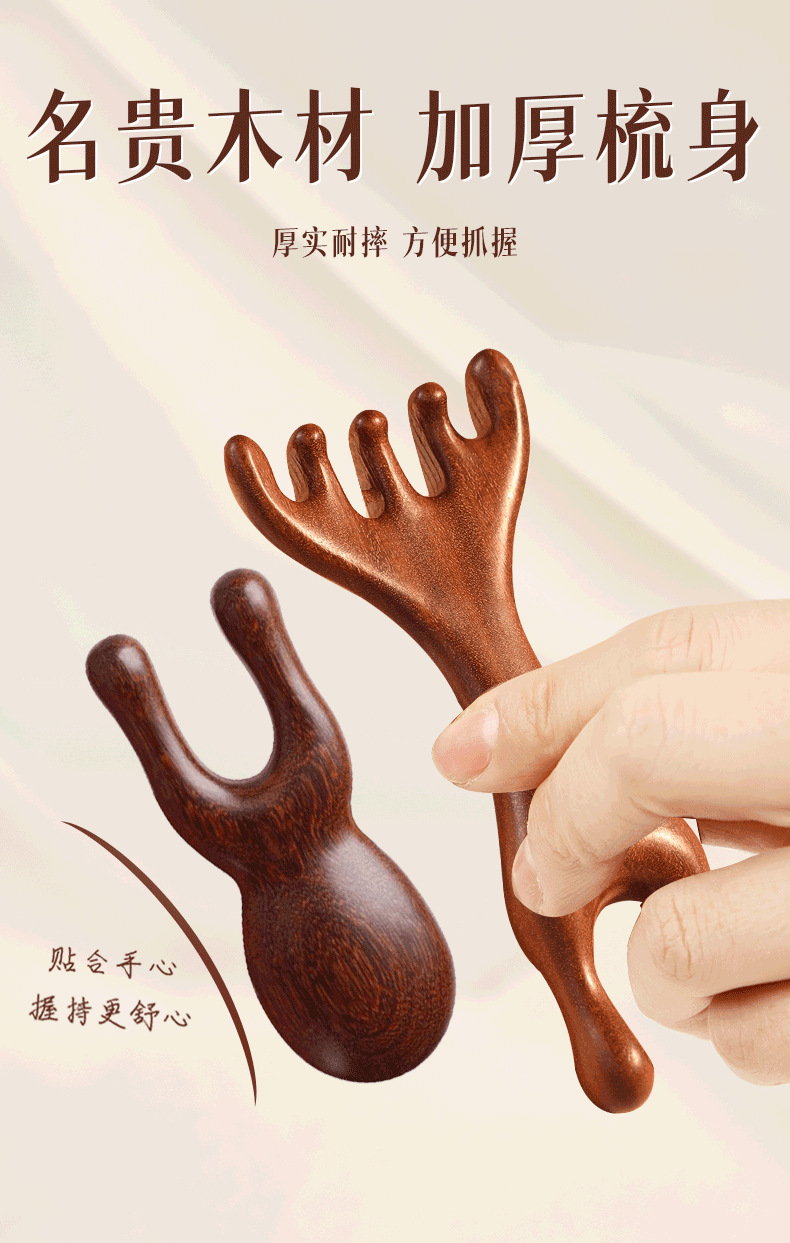 檀木櫛頭部経絡櫛頭治療点穴掻き頭皮マッサージ器鹿角五爪掻き鼻木製櫛