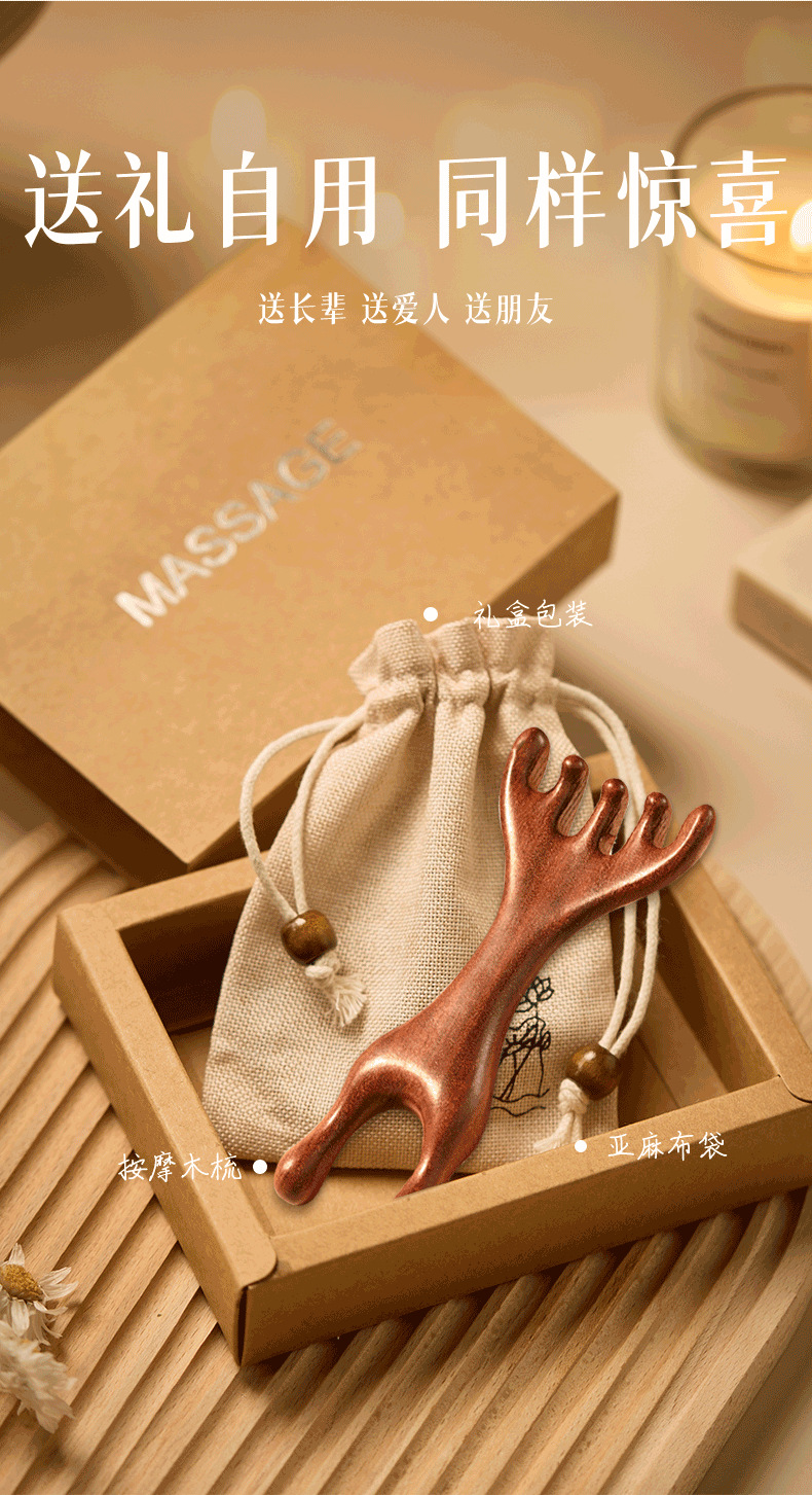 アントラーコーム兼用モデル ギフトボックス1個【マッサージエッセンシャルオイル+保存袋+ツボマップ付き】