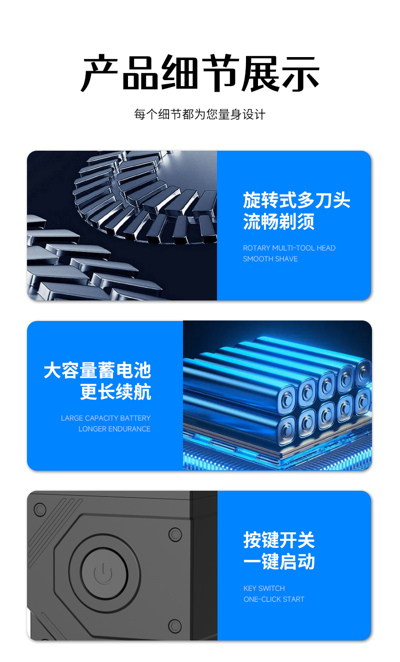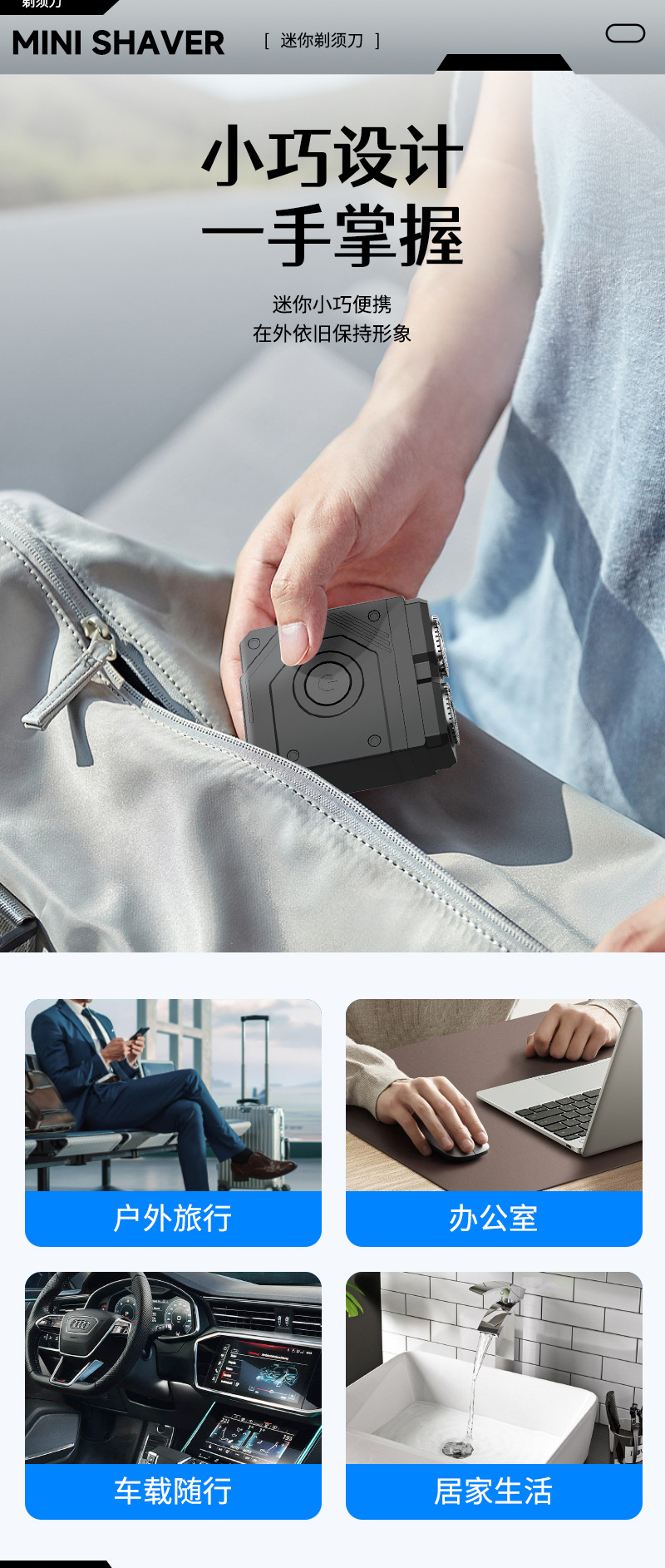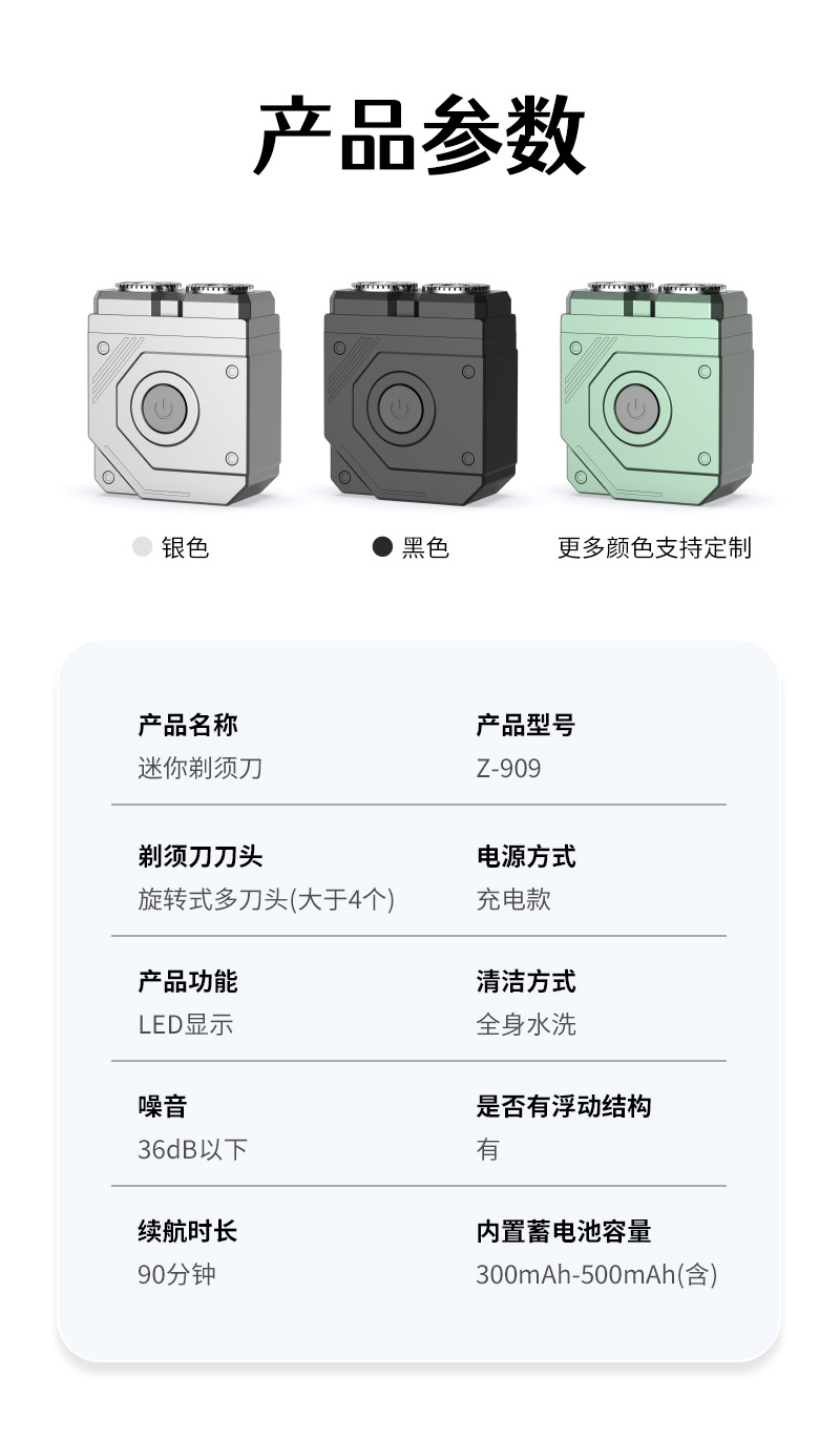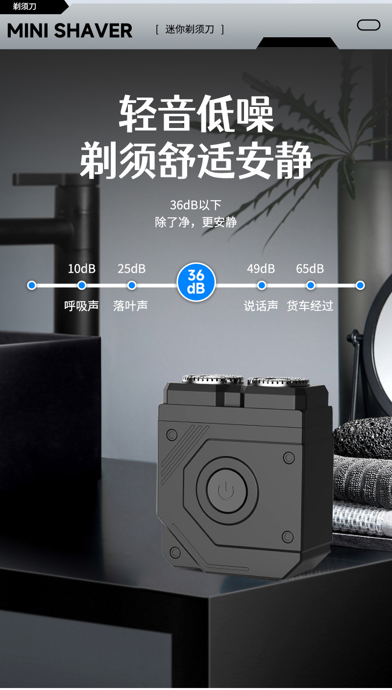 新型黒銀色電動ミニシェーバー ポータブル回転式カッター 全身水洗い可能電動シェーバー