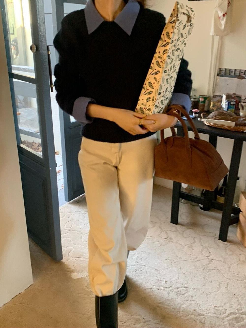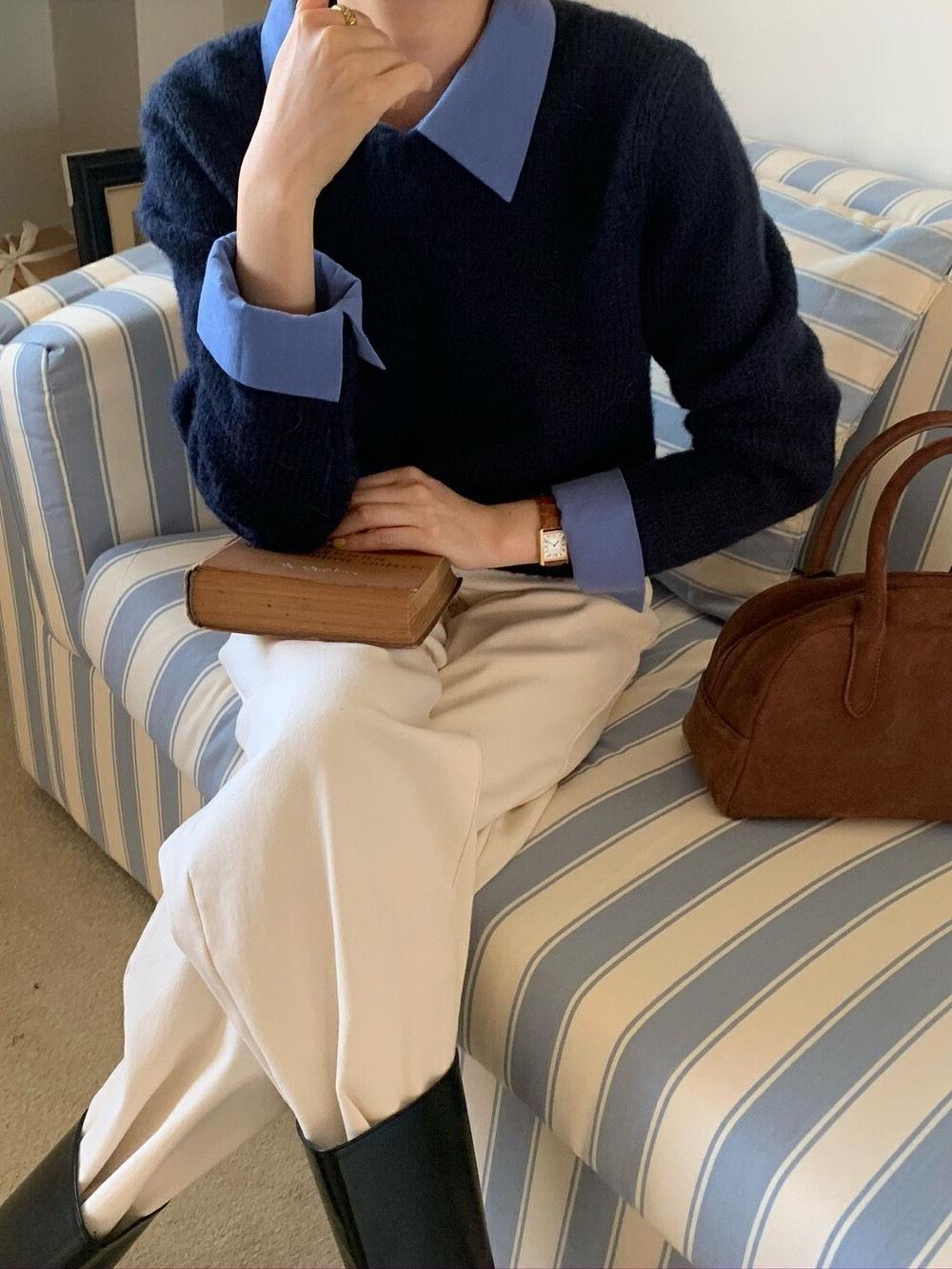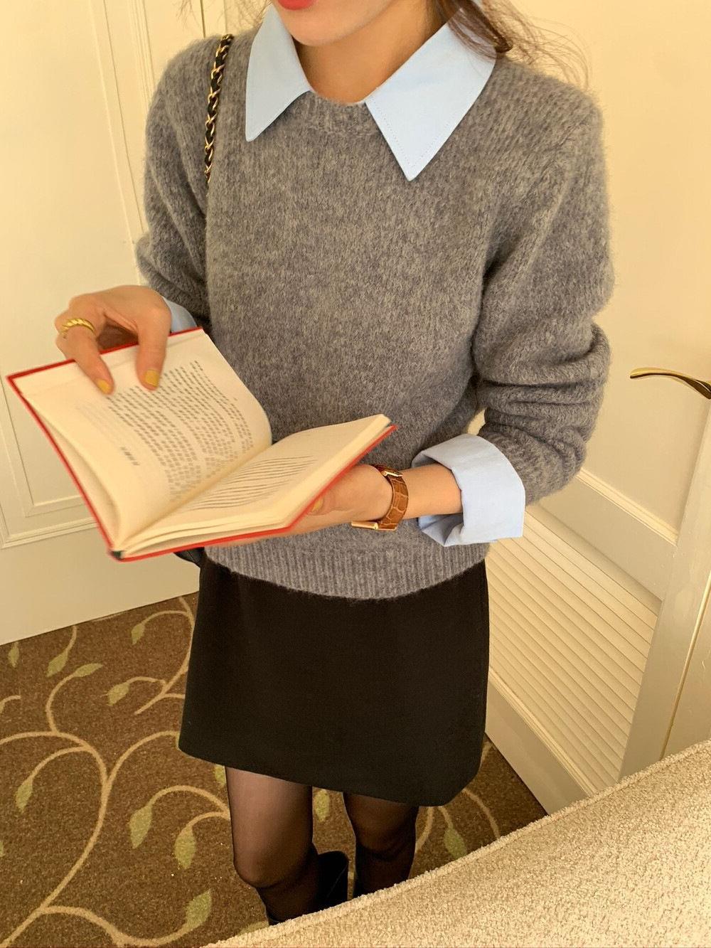 韓国系の偽のシャツの襟のセーターの女性の秋冬の新型の中で怠惰な風が色の襟のニットの上着の女性にぶつかります。