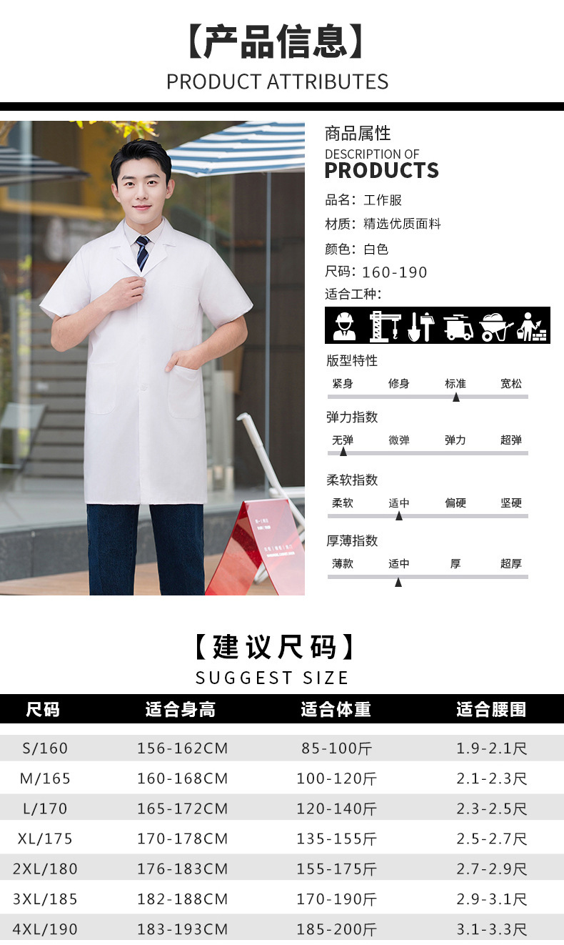 白衣長袖医師服秋冬モデル厚手男性医師看護師服実験服半袖コート学生作業服