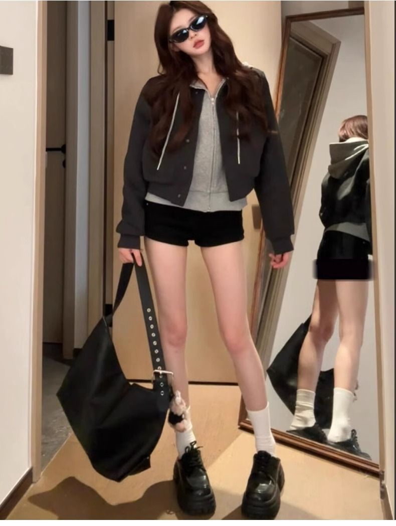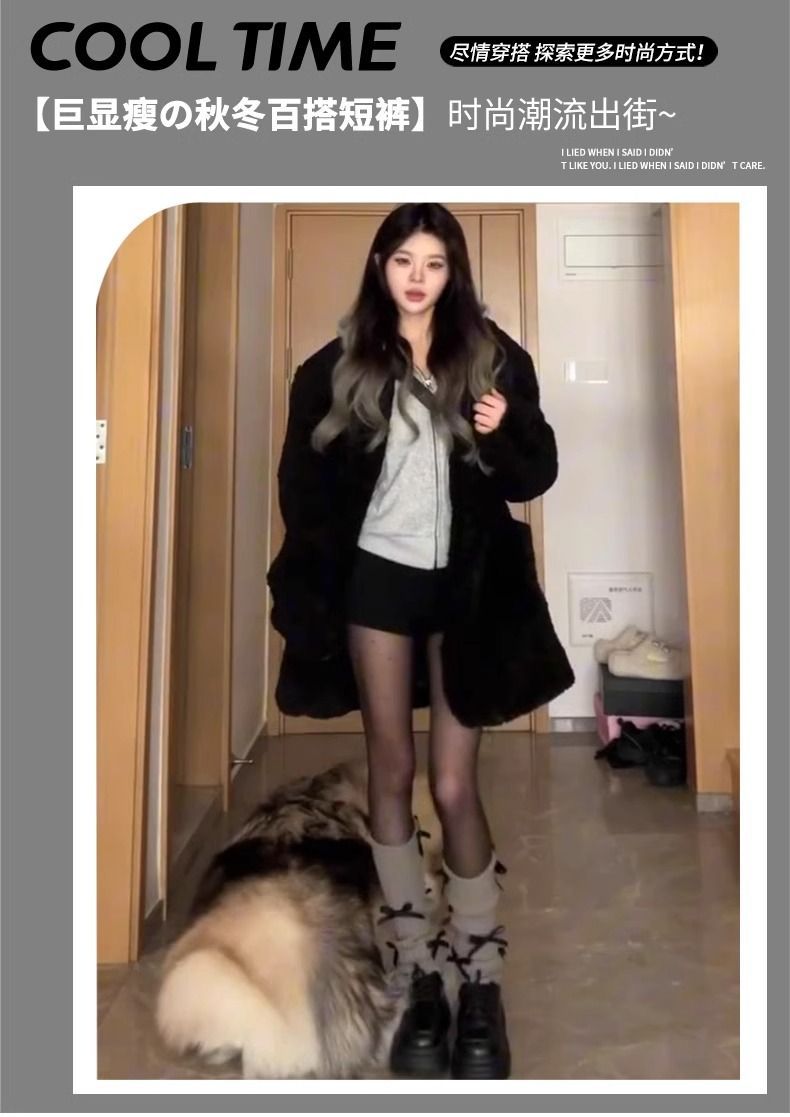 黒いギャルの半ズボンの女性の春と秋の冬は腰が高くて痩せています。