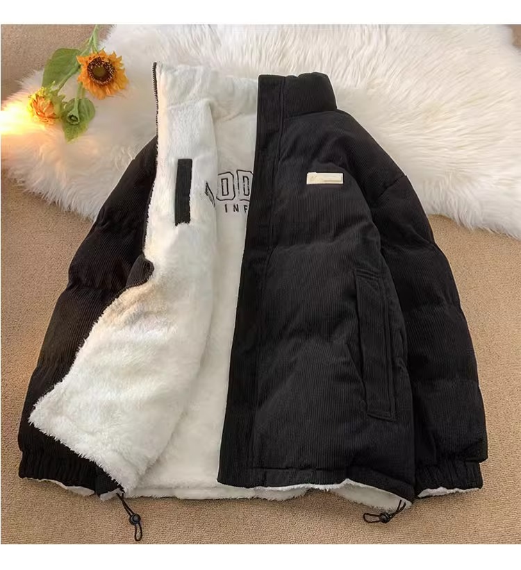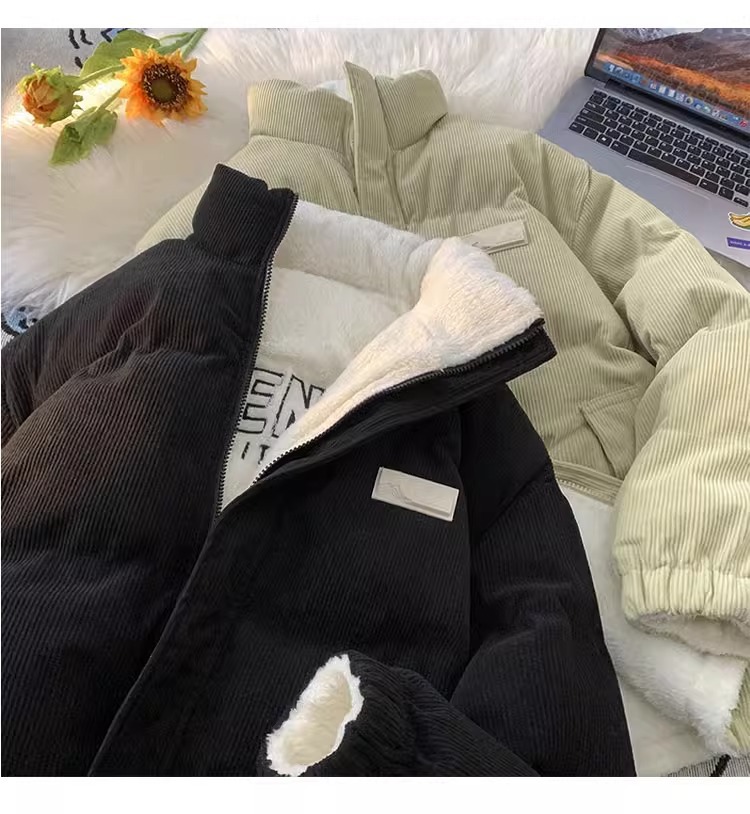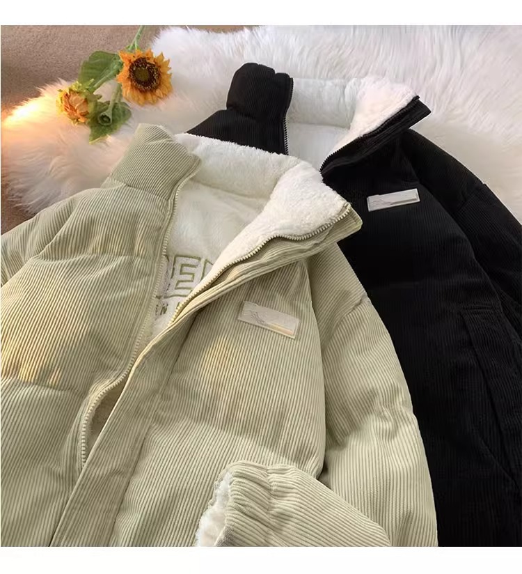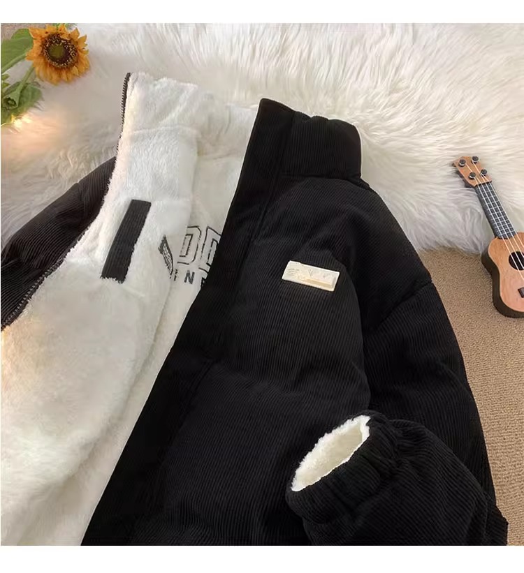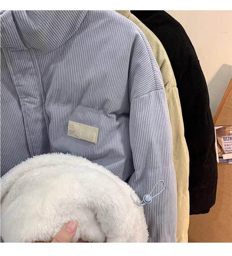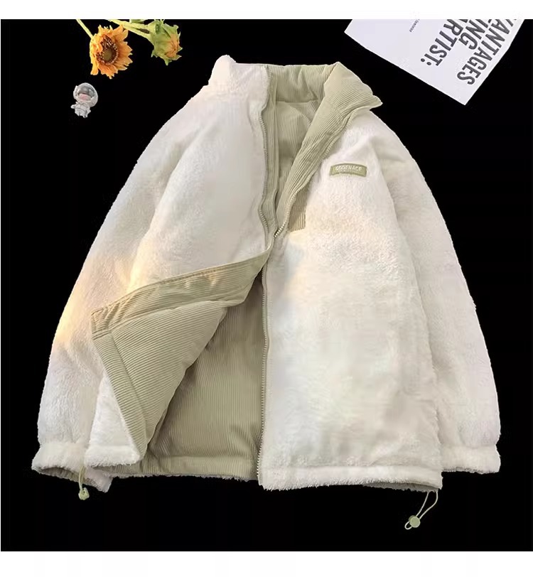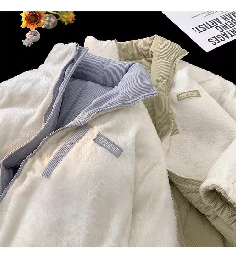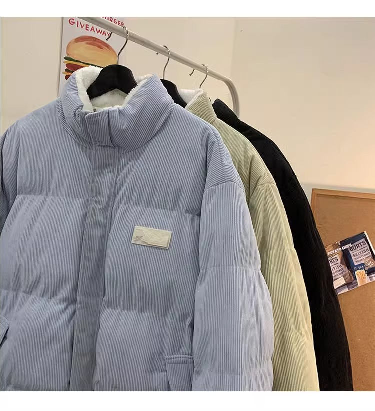 両面にはラベル付きのスタンドカラーの綿入れを着ています。