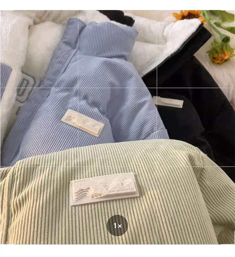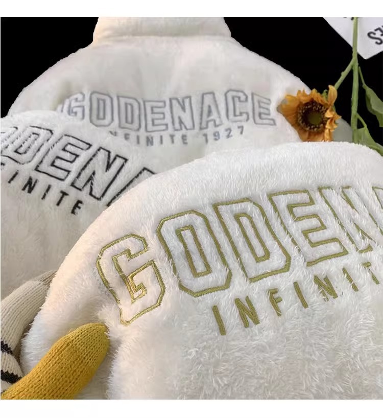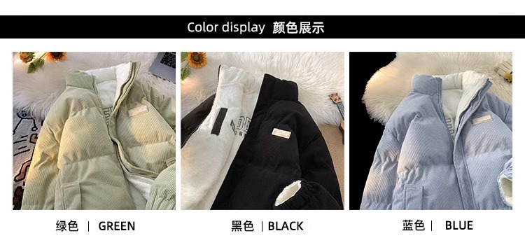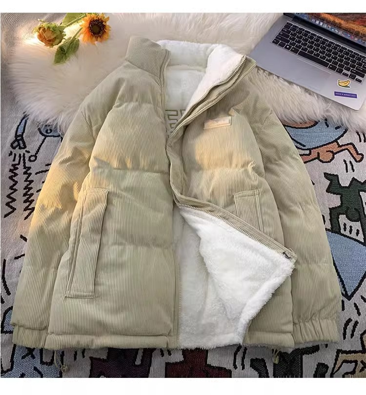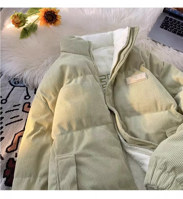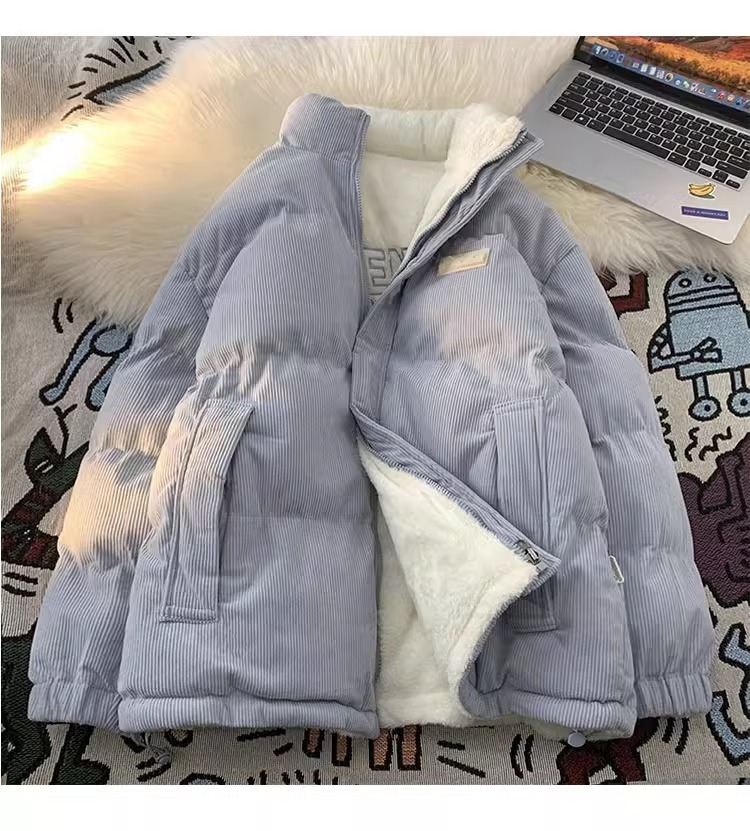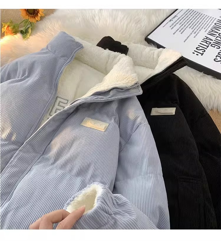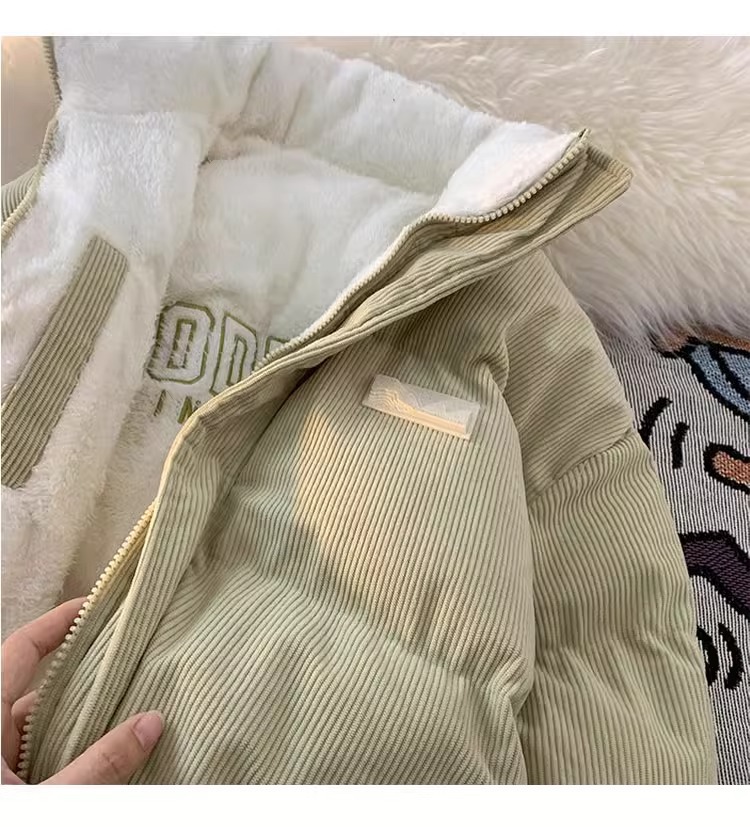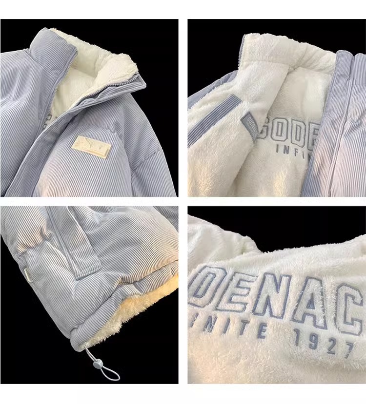 両面にはラベル付きのスタンドカラーの綿入れを着ています。