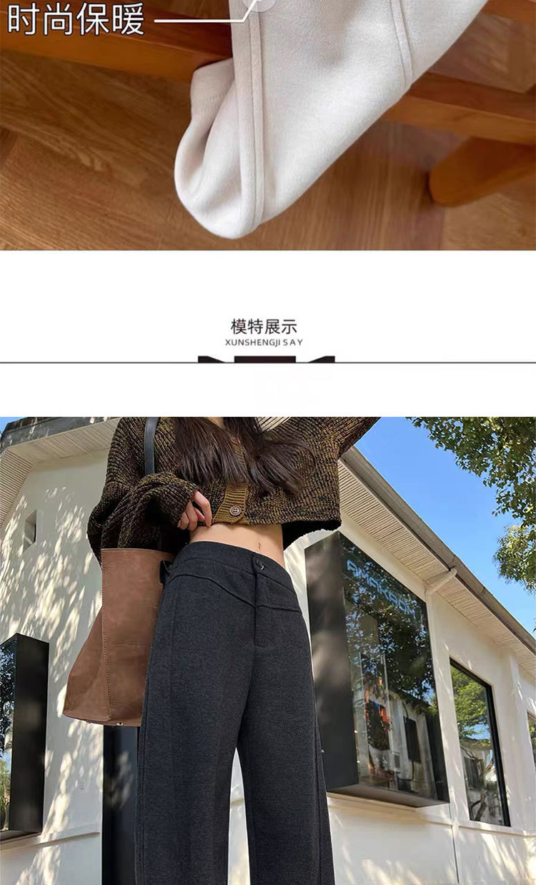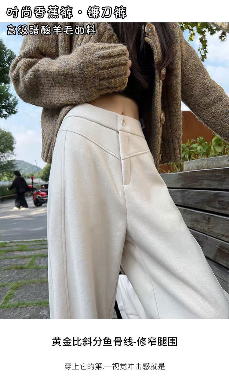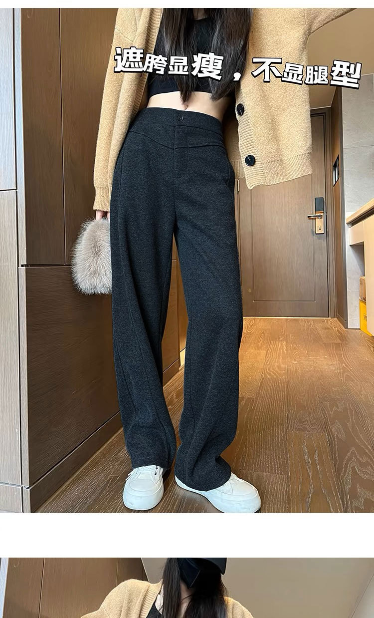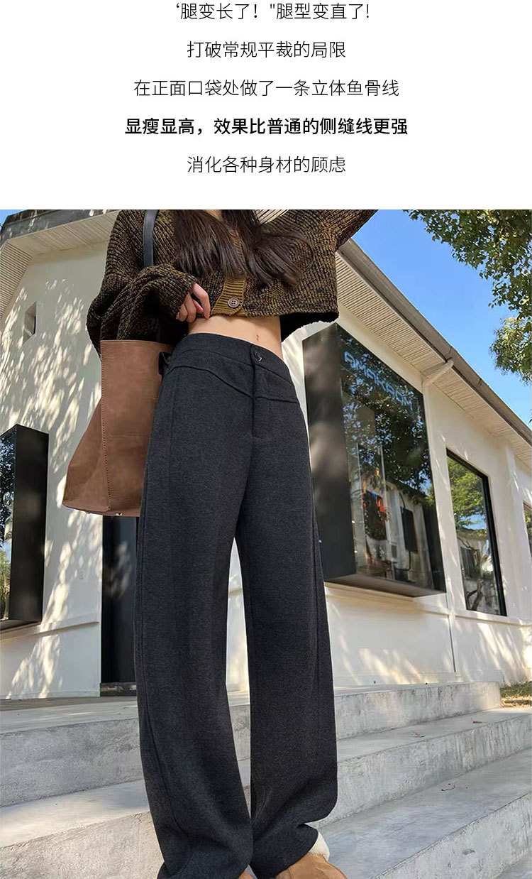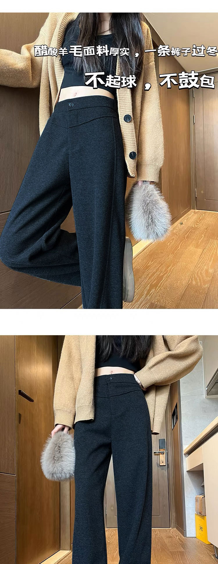 灰色のバナナのズボンの女性は秋冬に厚い直筒の狭い版の広い足のズボンのカジュアルなウールです。