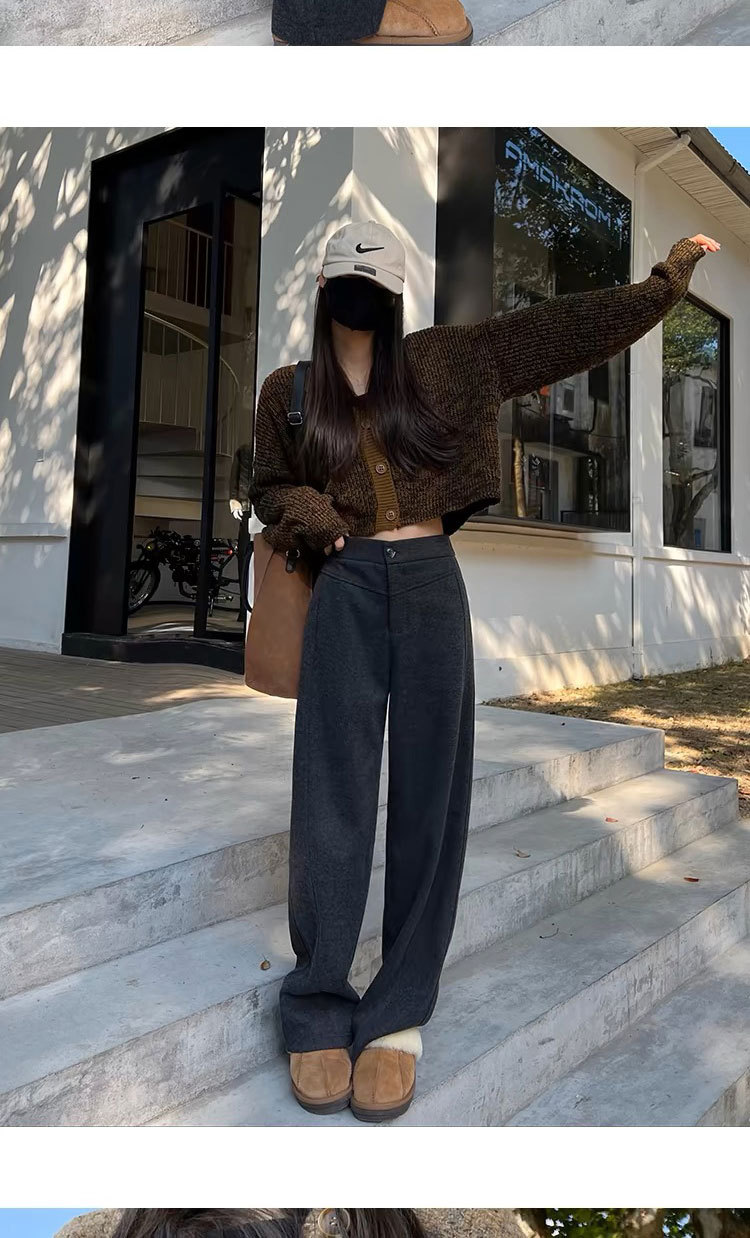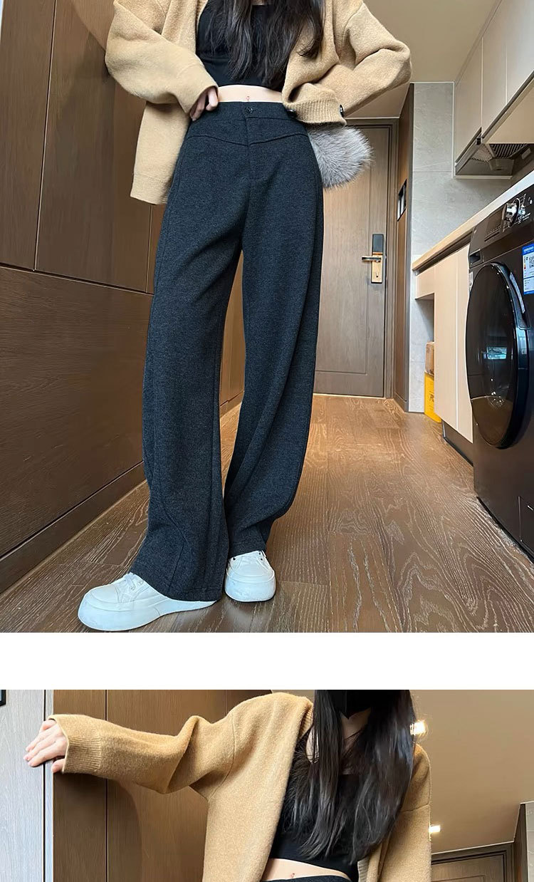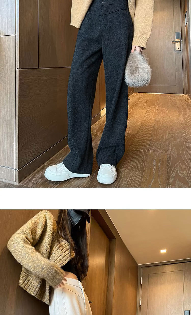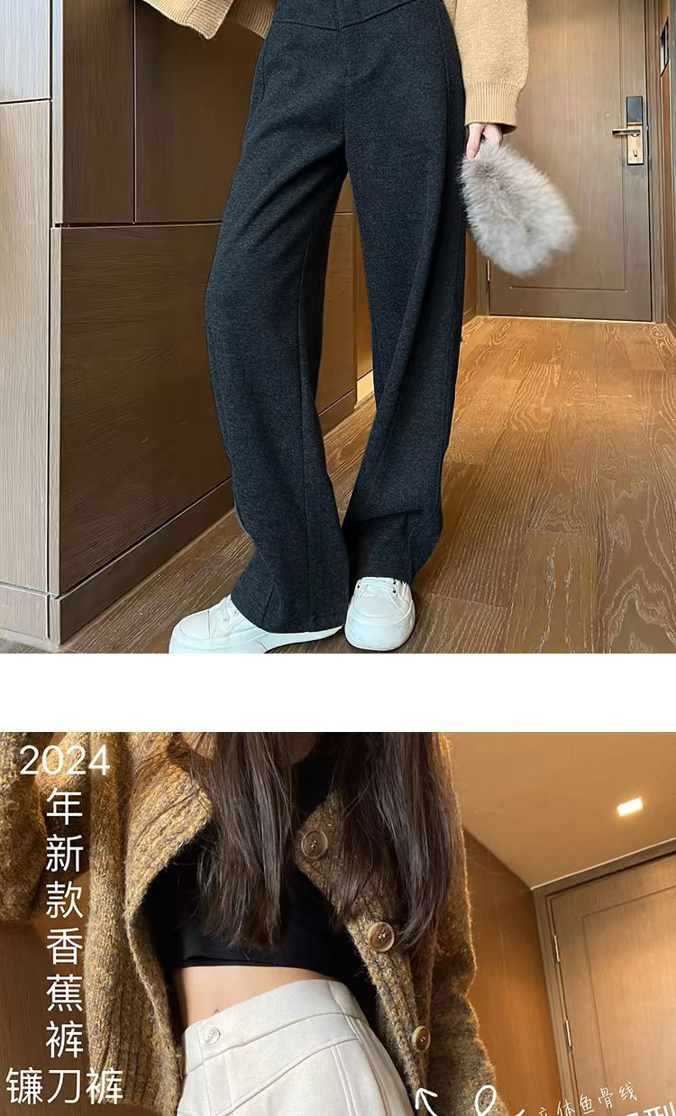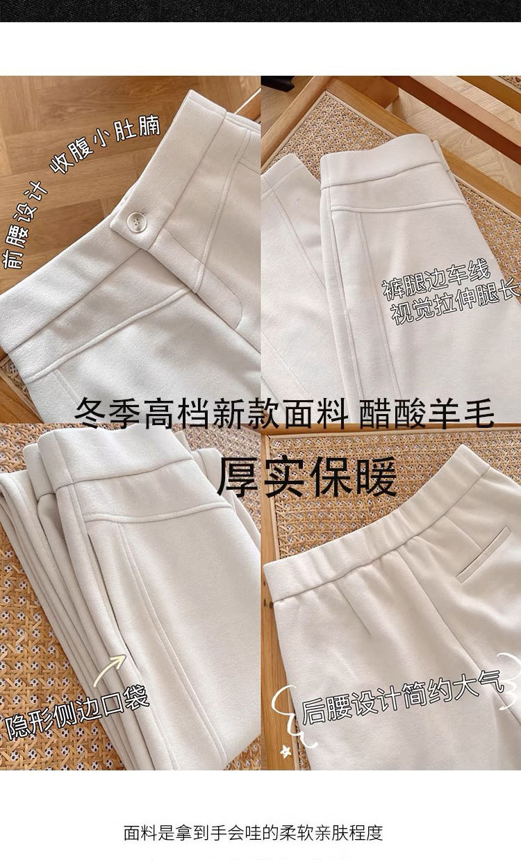 灰色のバナナのズボンの女性は秋冬に厚い直筒の狭い版の広い足のズボンのカジュアルなウールです。
