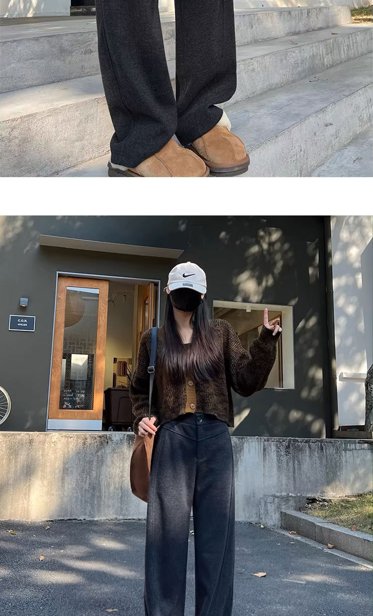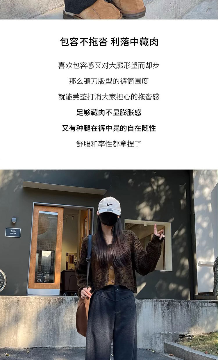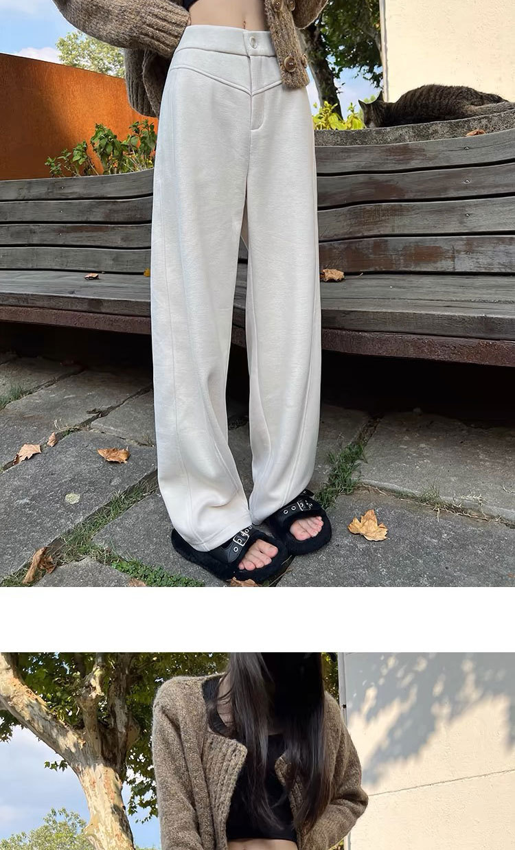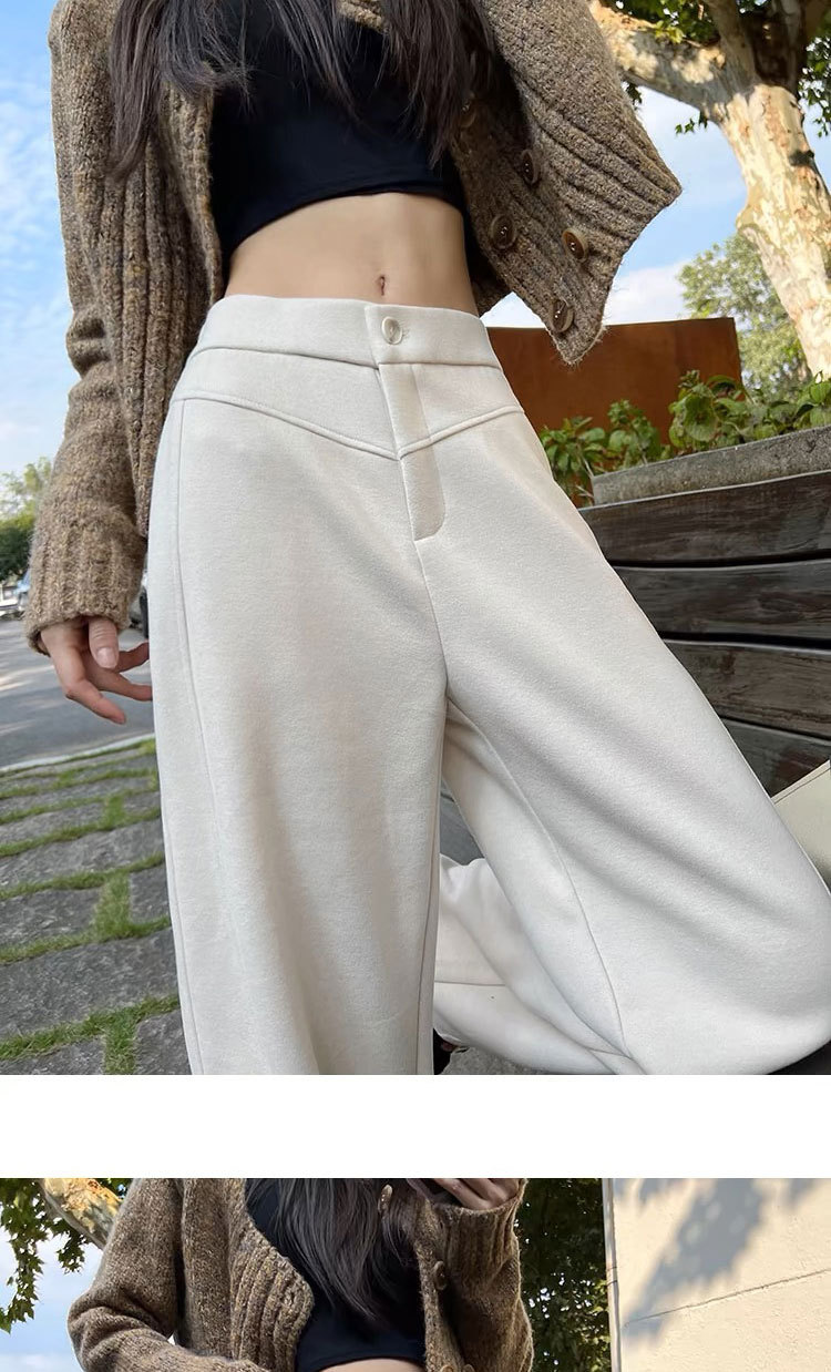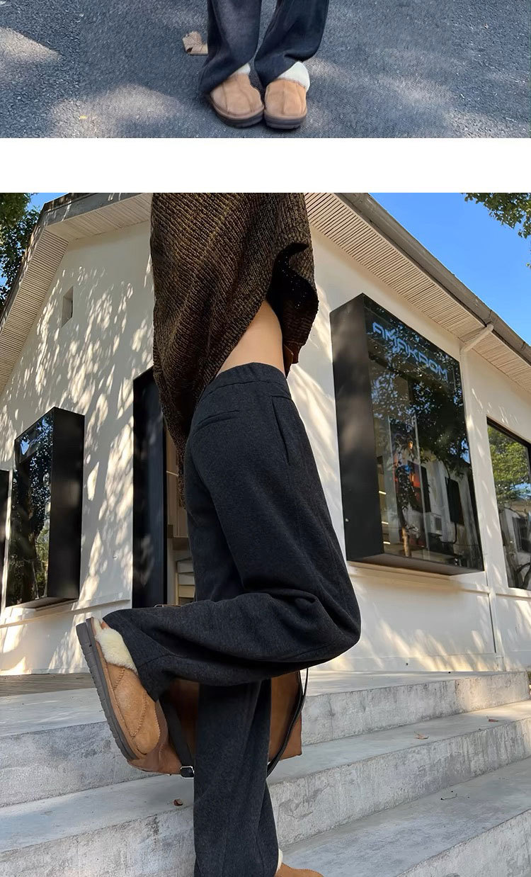 灰色のバナナのズボンの女性は秋冬に厚い直筒の狭い版の広い足のズボンのカジュアルなウールです。