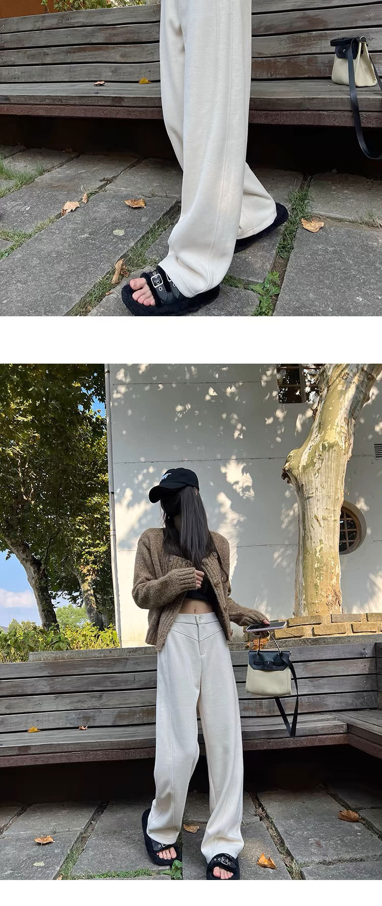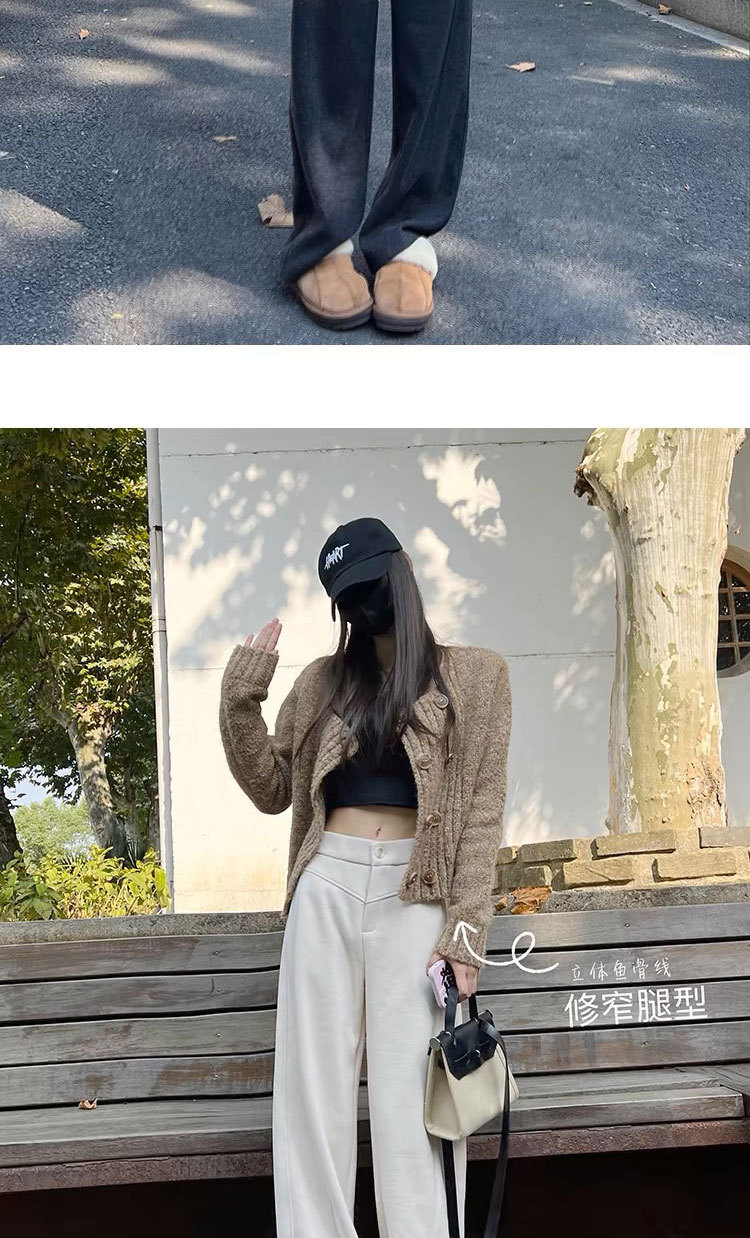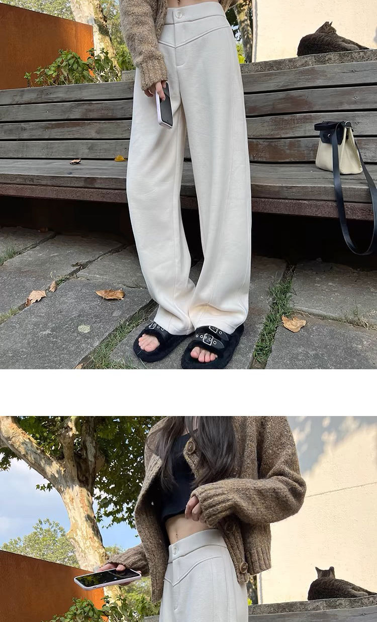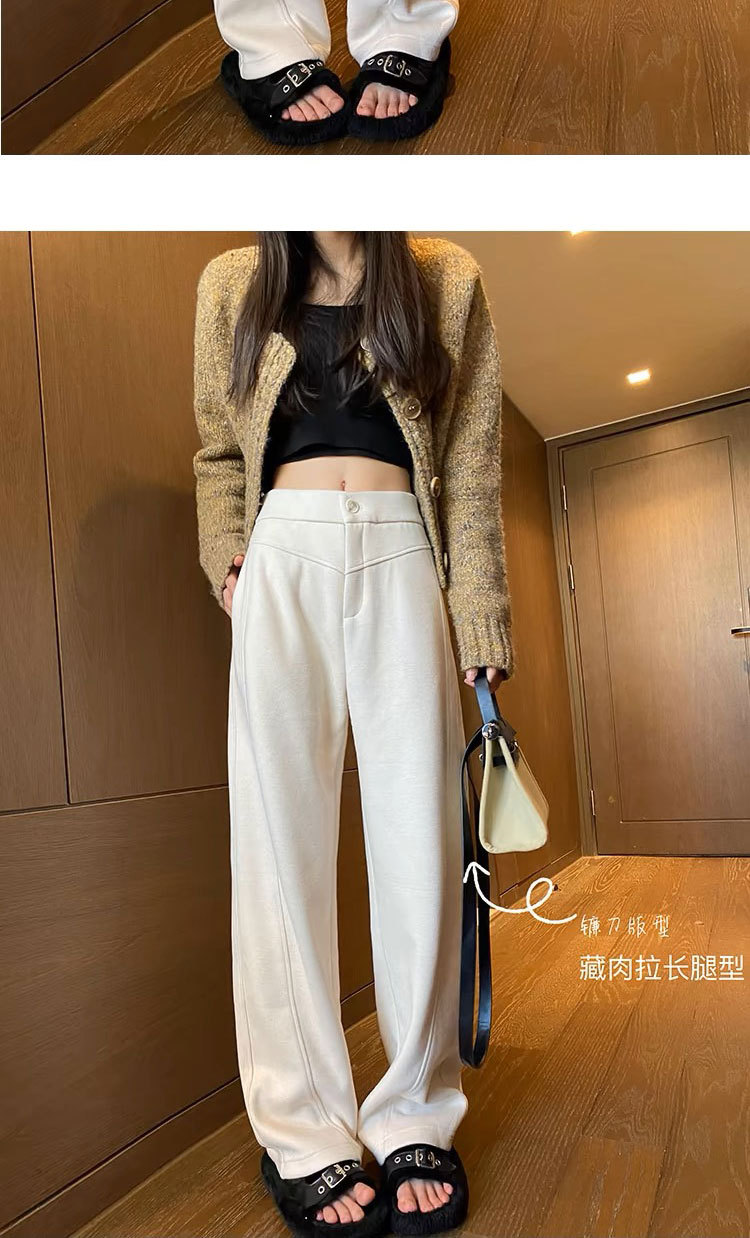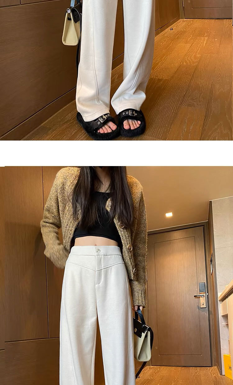 灰色のバナナのズボンの女性は秋冬に厚い直筒の狭い版の広い足のズボンのカジュアルなウールです。