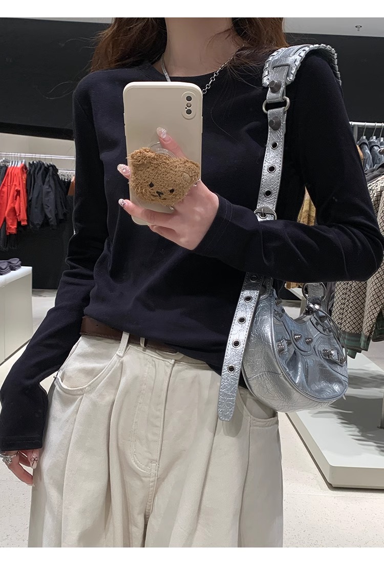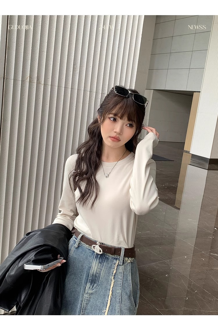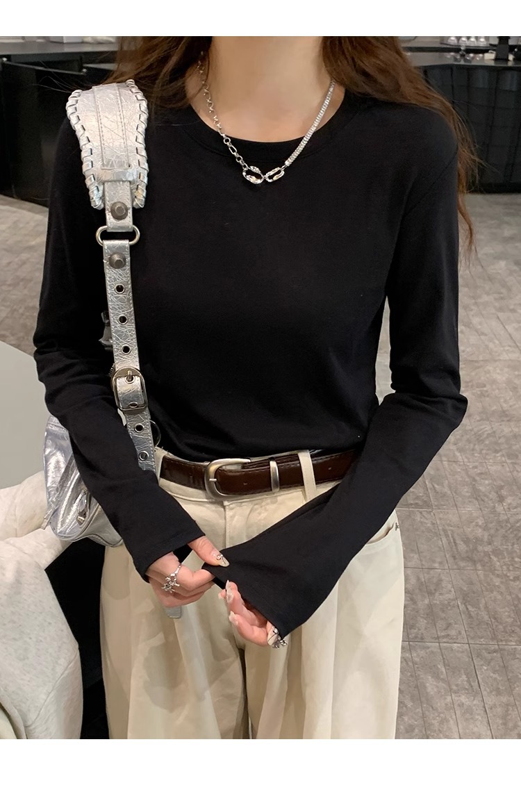 300g丸首の白い中に長袖の底のシャツのtシャツを掛けます。