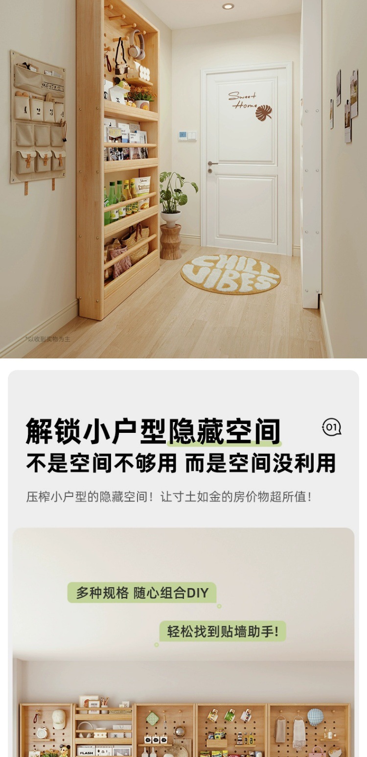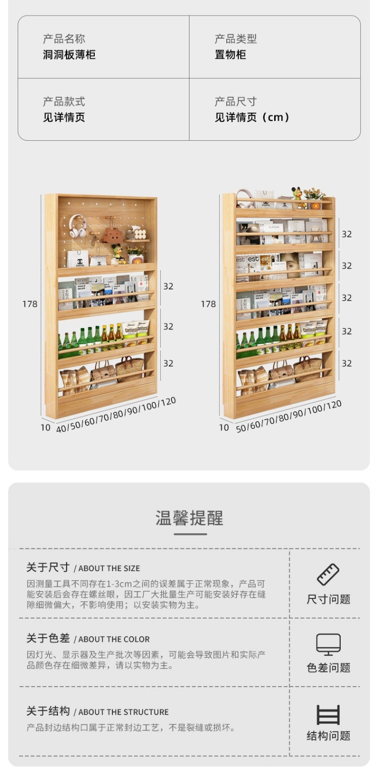 穴の板の箪笥の超薄型の物置棚の多層の実木の床の壁掛けの薄い棚の女子学生の寝室の家庭用の狭い収納棚